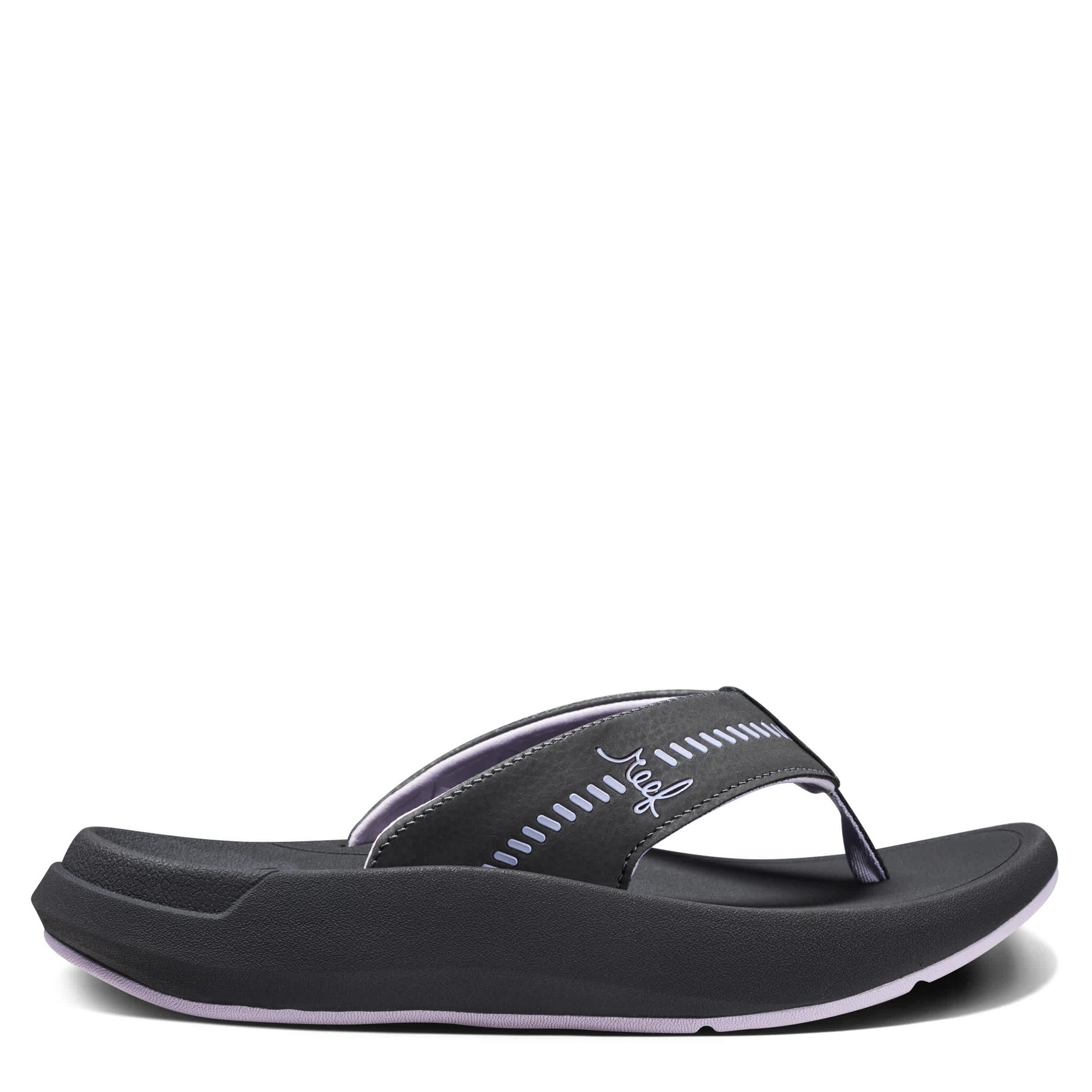 Maximize your comfort in the Rover women's flip flop from REEF. With a synthetic upper featuring padded straps with shock pads, this thong sandal promotes foot health and wellness. The signature footbed is anatomically contoured with enhanced arch support while the outsole grips without leaving a mark.
