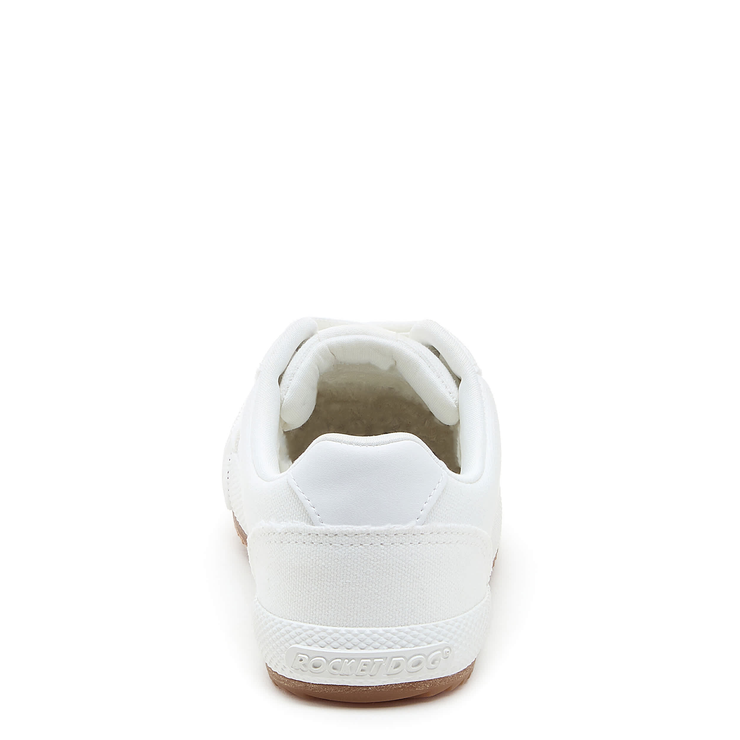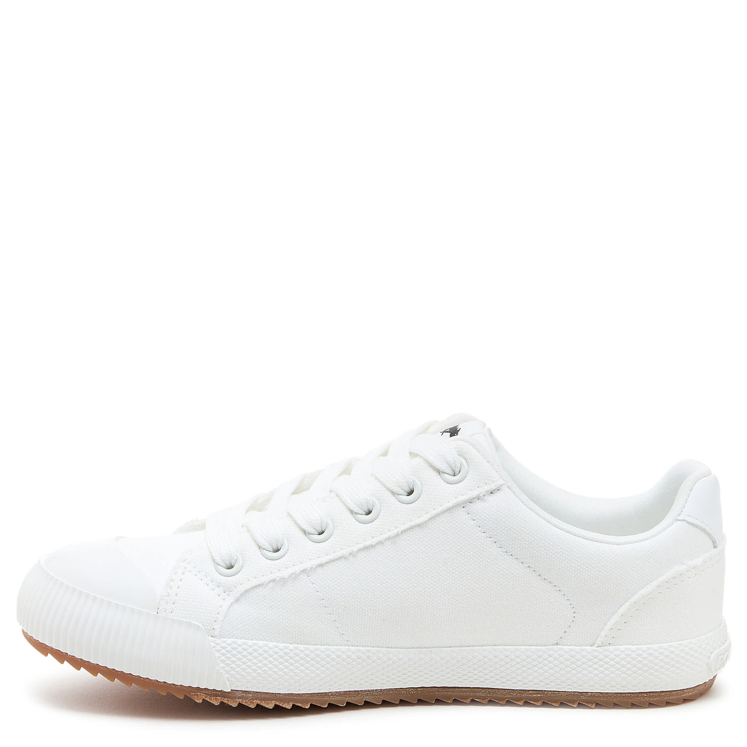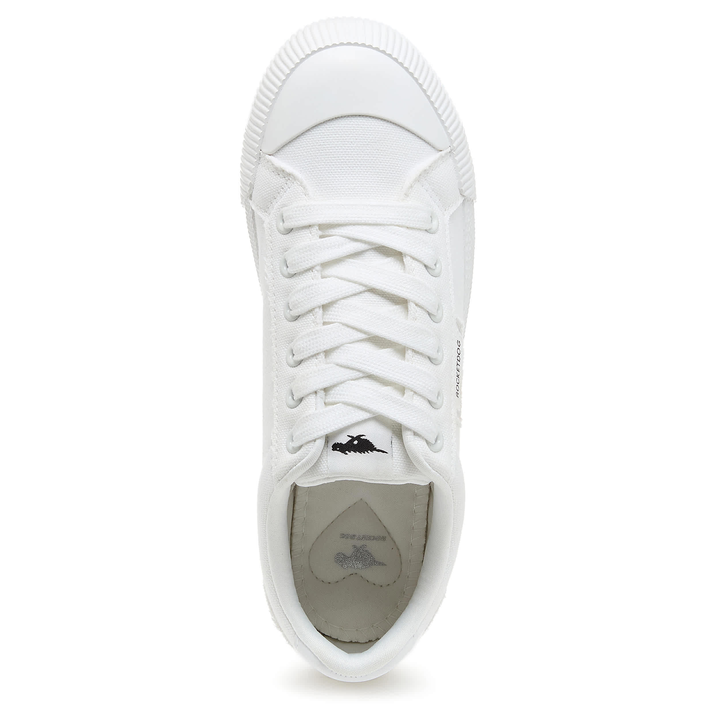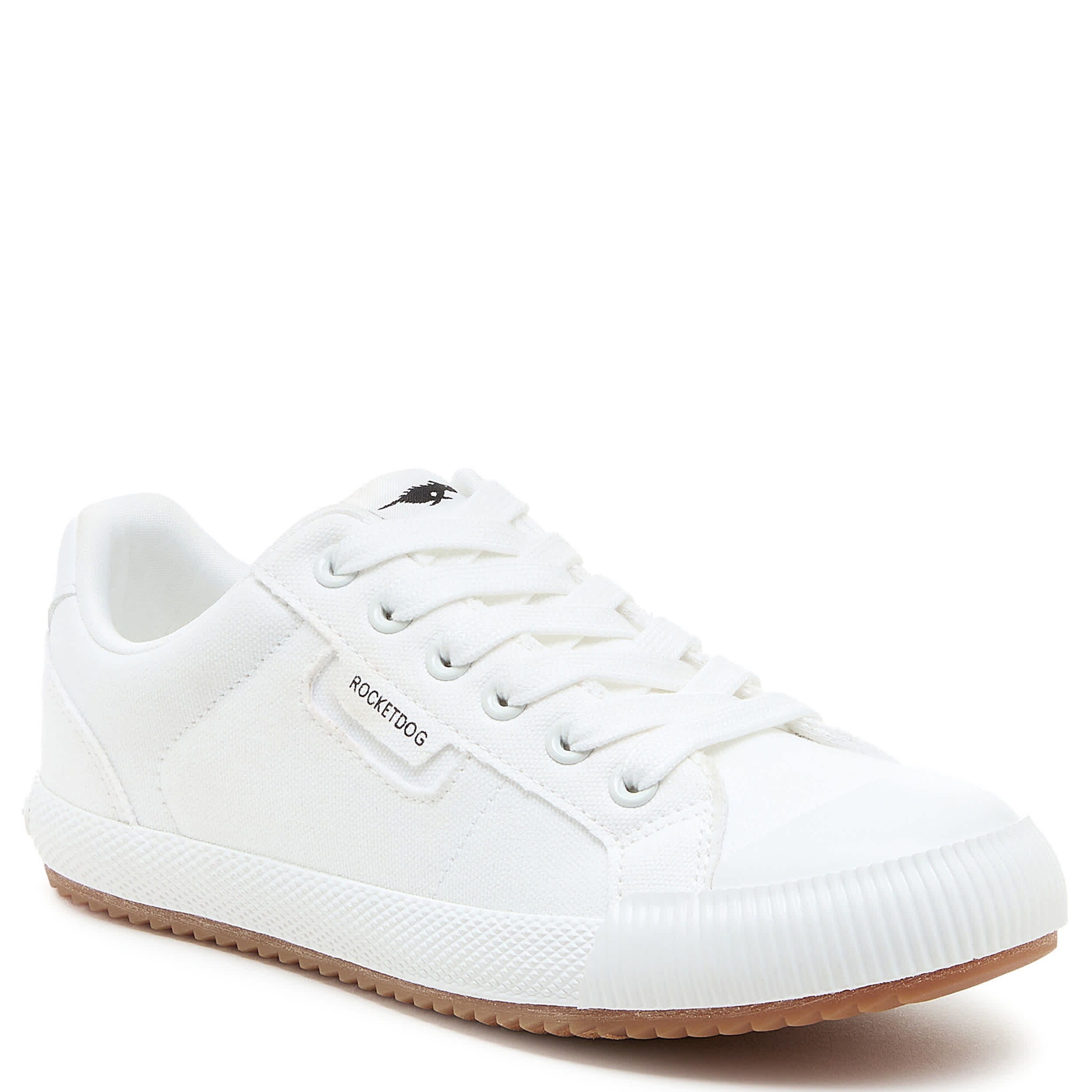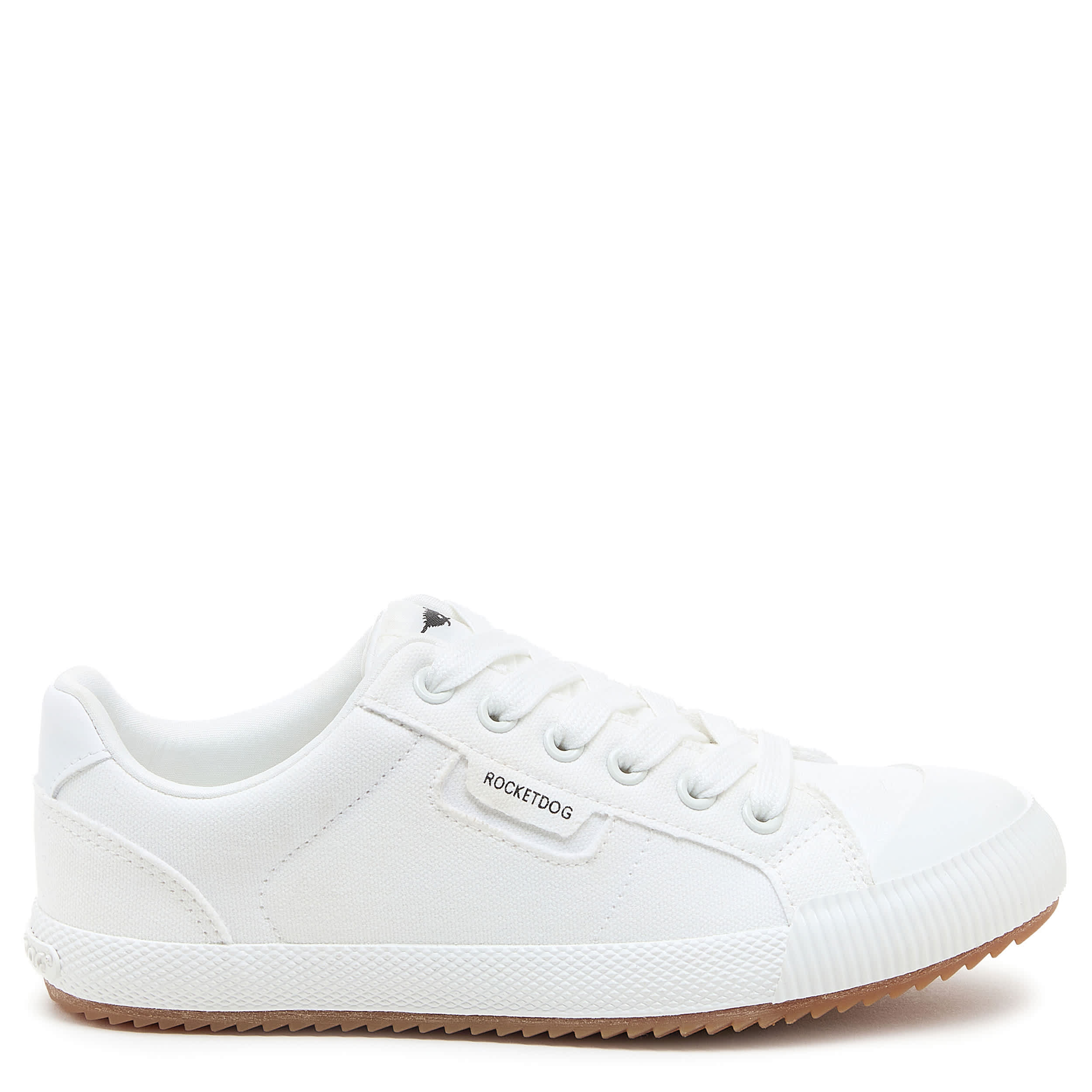 Be happy with your style in the Rocket Dog Cheery Low sneaker. Featuring a canvas cotton upper with matching laces for an all-white look, this low-profile shoe offers versatility. The Plush Foam Comfort insole cushions, while the sawtooth sole adds some traction.