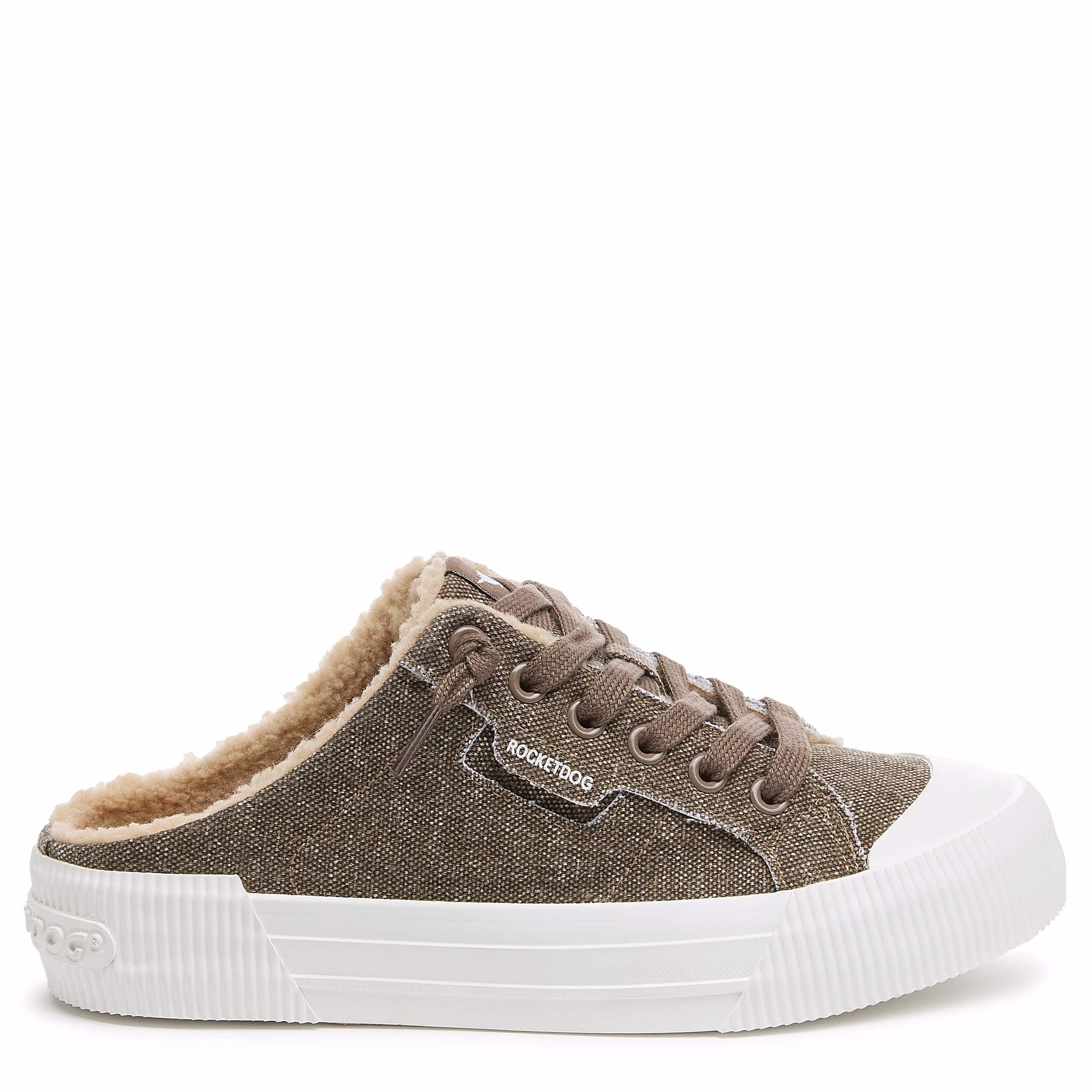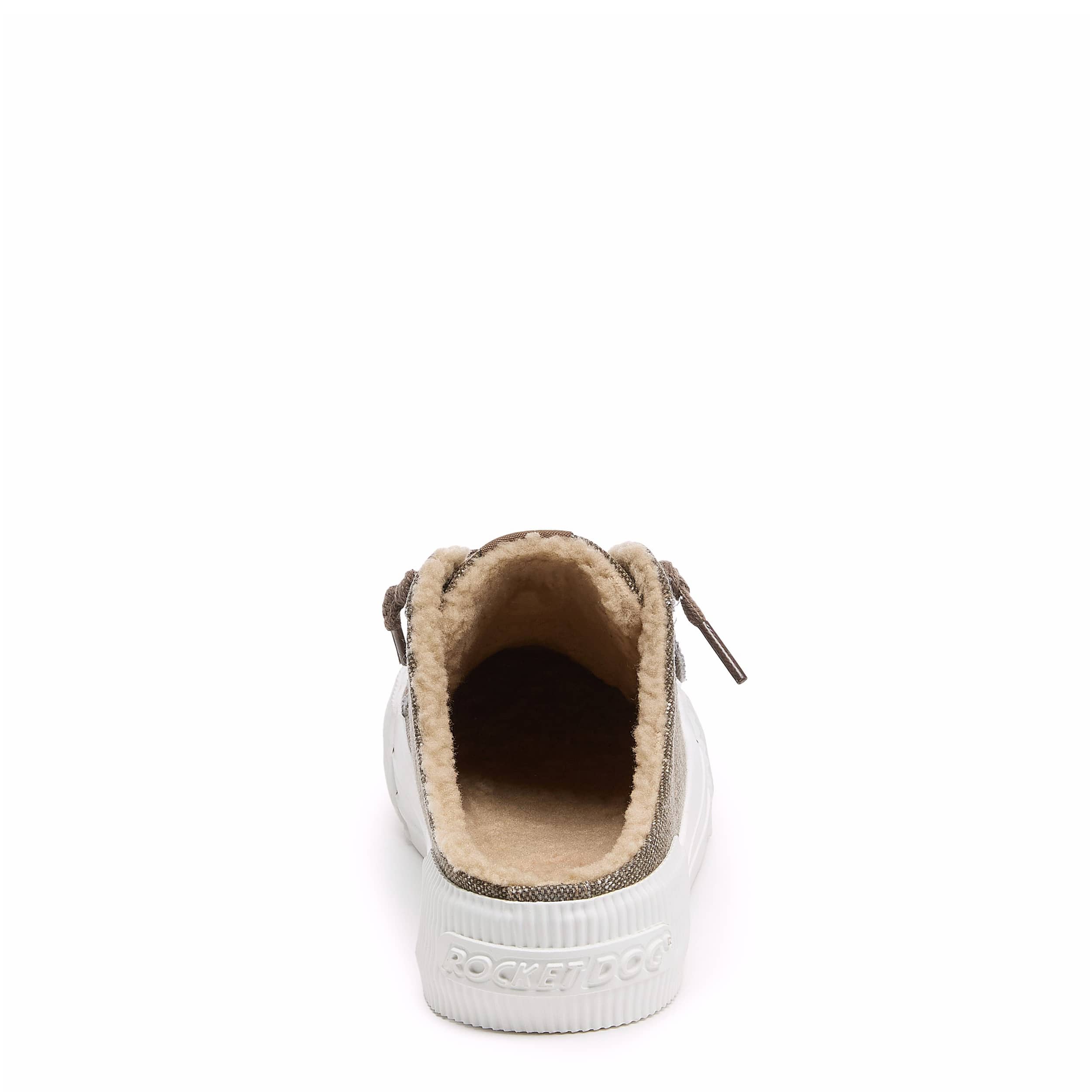 Cozy up to comfort in the Rocket Dog Cheery Natural mule. Featuring a textured canvas upper, this slip-on is super soft with a fuzzy lining, perfect for the fall. Premium cushioning from the plush foam insole combines with the slight platform to create a laid-back winner.