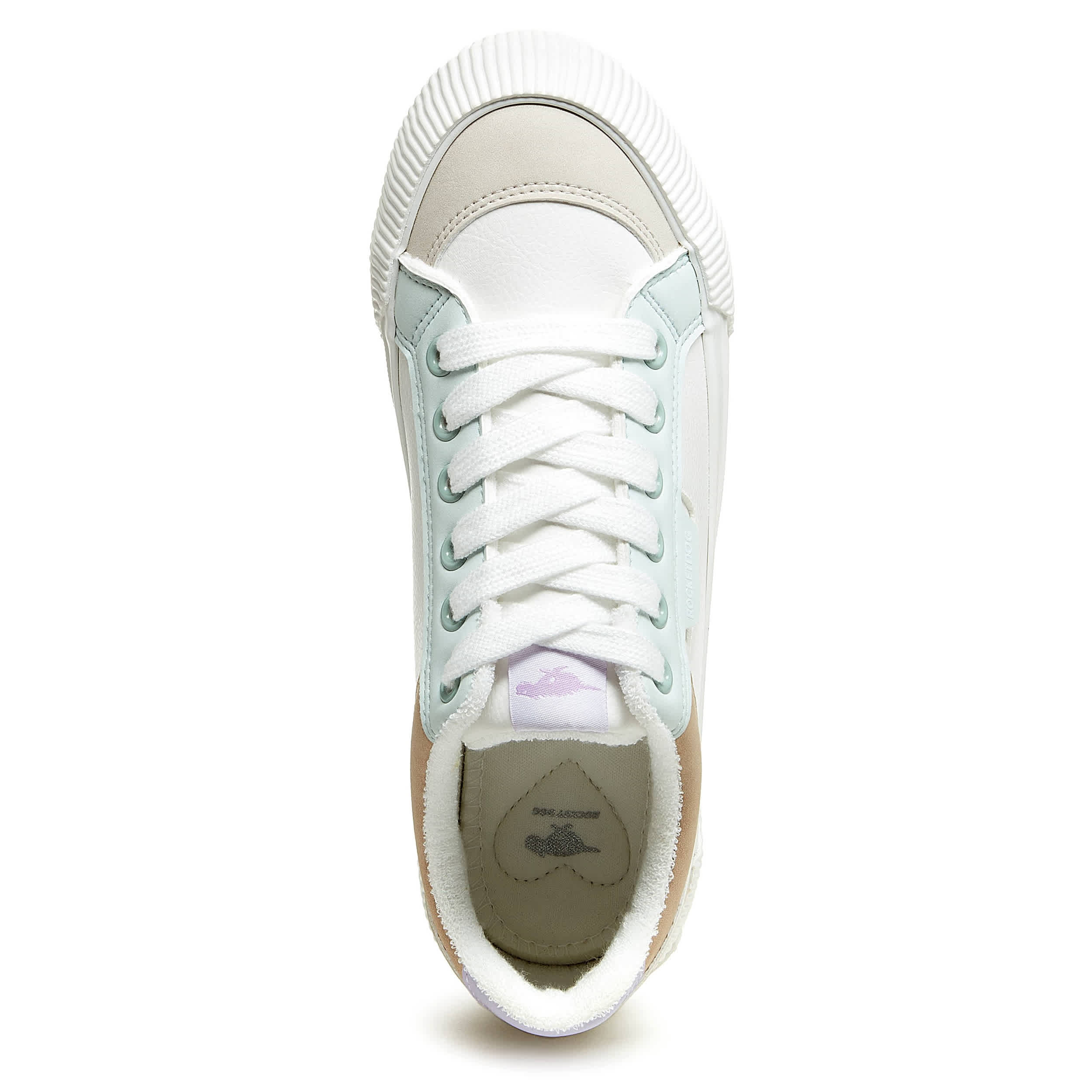 Don't leave home without that pep in your step with the Cheery women's sneaker from Rocket Dog. Featuring a colorblock faux leather upper with white laces for subtle contrast, this platform shoe offers a 1¼" boost. The Plush Foam Comfort insole cushions, while the textured outsole adds some traction.