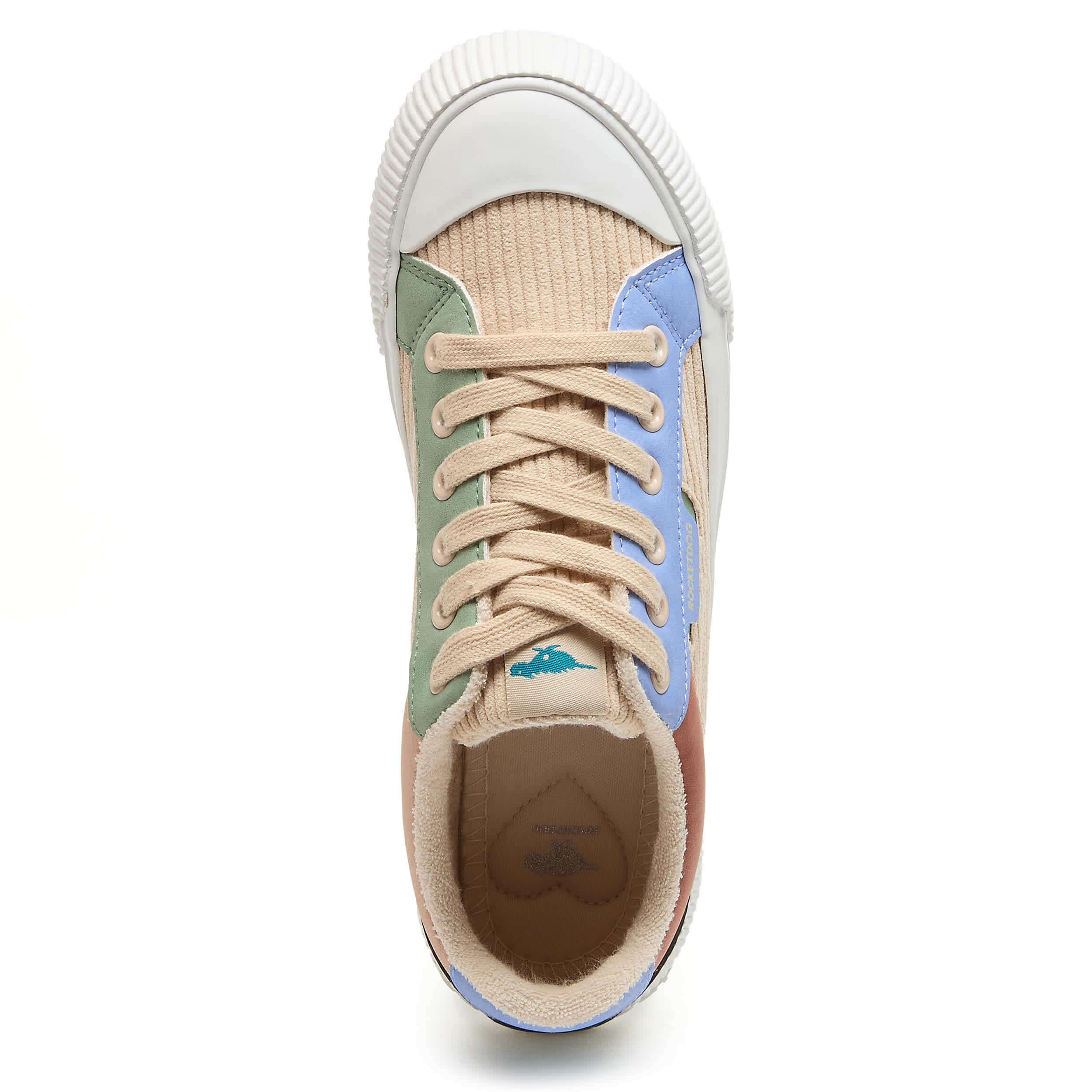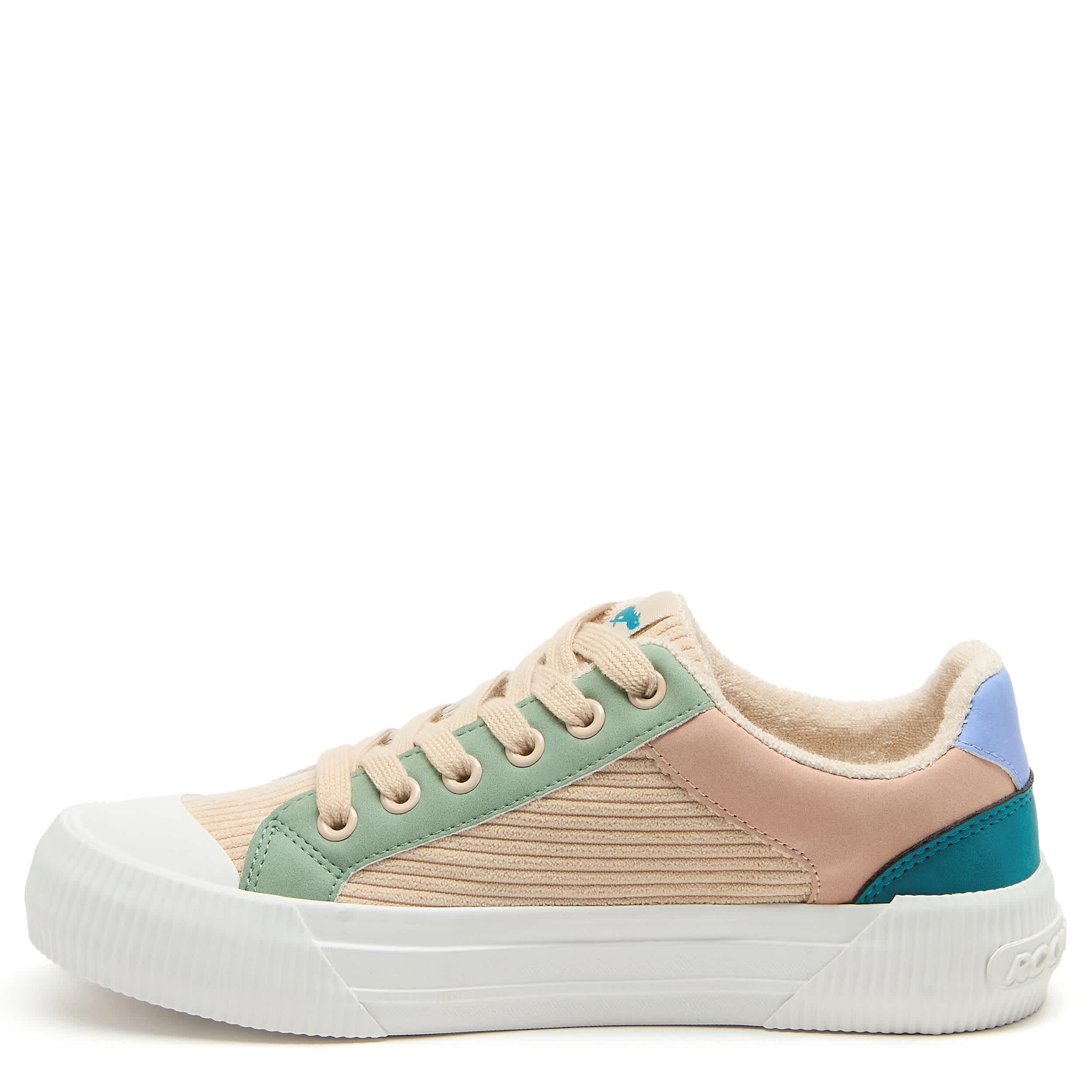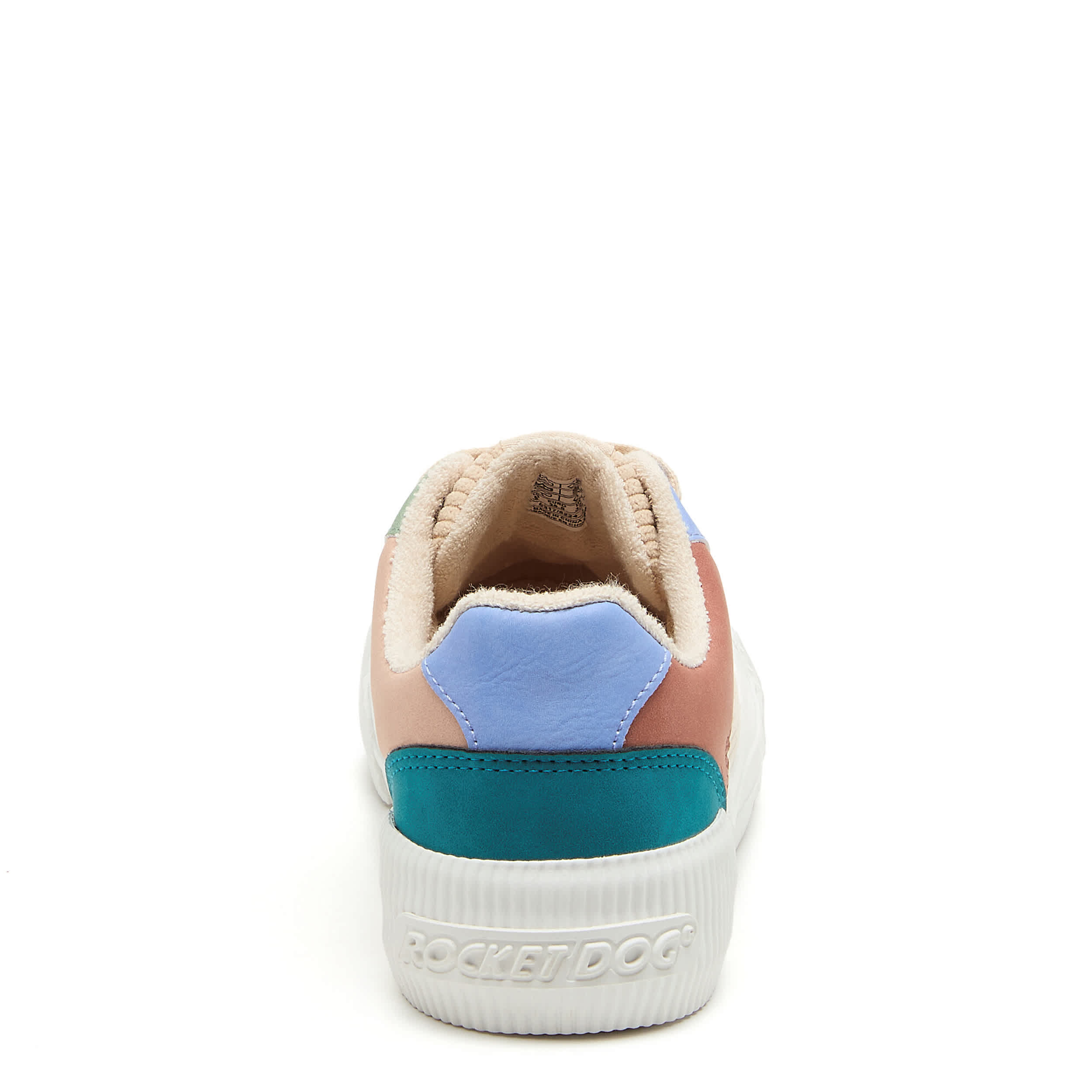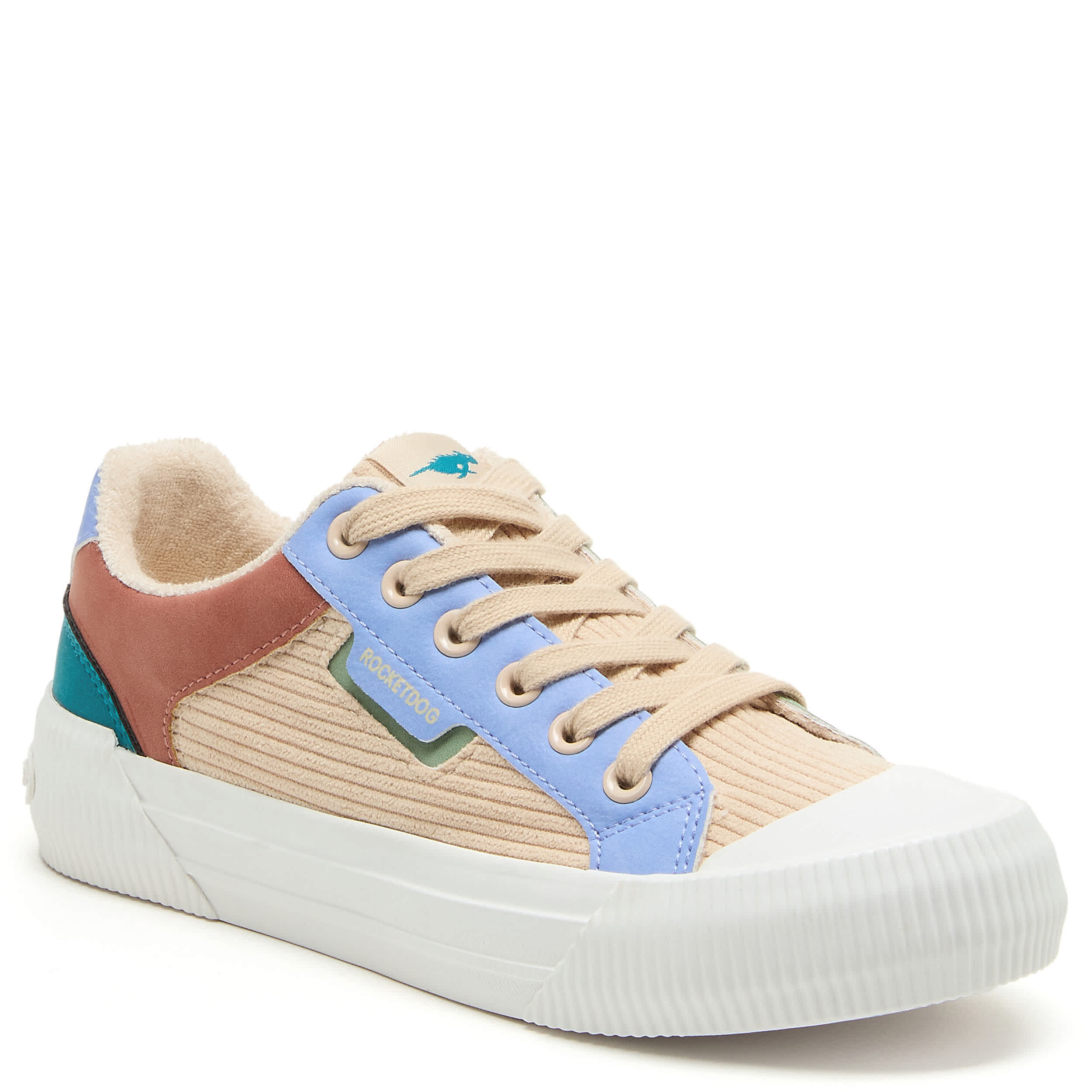 Don't leave home without that pep in your step with the Cheery Periwinkle Color Block women's sneaker from Rocket Dog. Featuring a colorblock upper with peach laces for a playful look, this platform shoe offers a 1¼" boost. The Plush Foam Comfort insole cushions, while the textured outsole adds some traction.