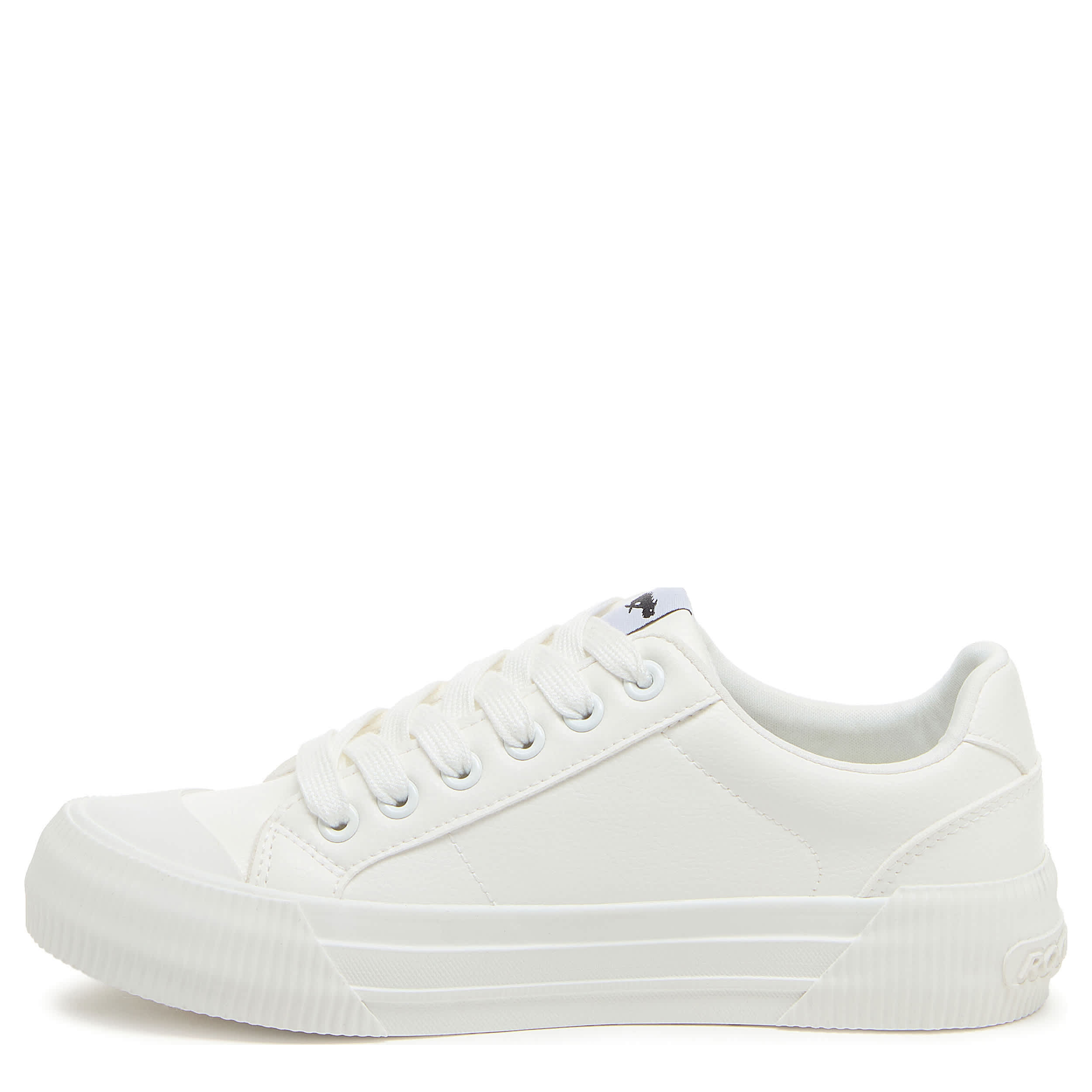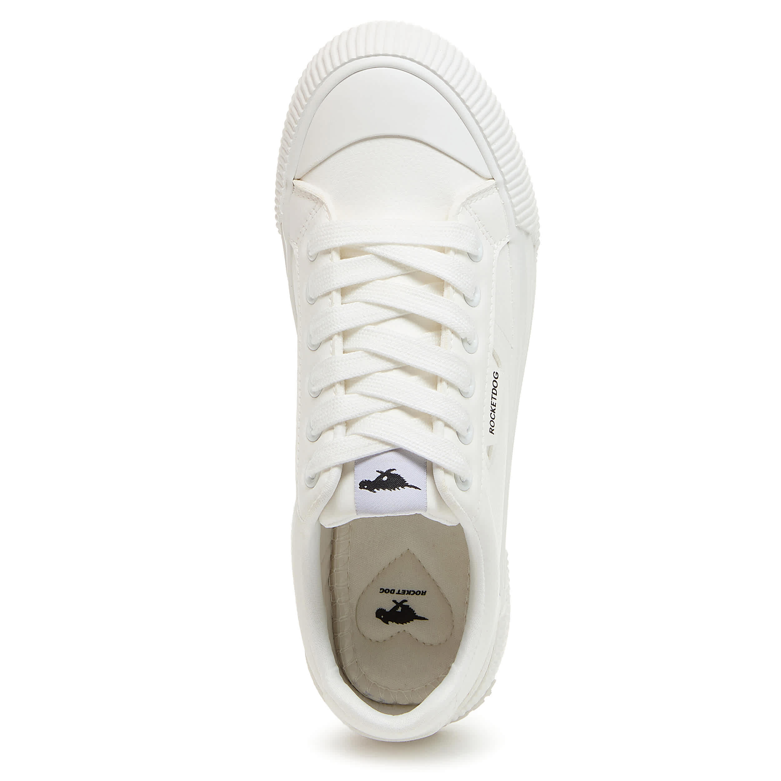 Don't leave home without that pep in your step with the Cheery Sport White women's sneaker from Rocket Dog. Featuring a canvas cotton upper with matching laces for an all-white look, this platform shoe offers a 1¼" boost. The Plush Foam Comfort insole cushions, while the textured outsole adds some traction.