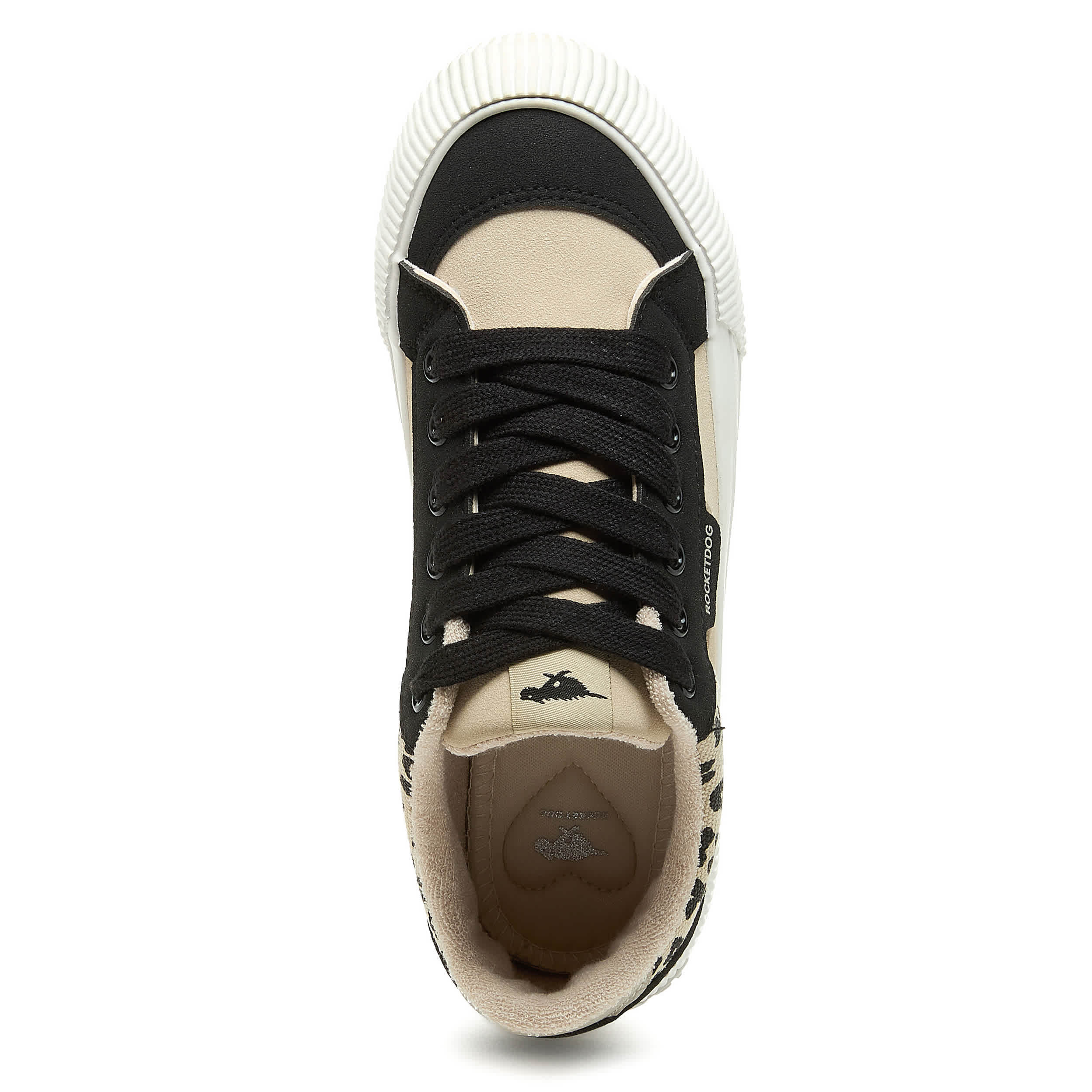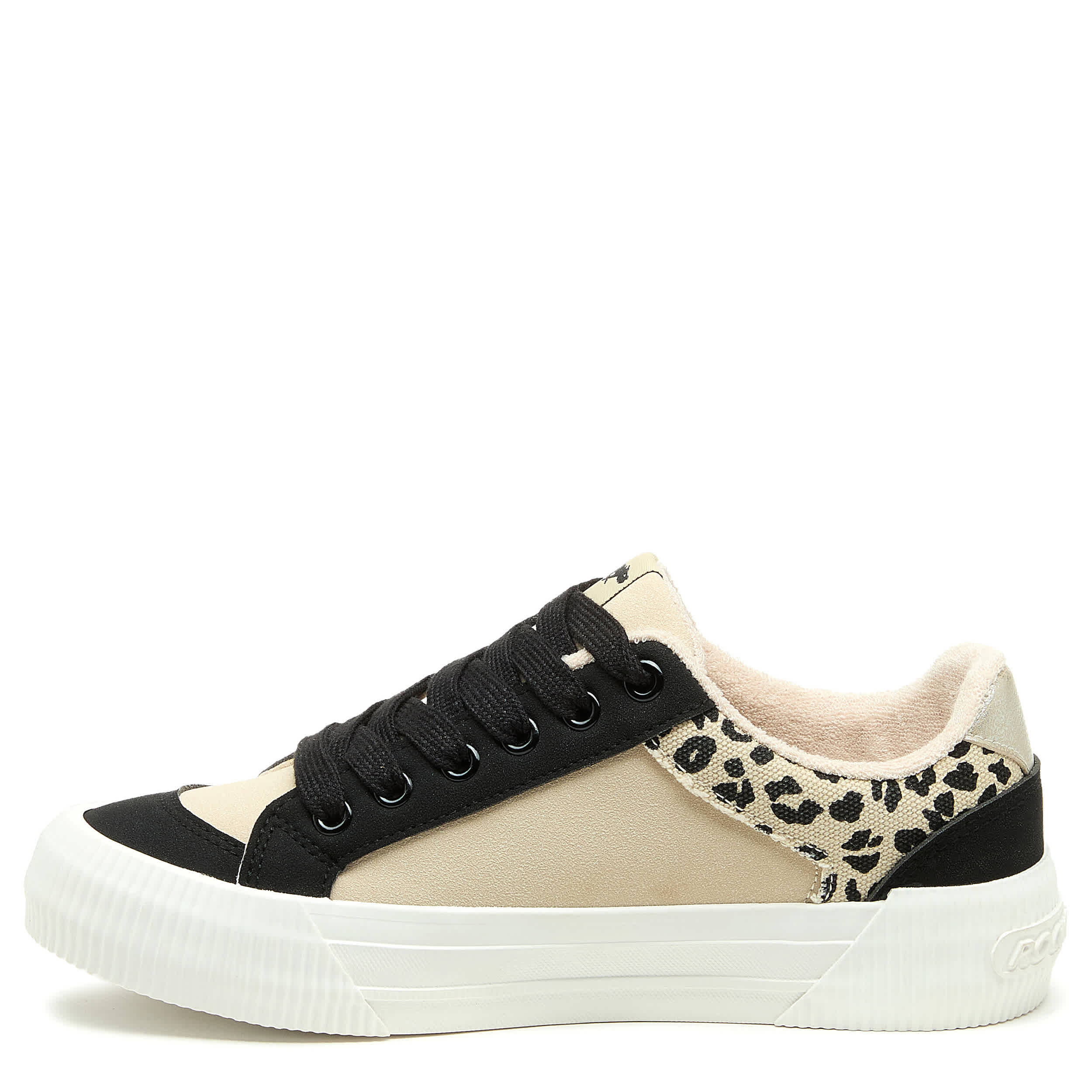 Don't leave home without that pep in your step with the Cheery Leopard Color Block women's sneaker from Rocket Dog. Featuring a leopard accented upper with black laces for cool contrast, this platform shoe offers a 1¼" boost. The Plush Foam Comfort insole cushions, while the textured outsole adds some traction.