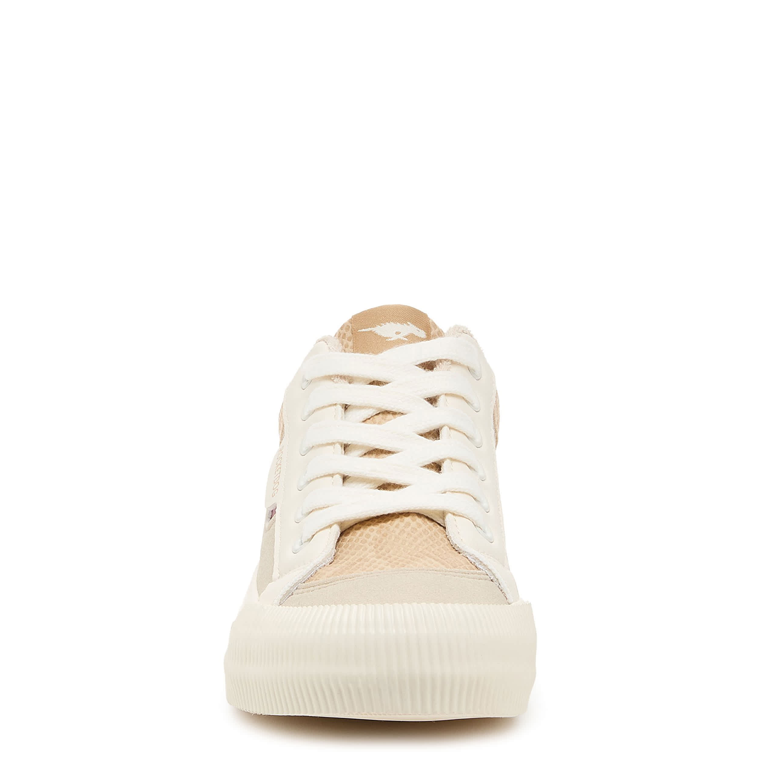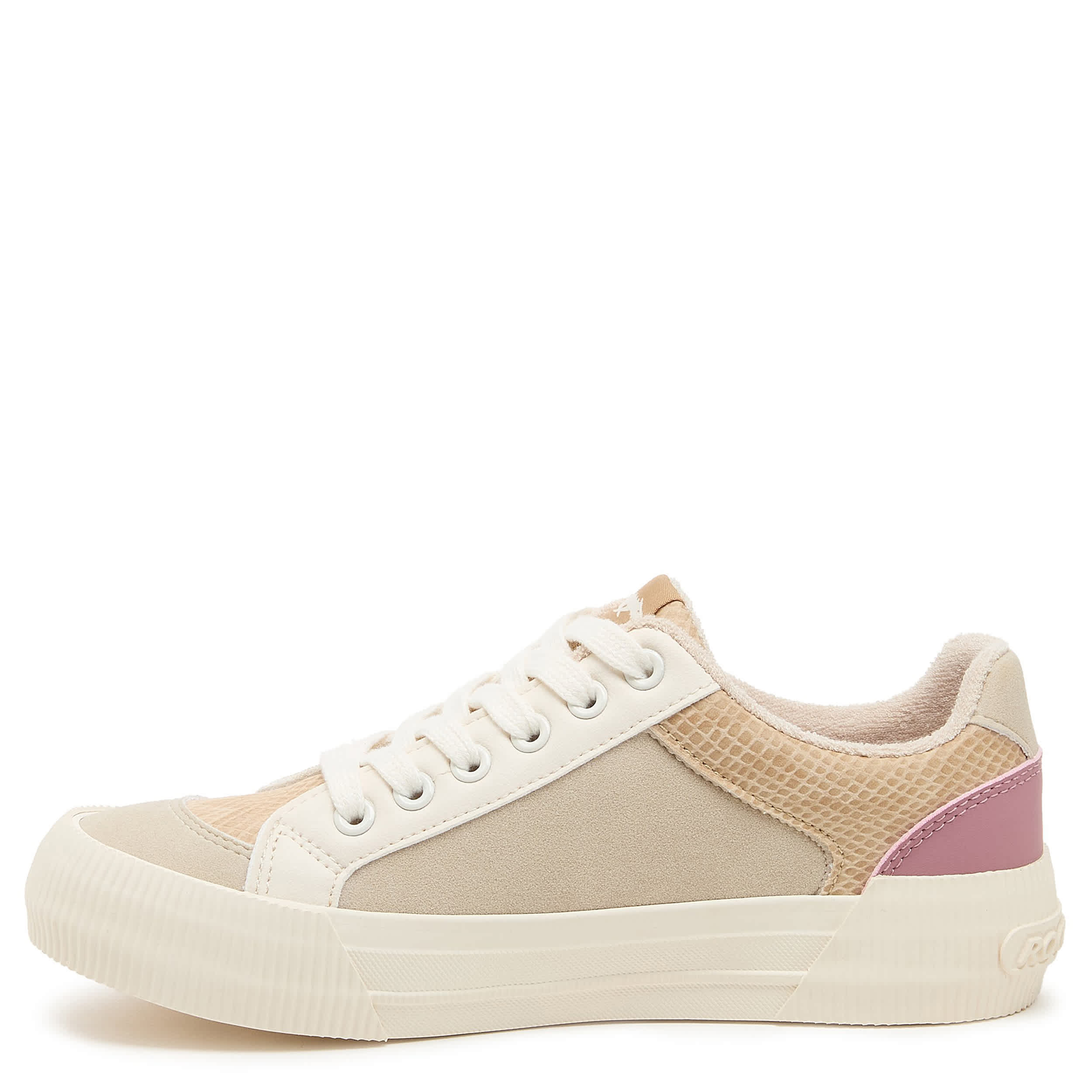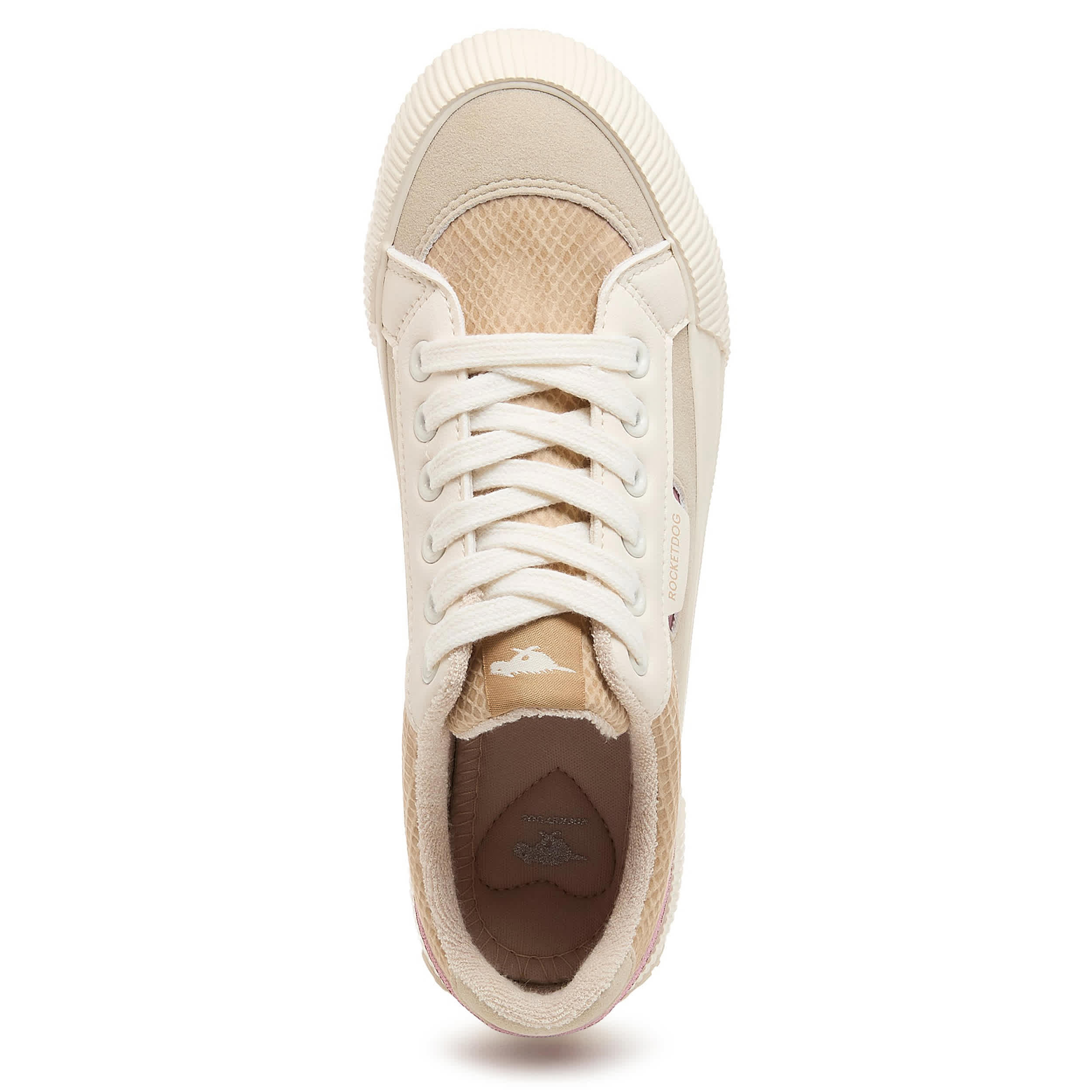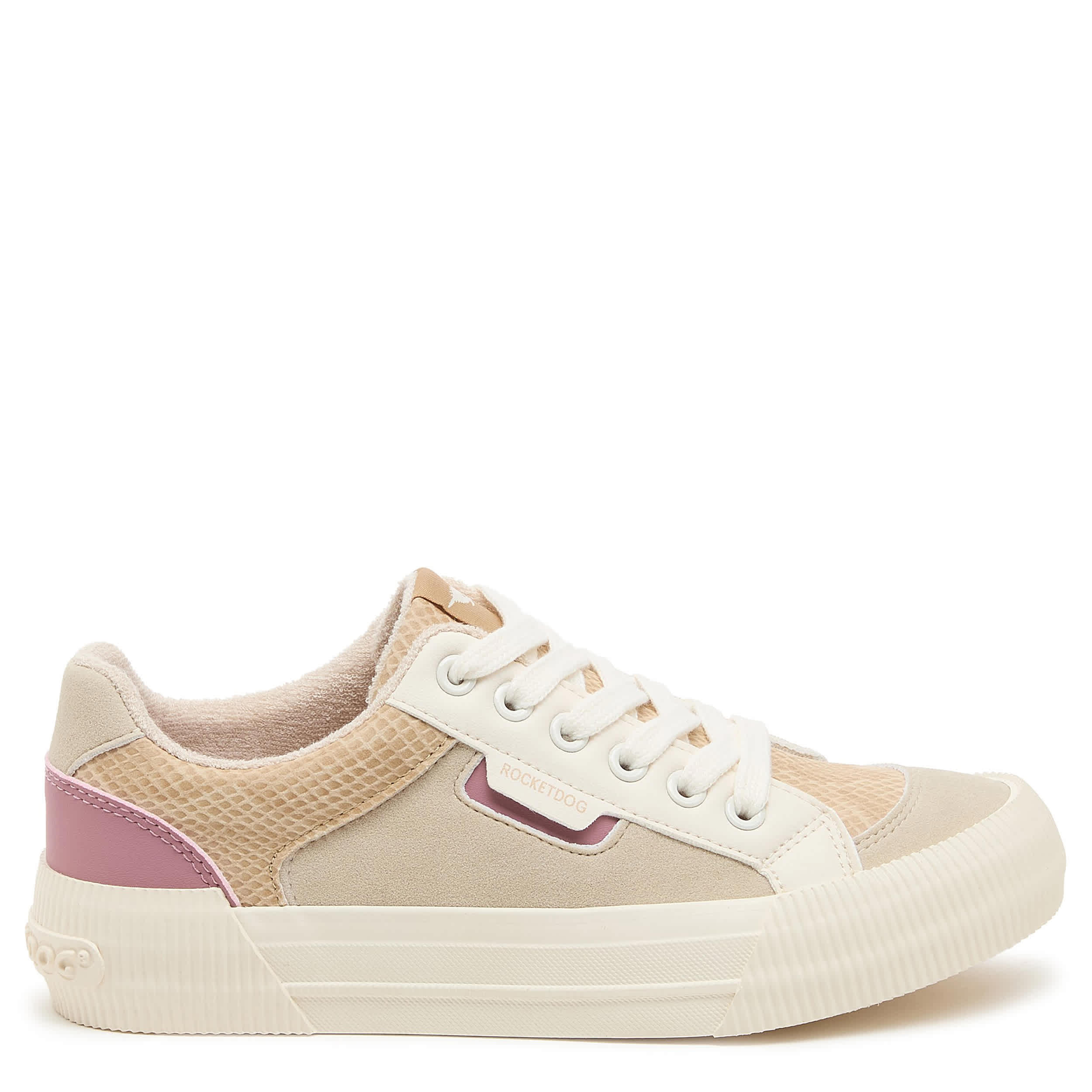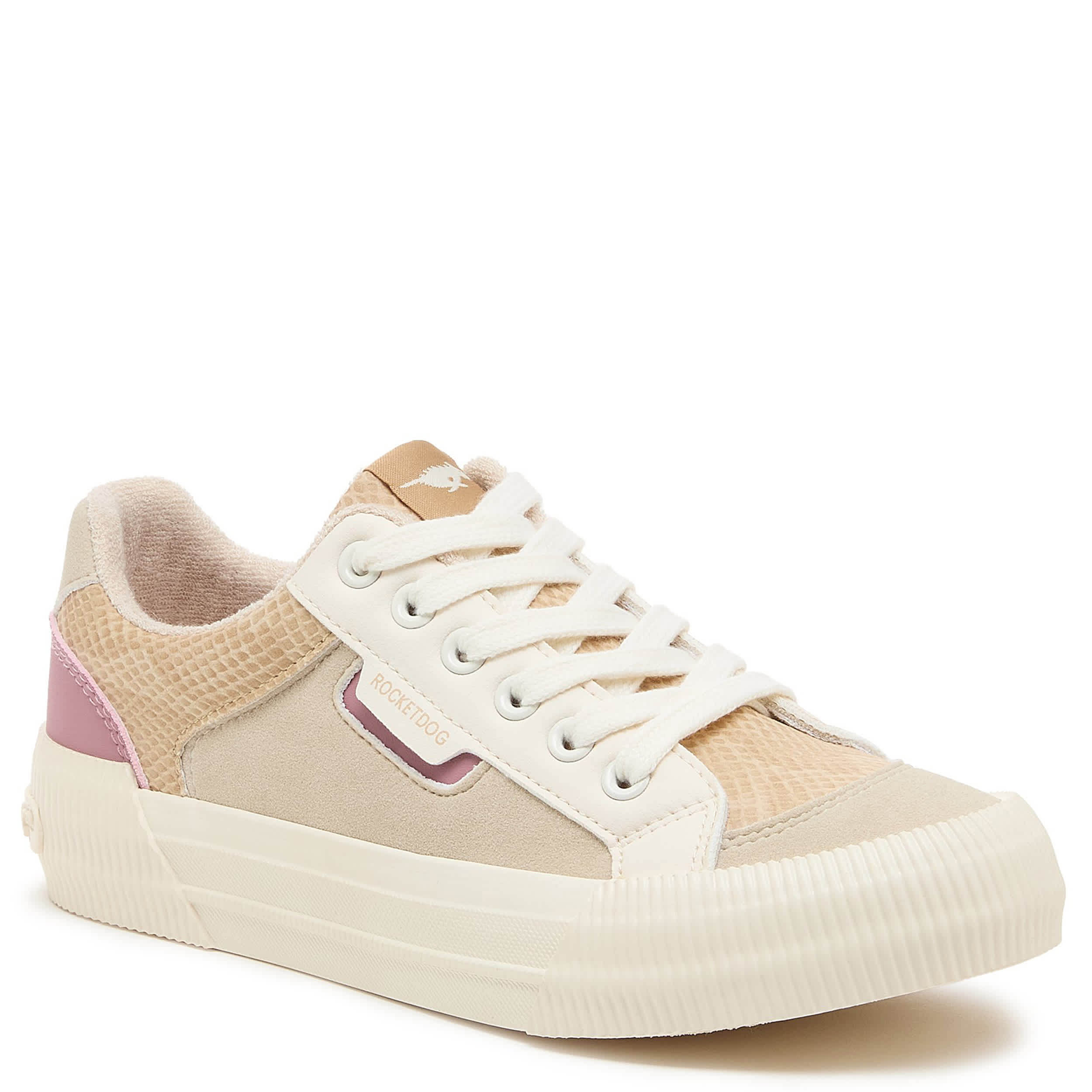 Don't leave home without that pep in your step with the Cheery Camel Color Block women's sneaker from Rocket Dog. Featuring a colorblock upper with white laces for a retro-styled look, this platform shoe offers a 1¼" boost. The Plush Foam Comfort insole cushions, while the textured outsole adds some traction.