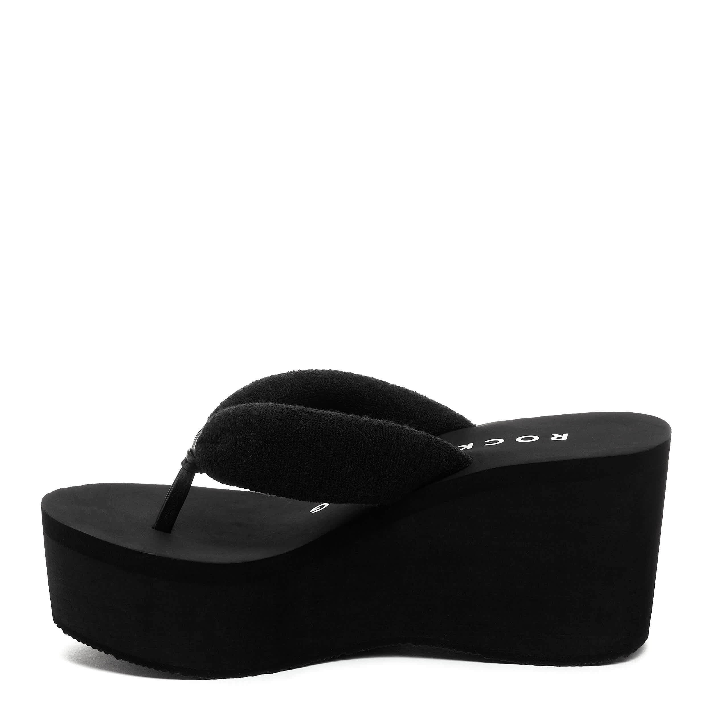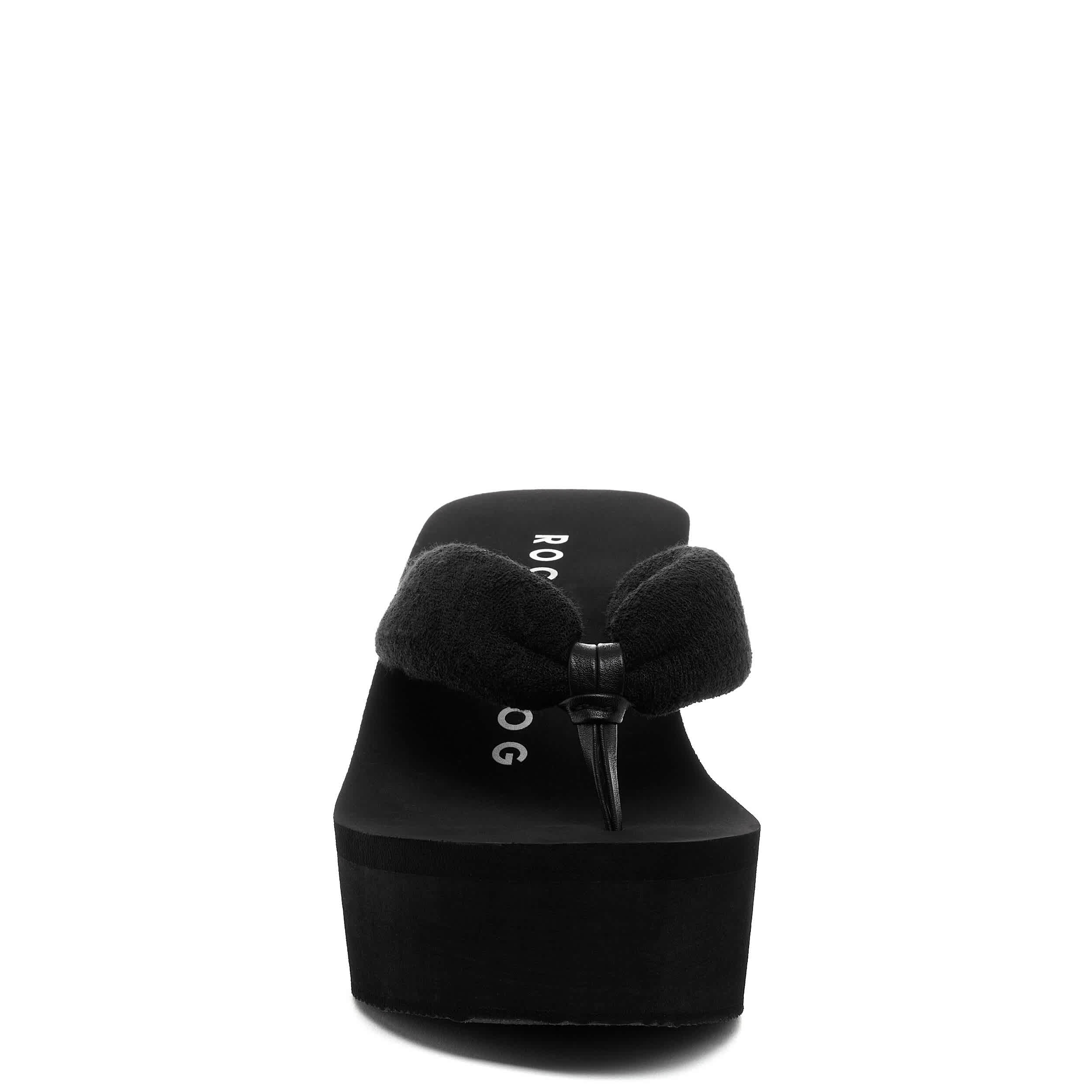Summer gets a higher stage in the Crushpuff women's platform flip flop from Rocket Dog. Featuring a puffy terry cloth upper with tube thong strap, this luxe sandal is extra comfy. The footbed cushions, while the high platform adds stable lift.