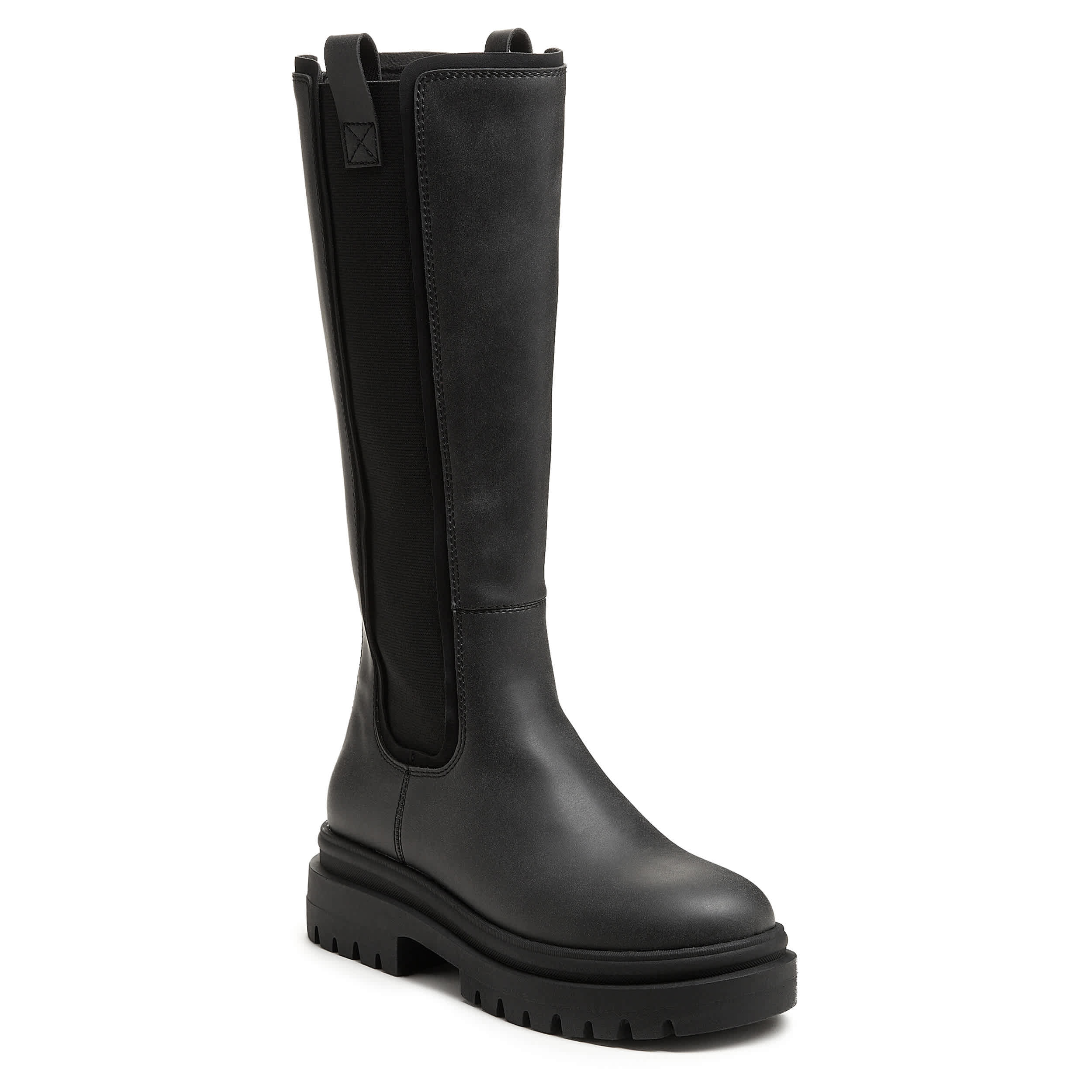 Rocket Dog Drea Women's Tall Boot - Black Fall style with the Drea tall boot from Rocket Dog is assured. Featuring a faux leather upper with elastic side panels for a secure fit, this knee-high boot is soothing with a microfiber lining. The Plush Foam Comfort insole cushions, while the heel adds just enough height.