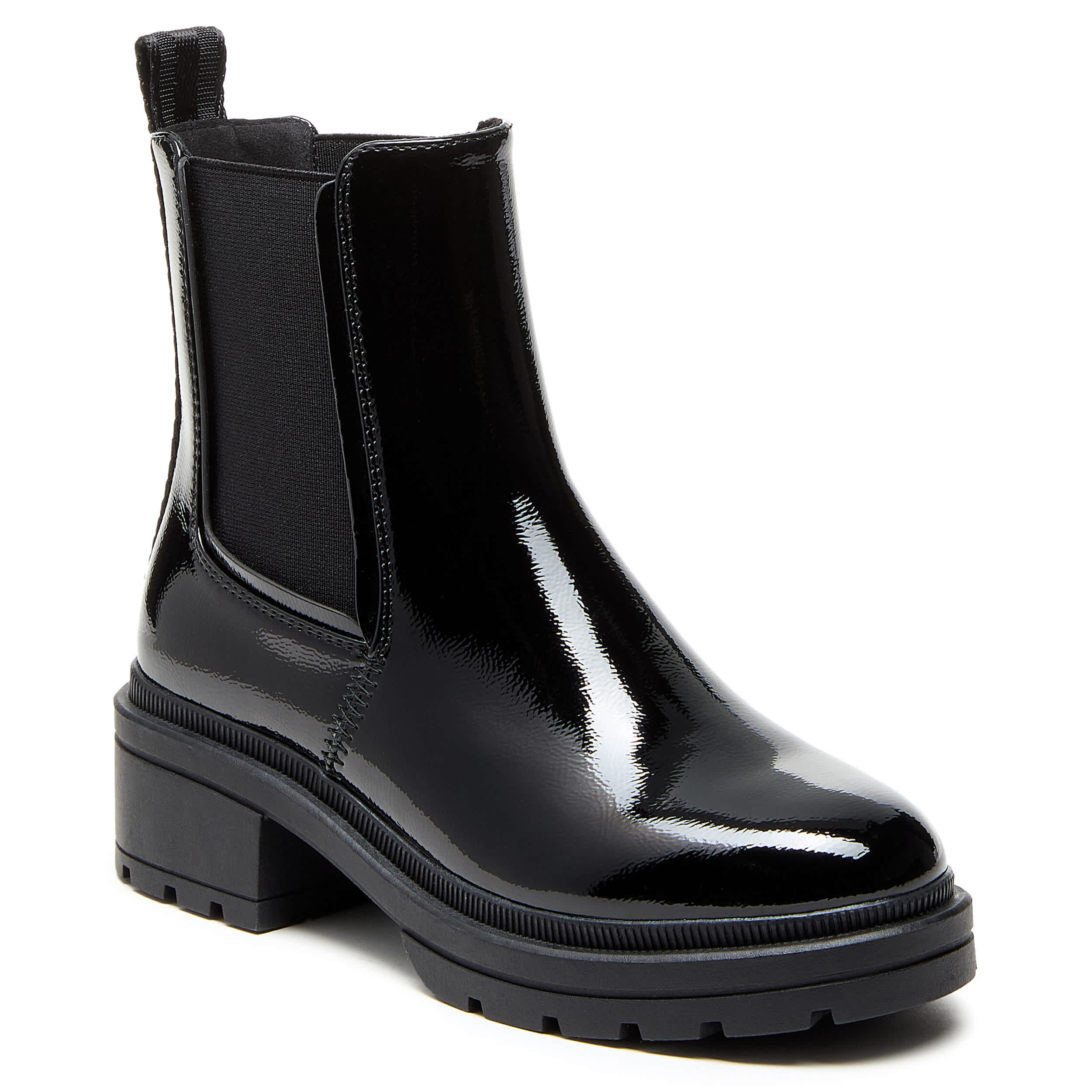 Play with practical style in the Iggie Chelsea boot from Rocket Dog. Featuring a glossy patent leather upper with a rear pull tab for easy entry, this versatile Chelsea boot looks great with dresses or jeans. The Plush Comfort Foam cushions, while the lug outsole gets a boost from the platform heel.
