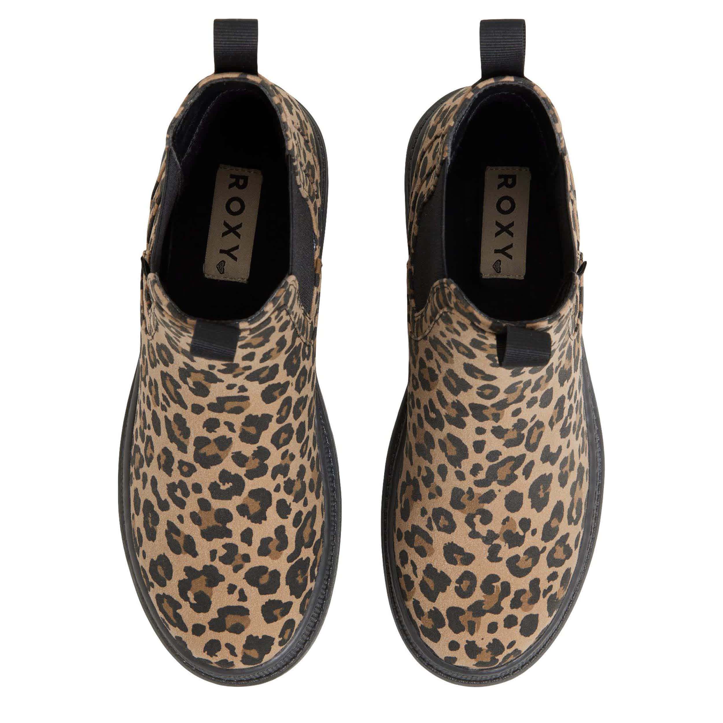 Effortless style in the Wonderland slip-on boot from ROXY. With a water resistant faux leather upper featuring a chic leopard print, this Chelsea boot has dual pull tabs for easy entry. The lining soothes your steps, while the lugged outsole provides rugged traction.