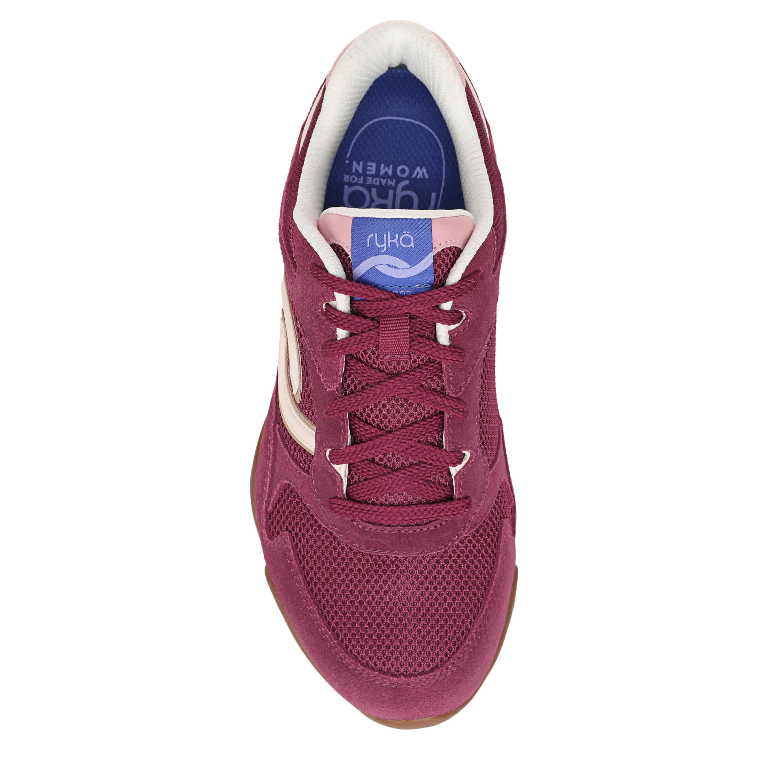 Low-profile cool and everyday chic in the Candor women's sneaker from Ryka. Featuring a breathable air mesh upper with suede overlays, this retro-inspired shoe has built-in flex that's great for dance class or fitness. The anatomical insole includes arch & heel support while the outsole offers Pivot Point for smooth turns.
