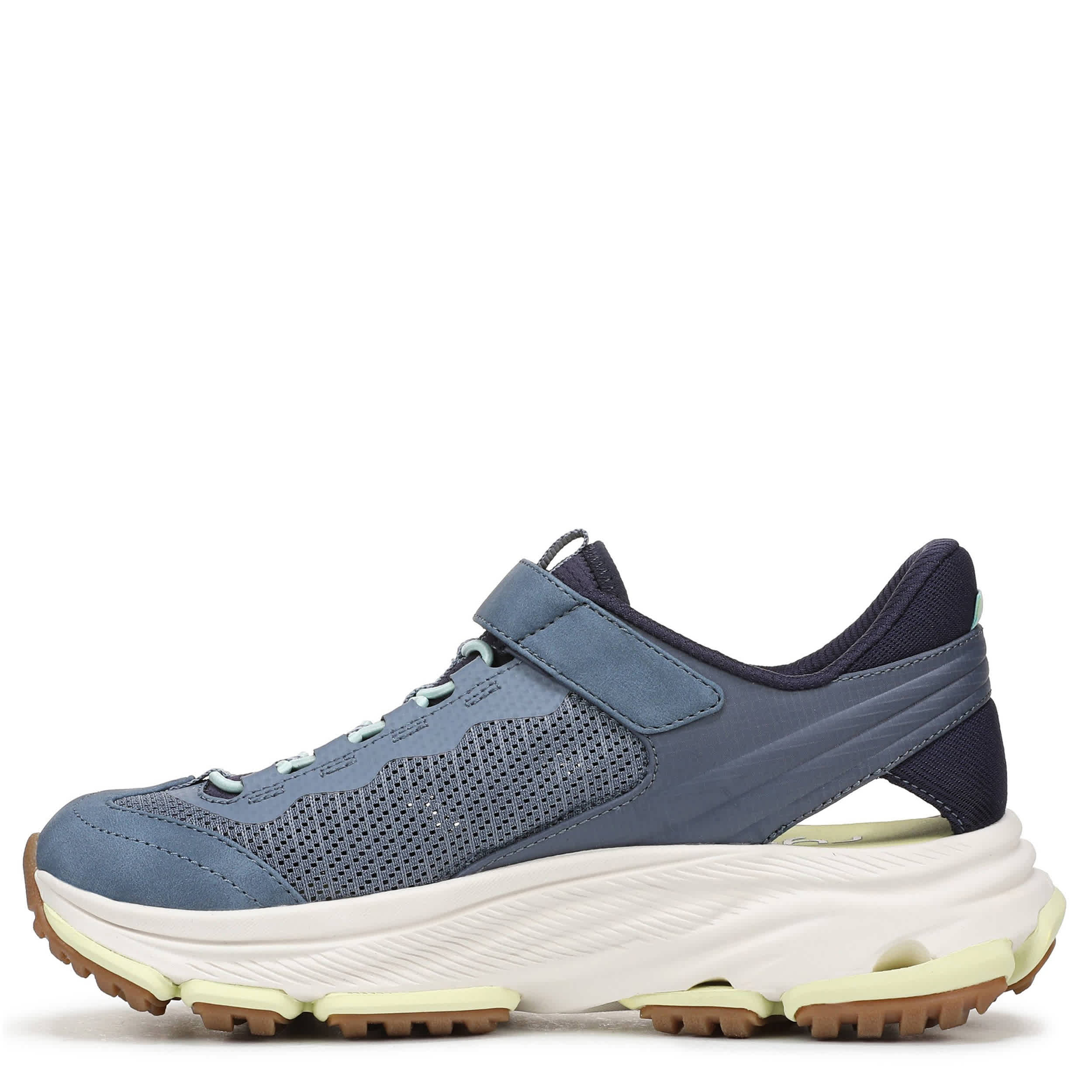 Hiking in the Ryka Devotion Max Fisherman sneaker combines outdoor style with next level comfort. Featuring a breathable mesh upper with faux leather overlays, this bungee gore slip-on has a padded heel & collar and RE-ZORB® LITE in the forefoot for contoured stability. The full-length RE-ZORB® & ACTIVfoam™ EVA midsole offer reponsive cushioning that absorbs shock, while the durable sole has built-in compression channels and trail traction.