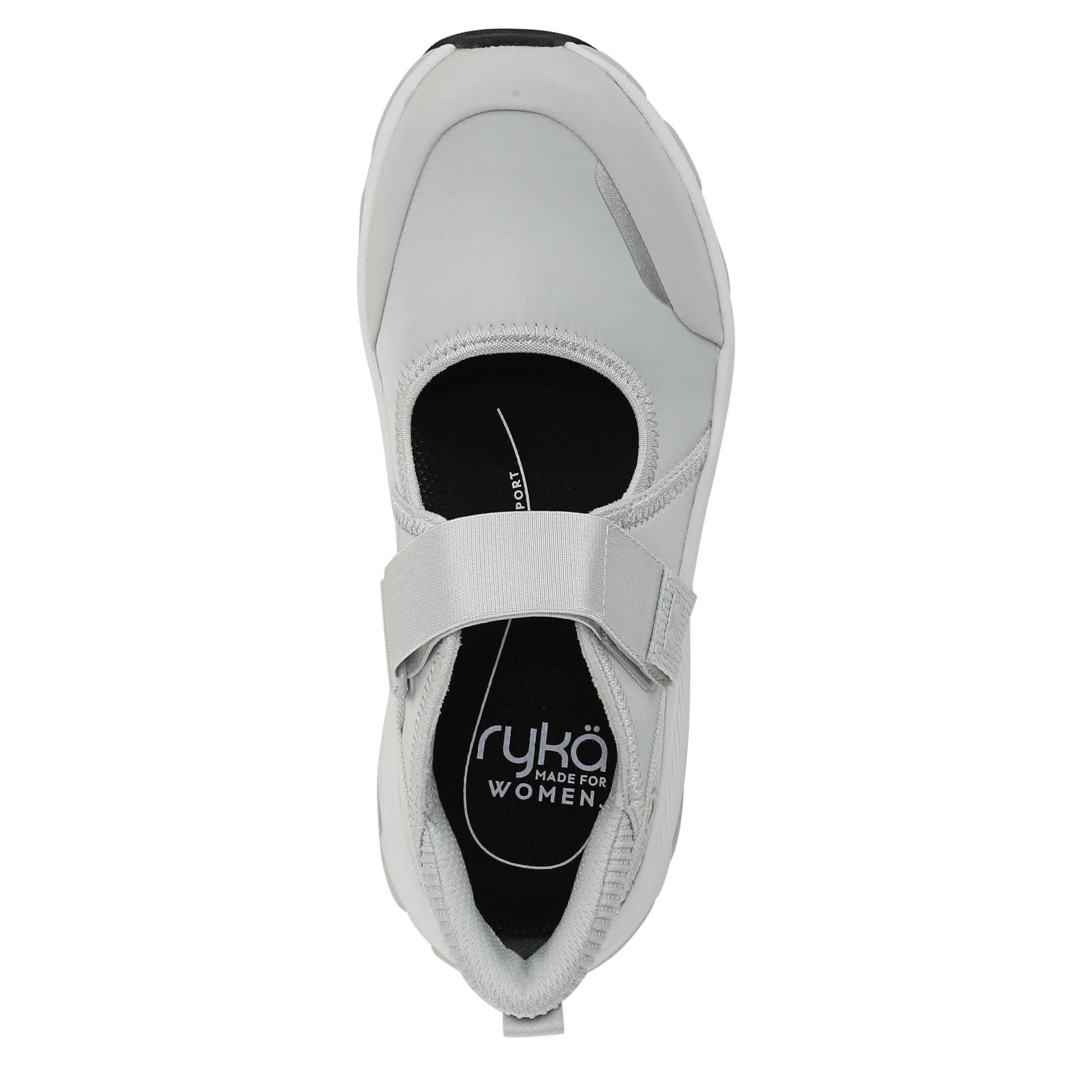 Get unparallelled comfort in the Ryka Devotion Max Mary Jane sneaker. Featuring a breathable air mesh & fabric upper, this shoe fits securely with an adjustable stretchy strap to ensure comfort. The padded heel plus RE-ZORB® responsive cushioning support every step, while the durable two-piece sole has built-in compression channels for shock absorption.