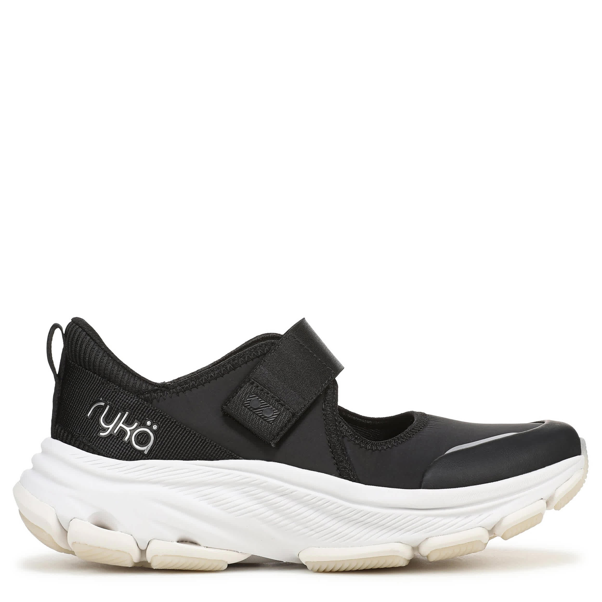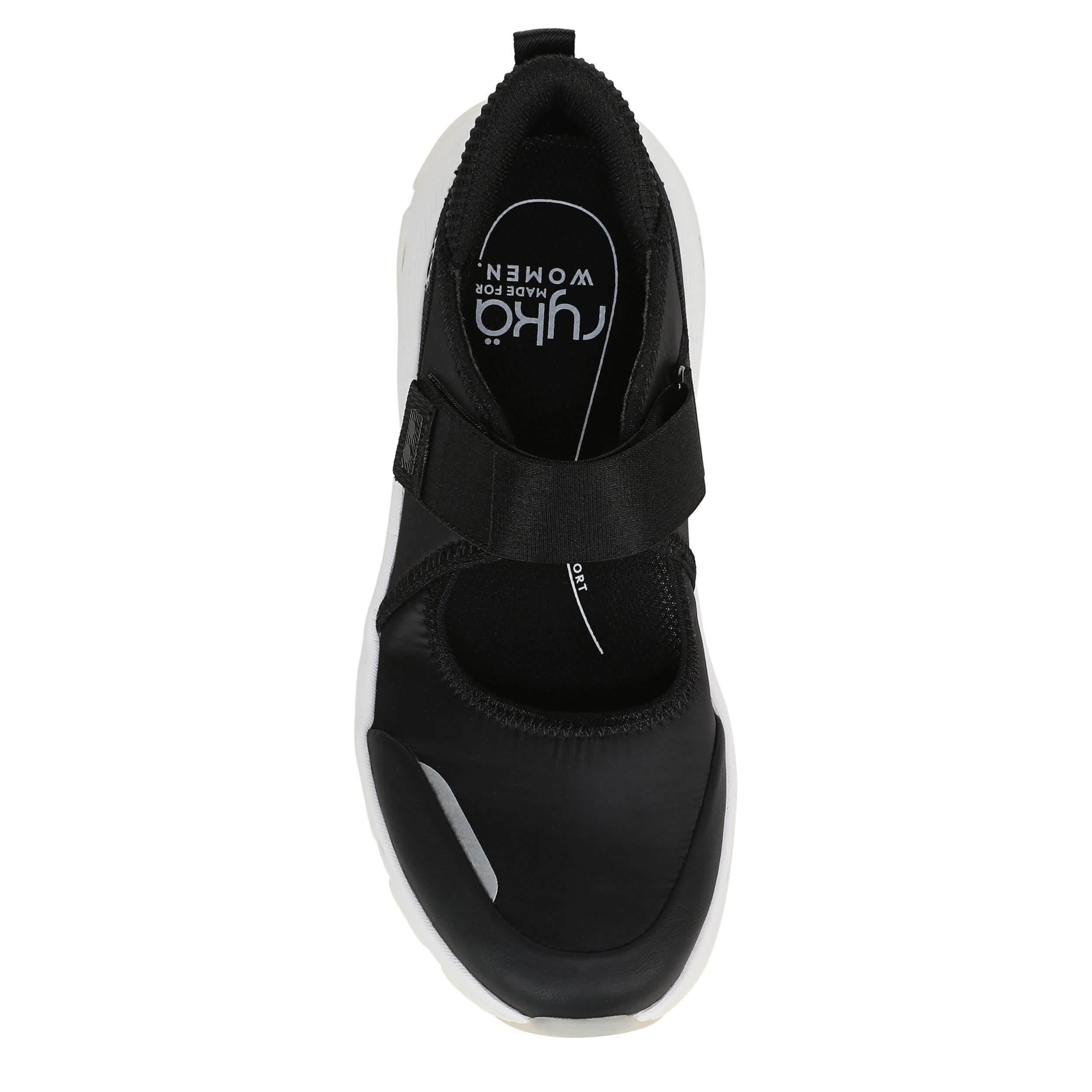 Get unparallelled comfort in the Ryka Devotion Max Mary Jane sneaker. Featuring a breathable air mesh & fabric upper, this shoe fits securely with an adjustable stretchy strap to ensure comfort. The padded heel plus RE-ZORB® responsive cushioning support every step, while the durable two-piece sole has built-in compression channels for shock absorption.