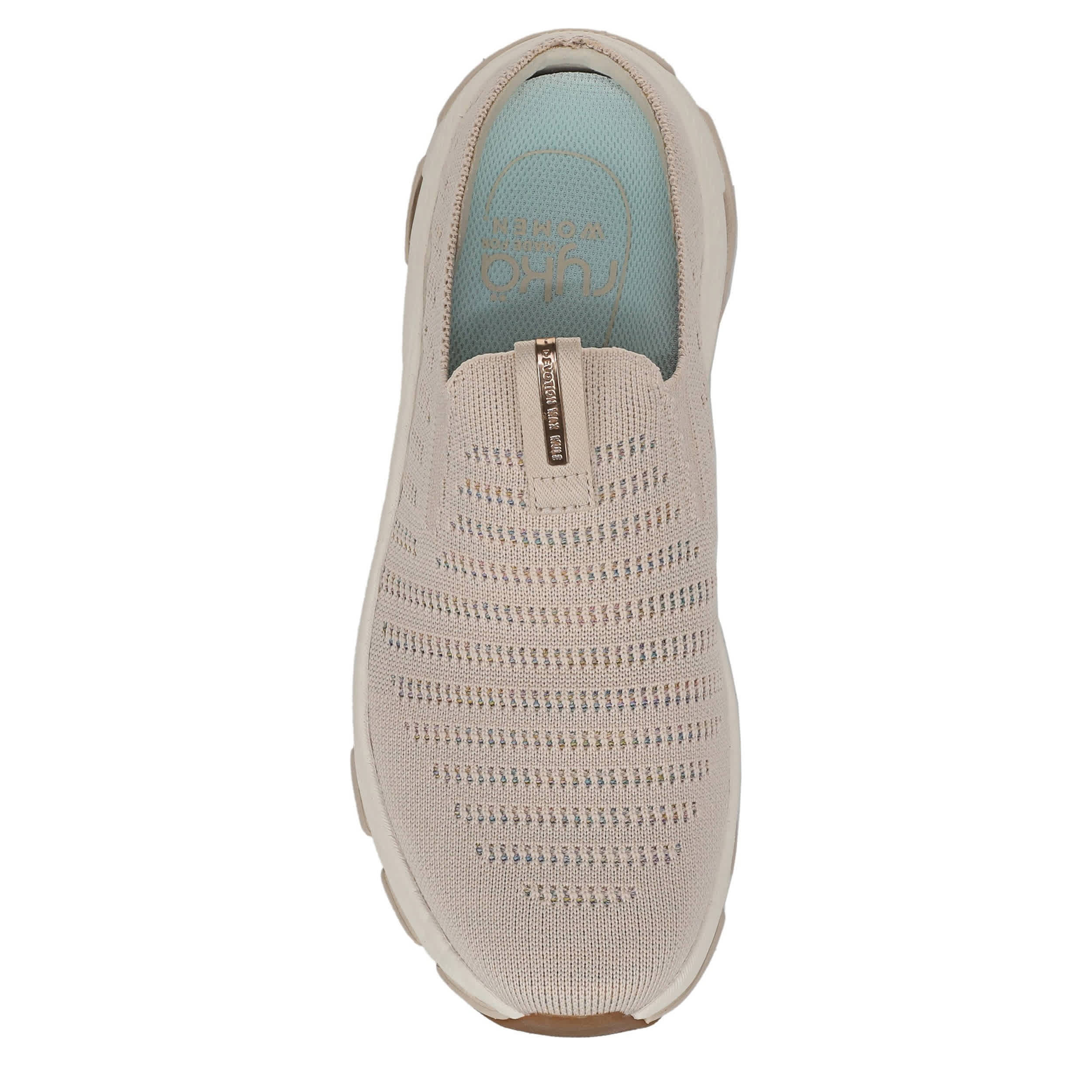 Never settle in the Ryka Devotion Max Mule sneaker. Featuring an engineered knit upper with a stretch topline, this shoe has a fabric lining and ACTIVfoam™ midsole for a nice step-in feel. The anatomic insole plus RE-ZORB® responsive cushioning support every step, while the durable two-piece sole has built-in compression channels for shock absorption.