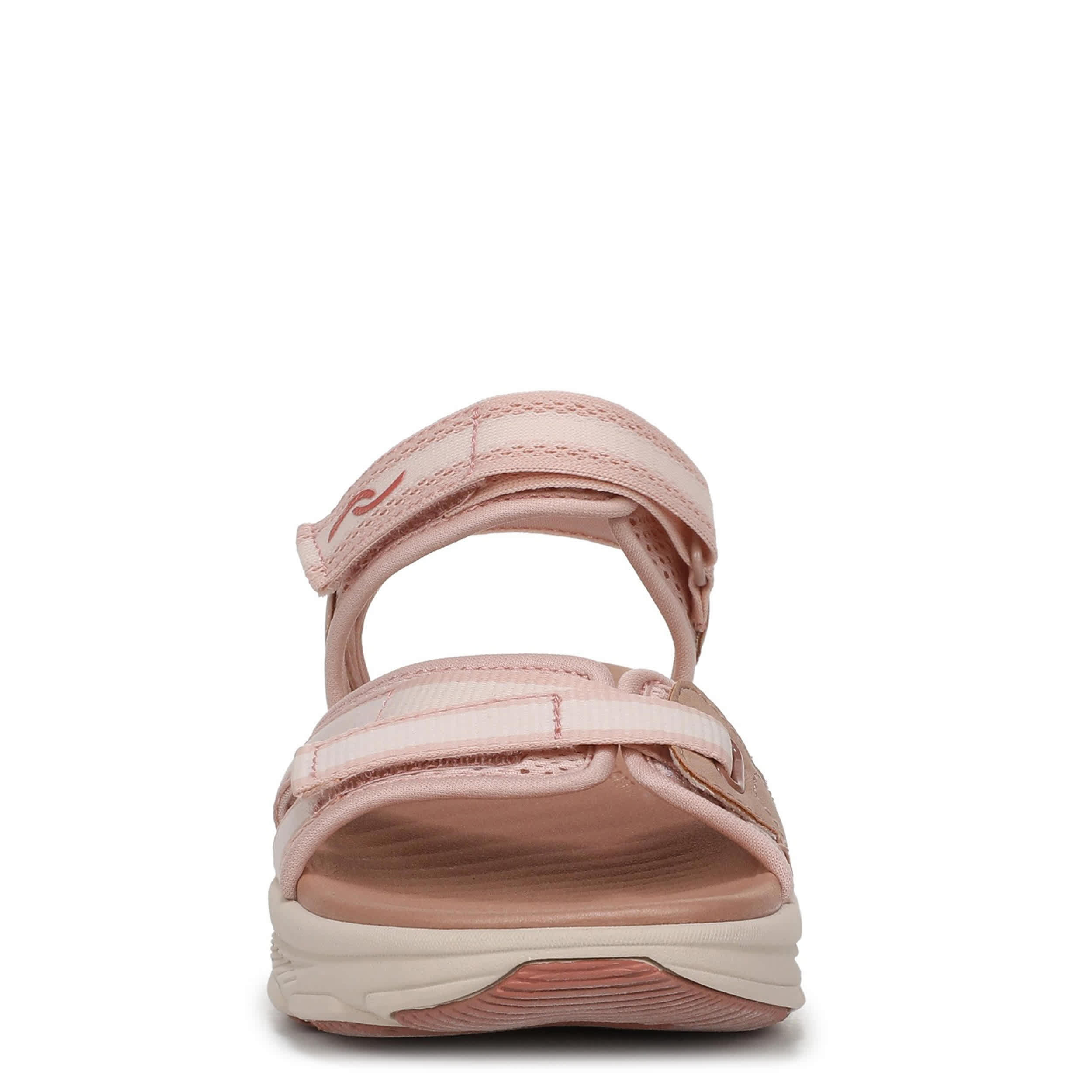 Feel free to stride in the Ryka Devotion Max sandal. Featuring a breathable open mesh upper with webbing overlays and fabric linings, this sport sandal has a padded backstrap for extra comfort. The molded footbed offers arch support, while the durable outsole enables your movement.