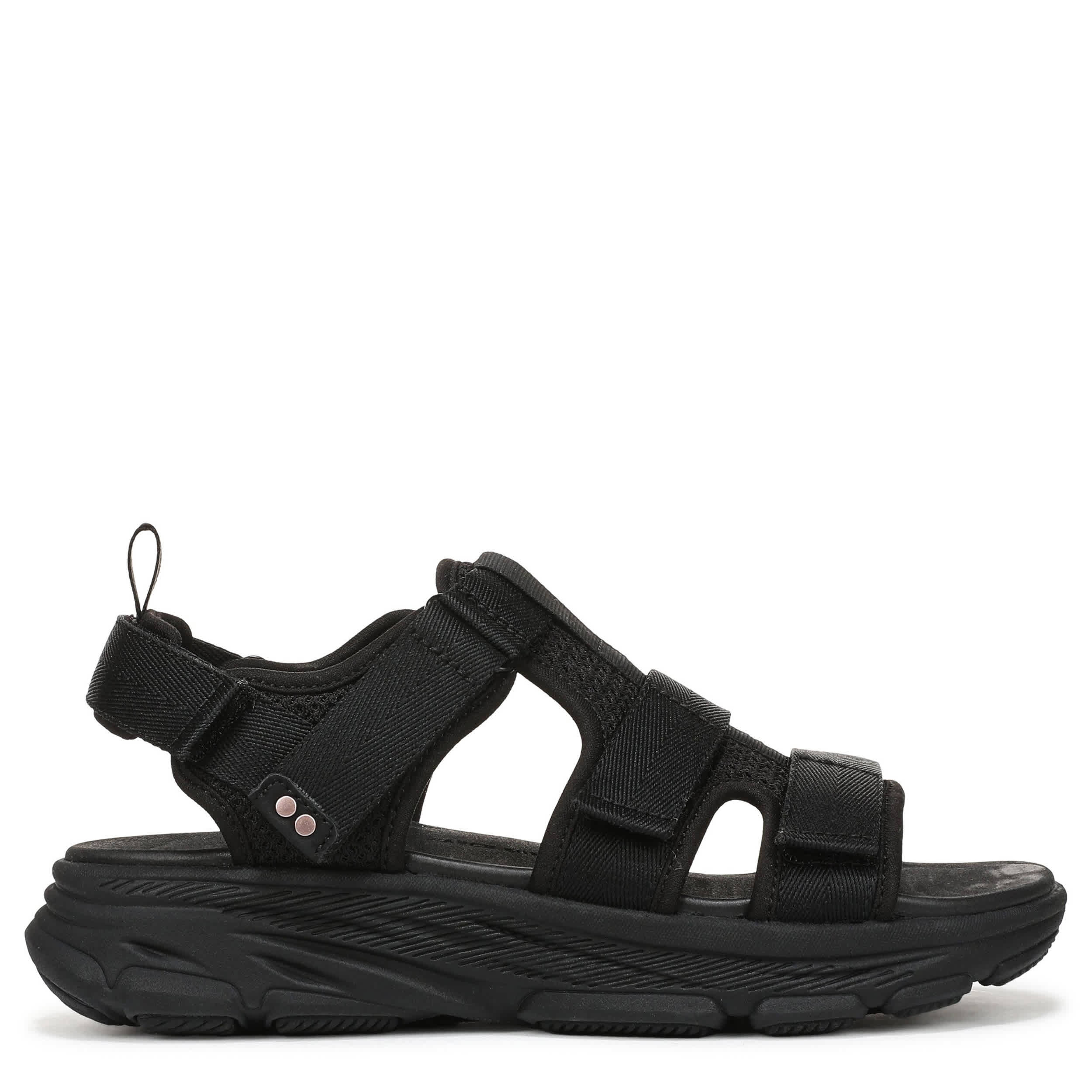 Cool out this summer in the Ryka Devotion Max T Strap sandal. Featuring a breathable mesh upper with fabric linings, this lifestyle sandal has a padded, adjustable backstrap and heel pull for easy entry. The molded footbed offers arch support, while the durable outsole enables your adventures.
