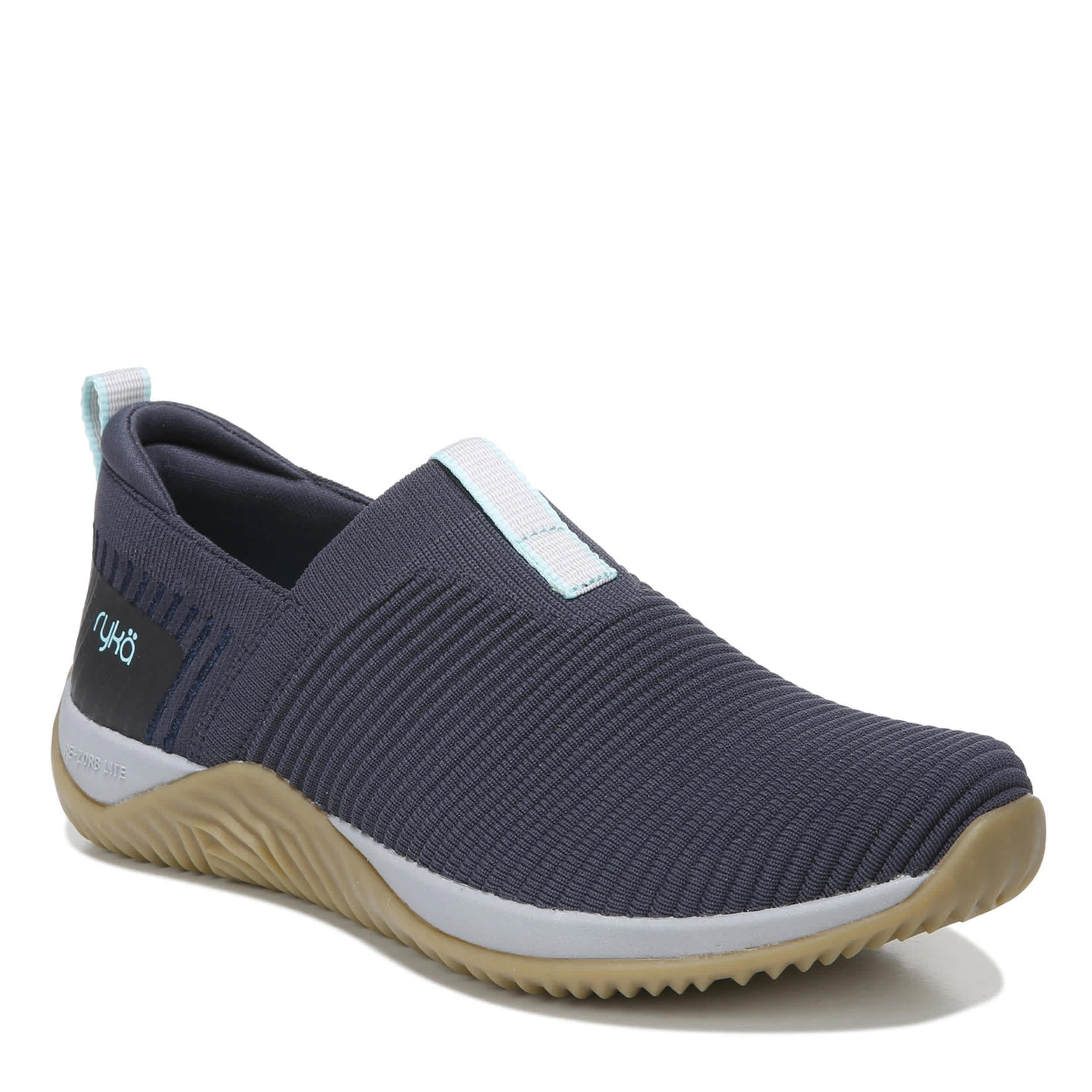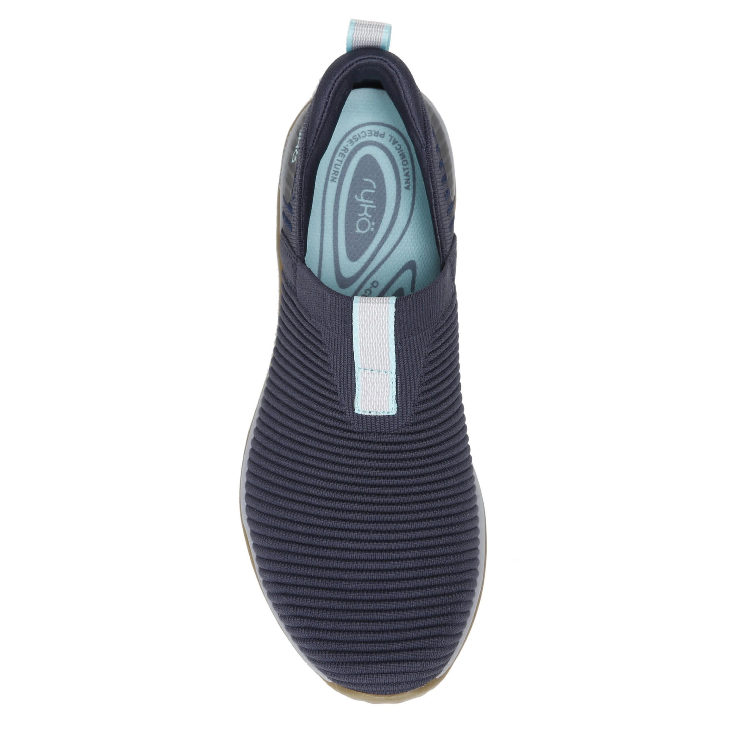 Outdoorsy comfort & style that you can take on trails - the Ryka Echo Low women's slip-on sneaker. Made from soft ribbed knit featuring a padded heel collar, this slip-on also has dual pull tabs for easy entry. The REZORB-LITE cushioning, anatomical insole & extra arch support offer shock absorption and comfort for all your outdoor adventures.