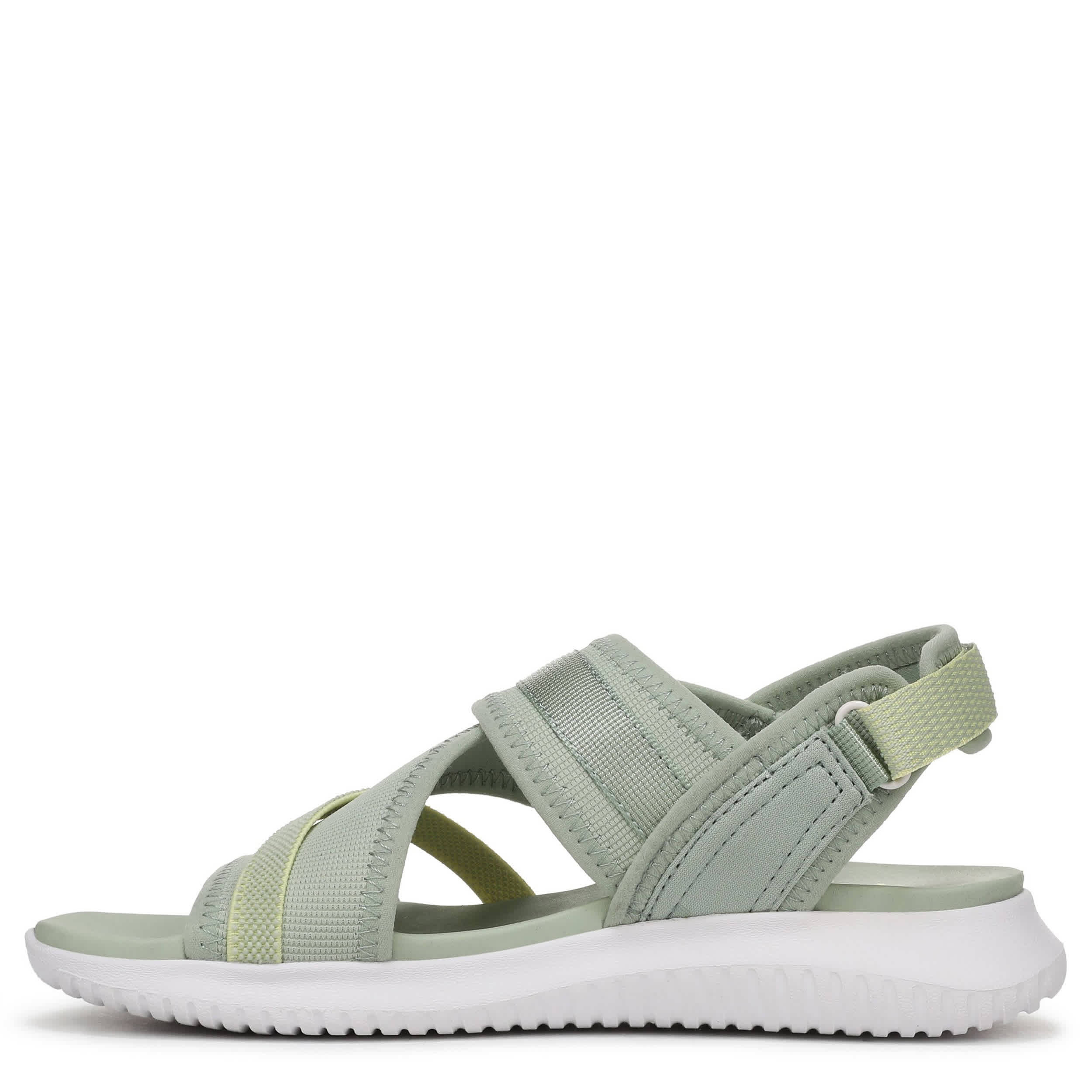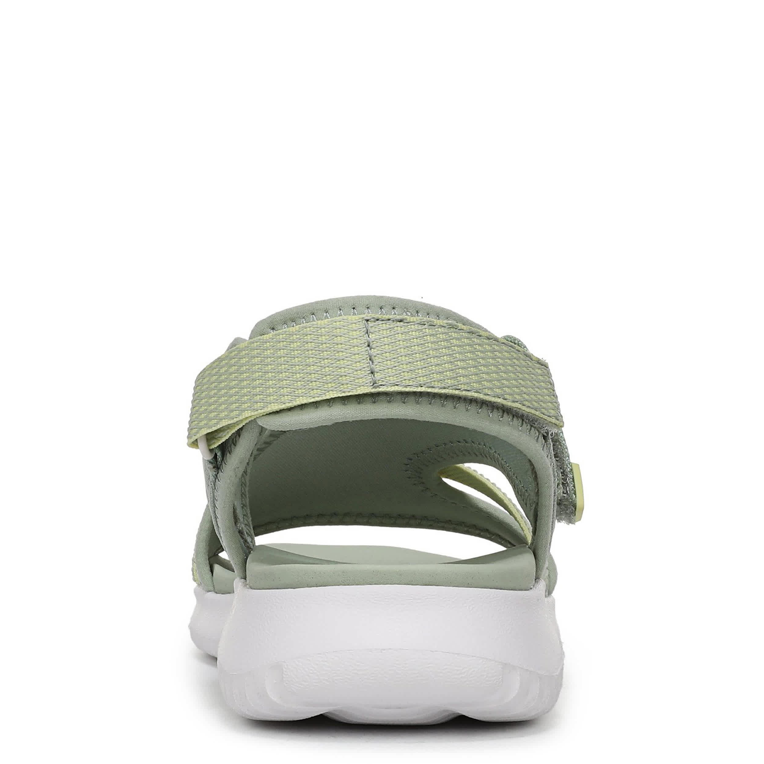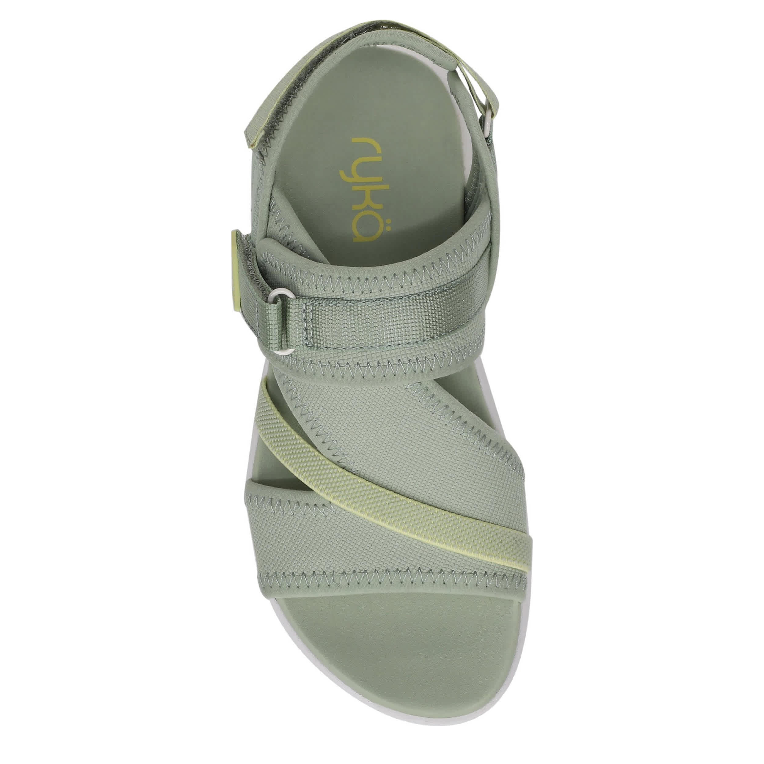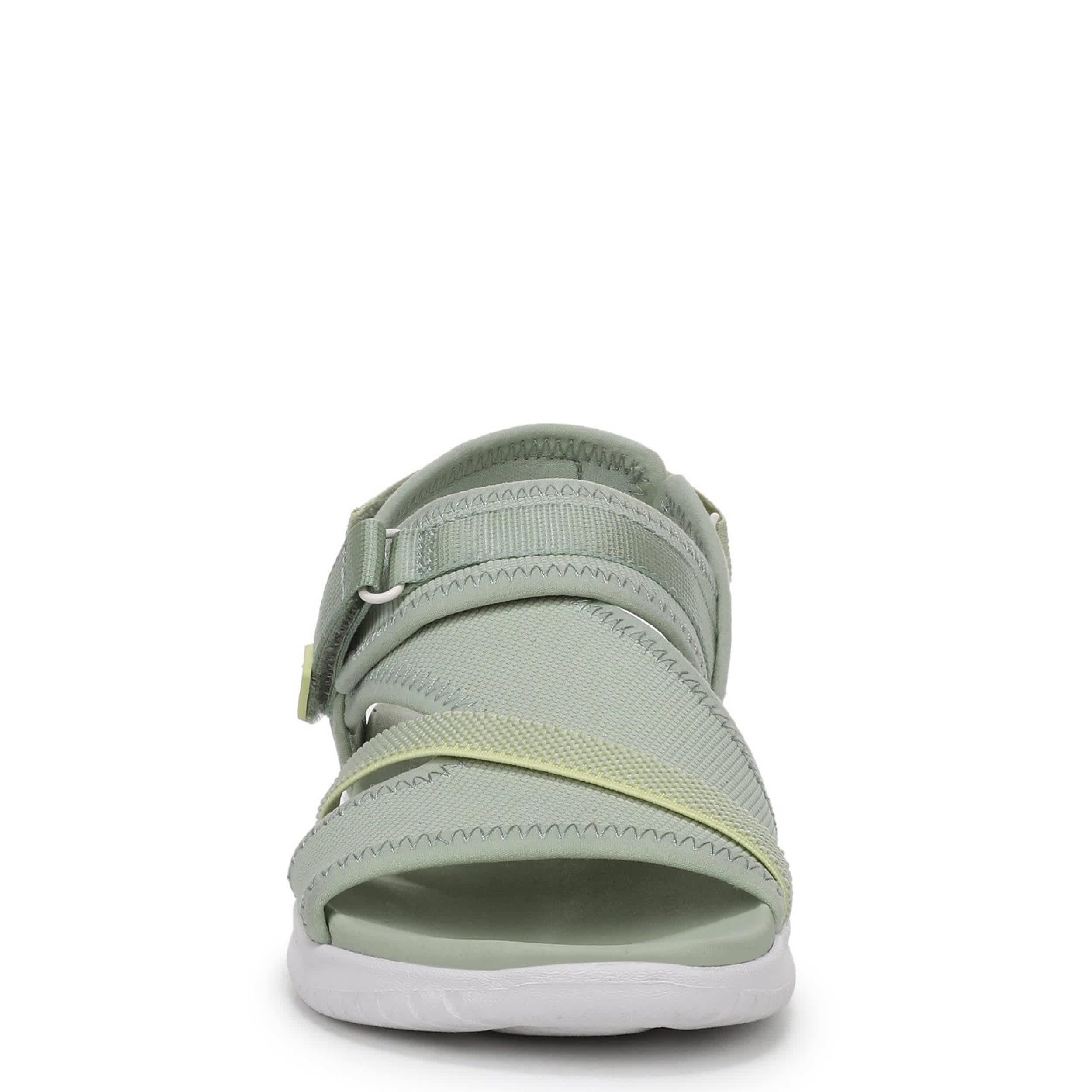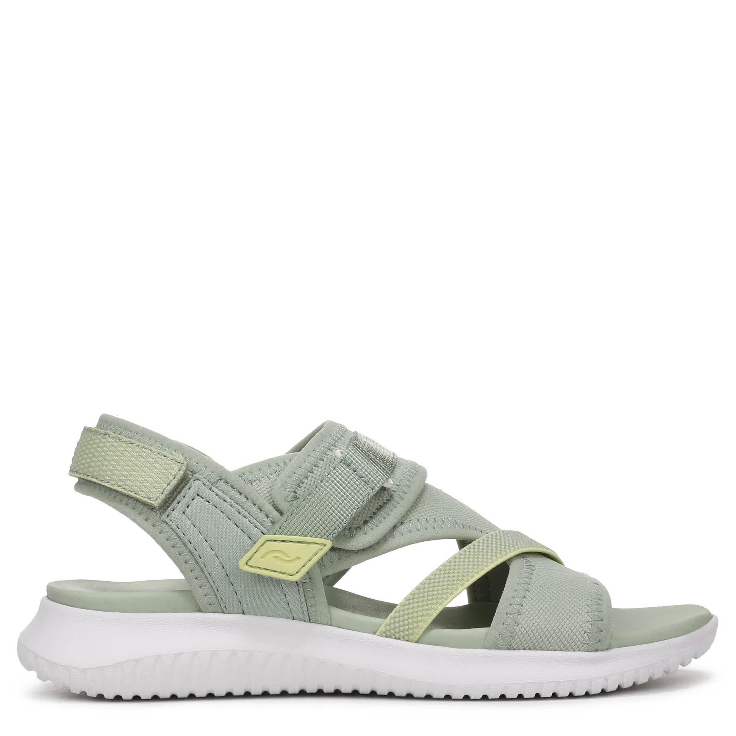 Happy and free in the Ryka Joy Strappy flat sandal. Featuring a lighweight fabric upper with webbing overlays for a secure fit, this easy to maintain sandal has hook-and-loop straps at the instep and back. The soft cushioning feels amazing, while the durable outsole adds textured traction.