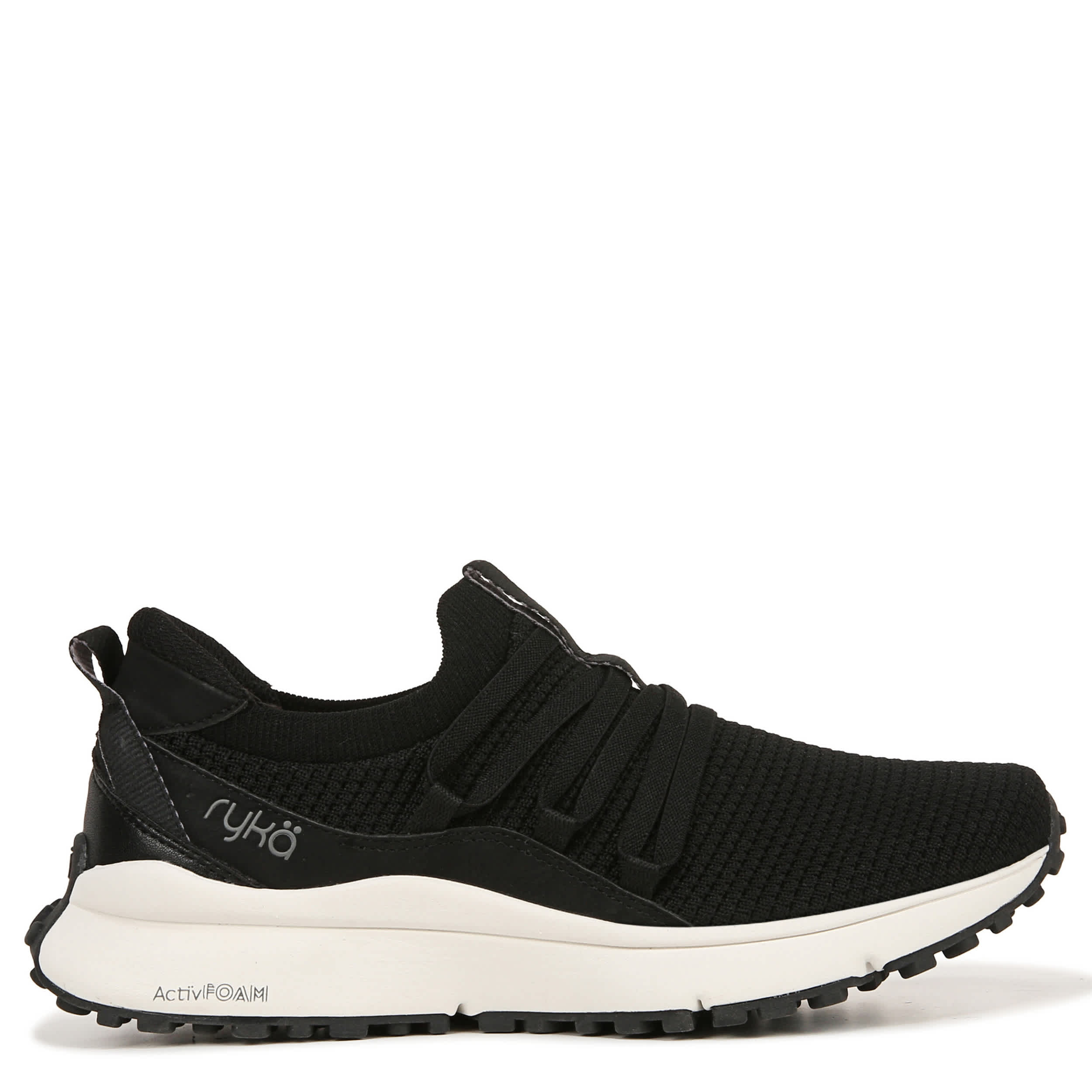 Begin in style with the Jumpstart Lace women's slip-on sneaker from Ryka. Featuring a stretch engineered knit upper featuring a comfy padded heel, this stretch gore laced shoe also has dual pull tabs for easy entry. The anatomical insole includes heel & arch support while the compression-molded outsole offers durability.