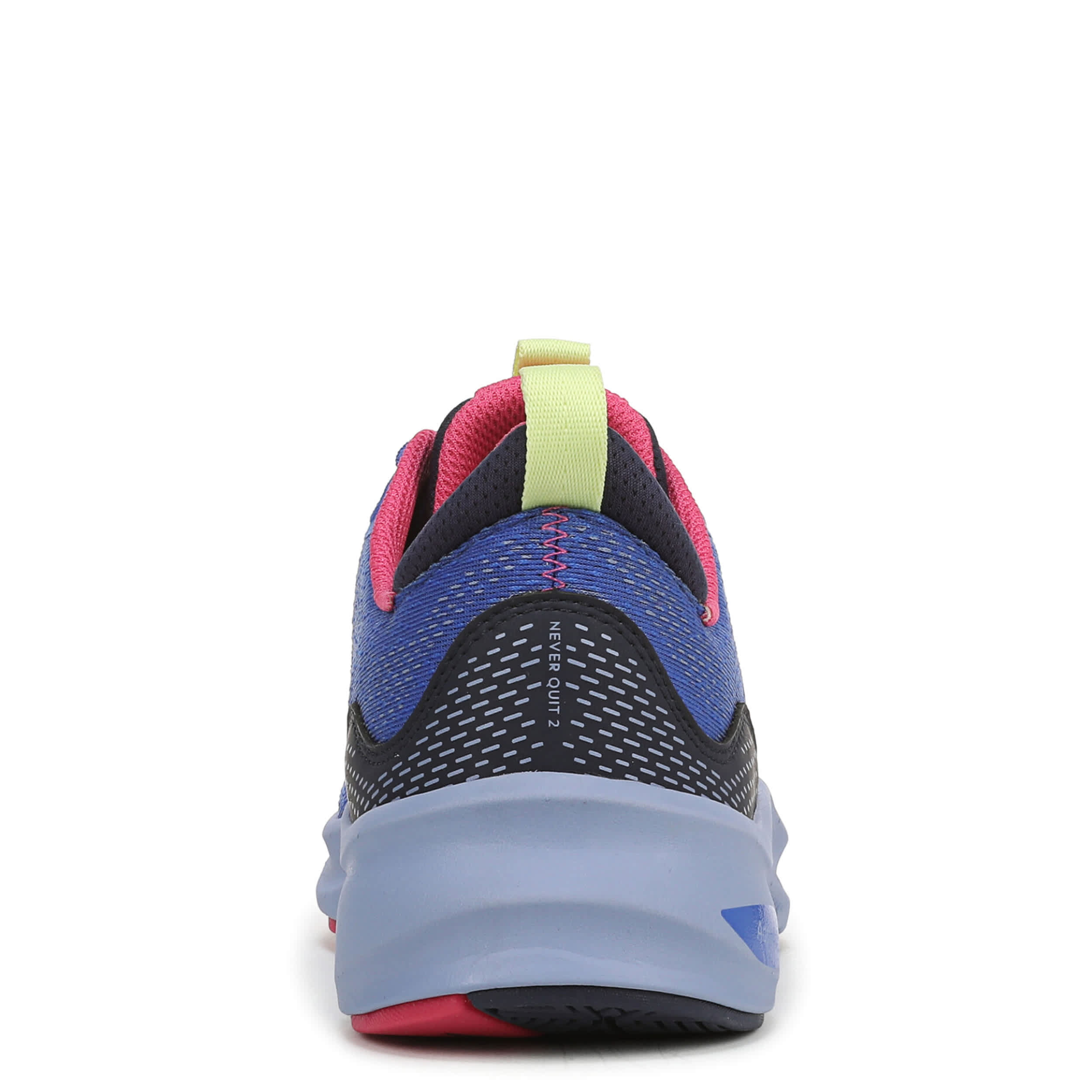 High-impact workouts, like cross training, are perfect for the Never Quit 2 women's sneaker from Ryka. With a breathable mesh & synthetic upper featuring a padded tongue & heel collar for extra comfort, this textured trainer secures the fit with a lock eyelet design. An anatomical insole offers extra arch & heel support, while the durable outsole uses flex grooves and Pivot Point to smooth out those turns.