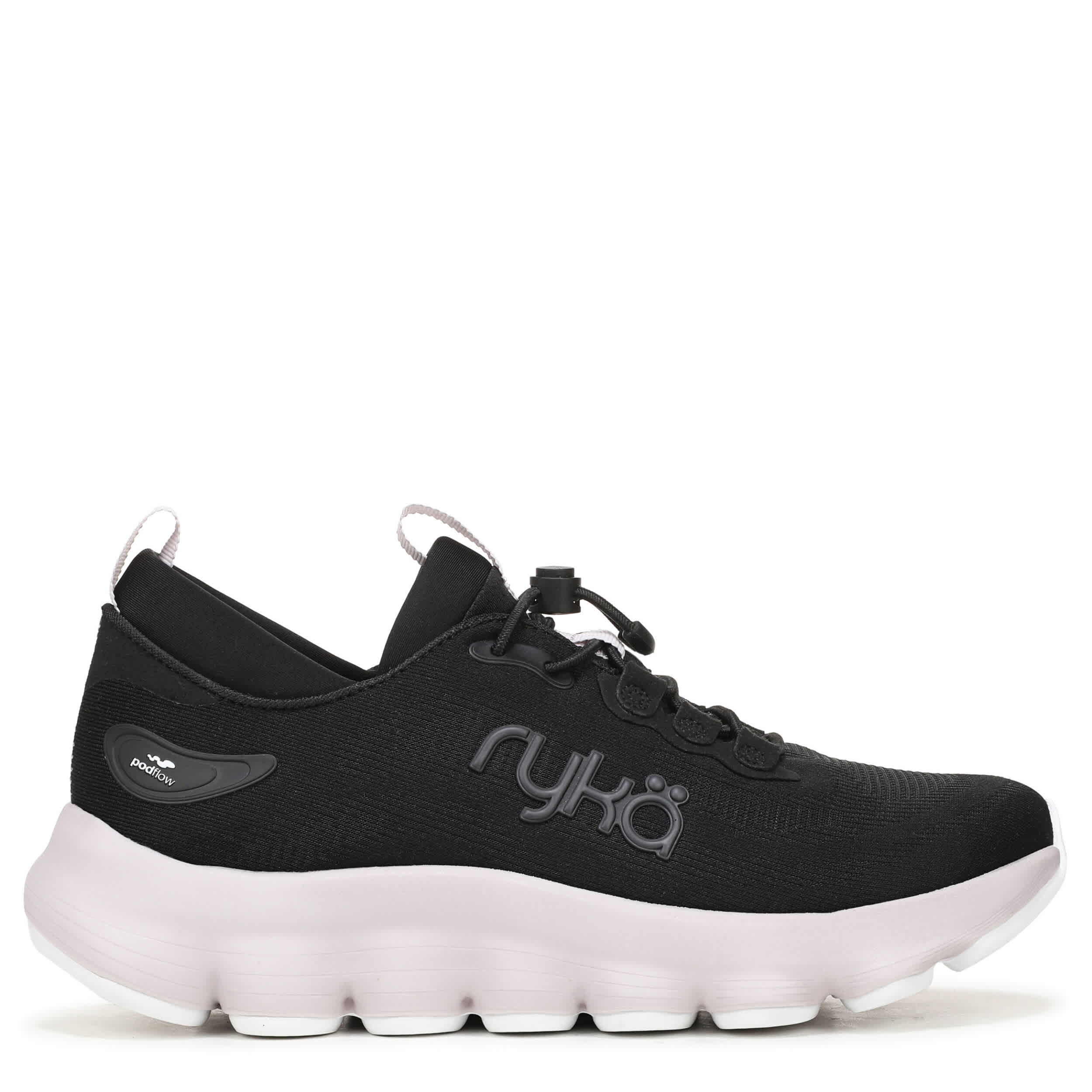 Innovation and comfort in the Ryka Podflow EZ walking shoe. Made with a breathable mesh fabric upper with a comfy padded collar, this sneaker has stretch bungee laces and anatomical insole with extra arch and heel support. The ACTIVenergyâ„¢ translucent EVA foam midsole cushions your foot with targeted pod support for natural motion, while the compression-molded outsole keeps you steady.