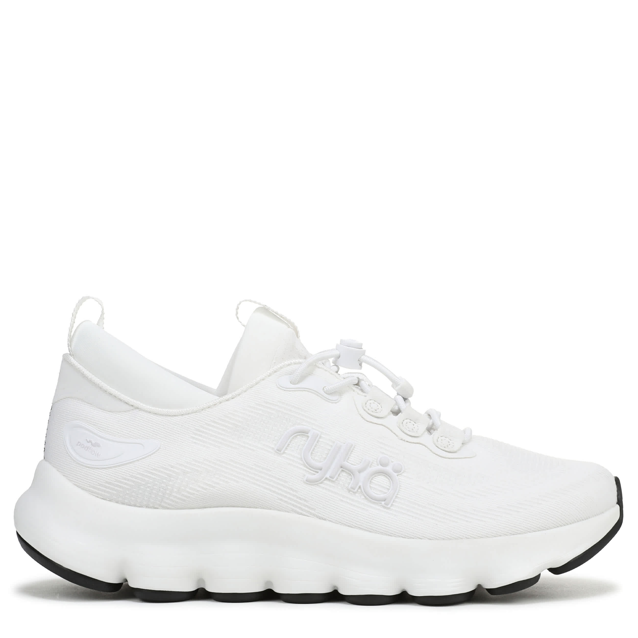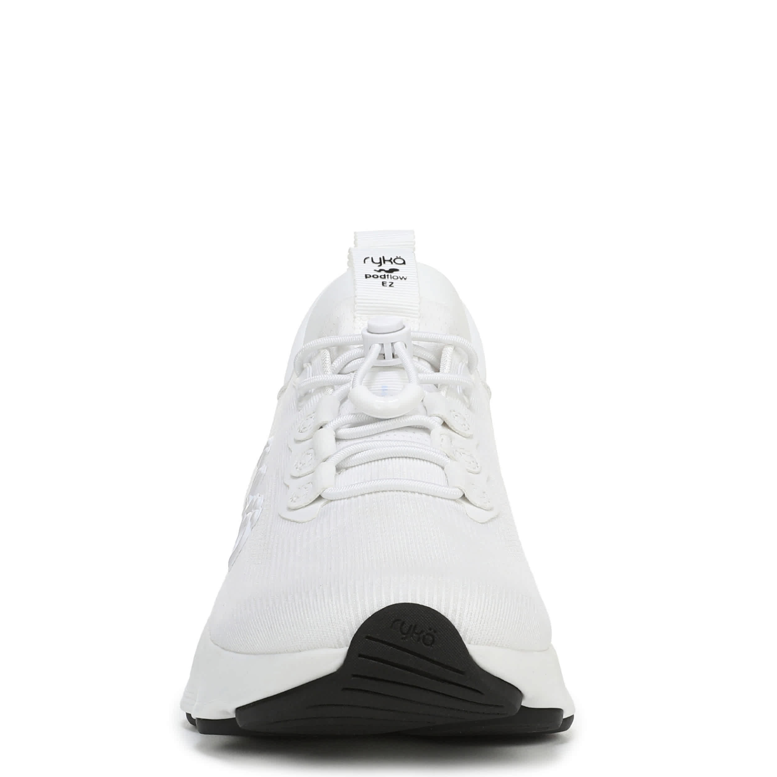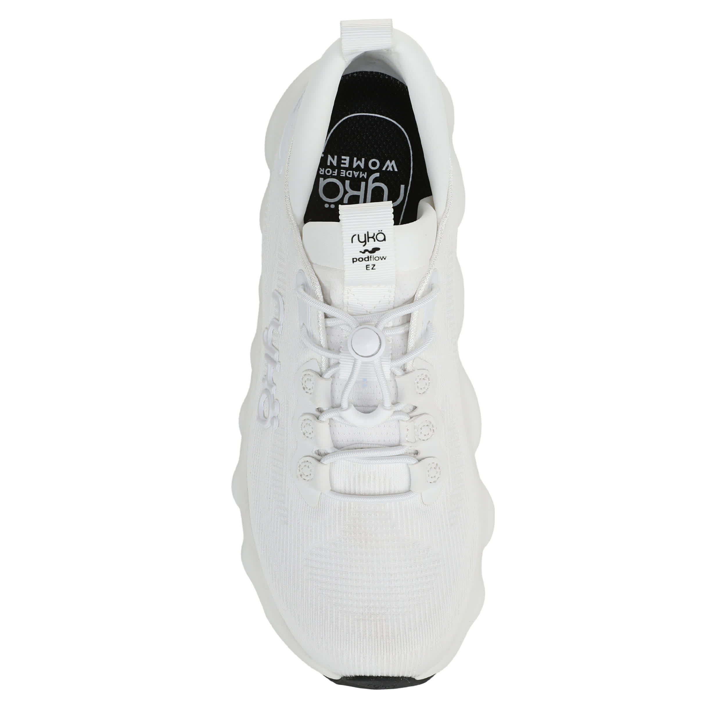Innovation and comfort in the Ryka Podflow EZ walking shoe. Made with a breathable mesh fabric upper with a comfy padded collar, this sneaker has stretch bungee laces and anatomical insole with extra arch and heel support. The ACTIVenergyâ„¢ translucent EVA foam midsole cushions your foot with targeted pod support for natural motion, while the compression-molded outsole keeps you steady.