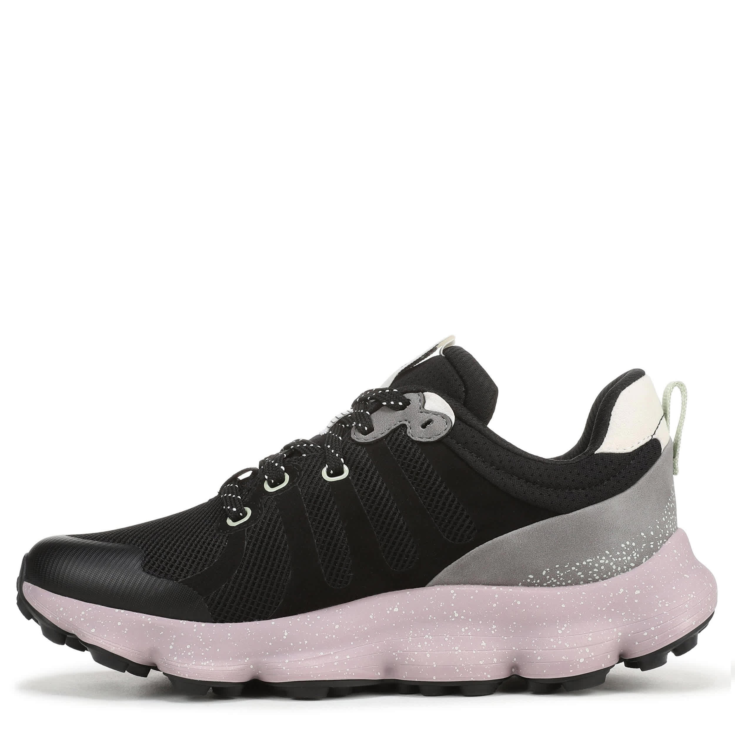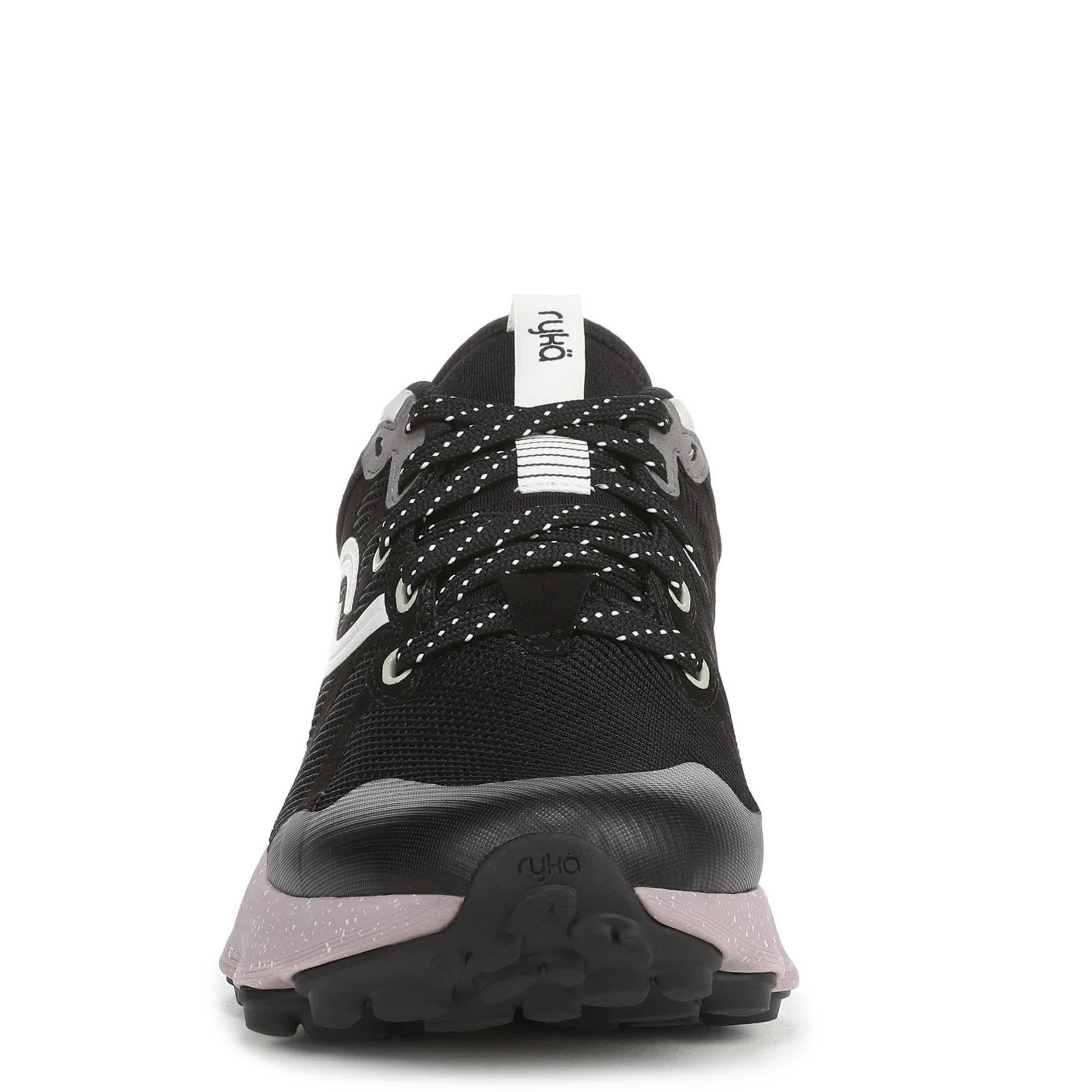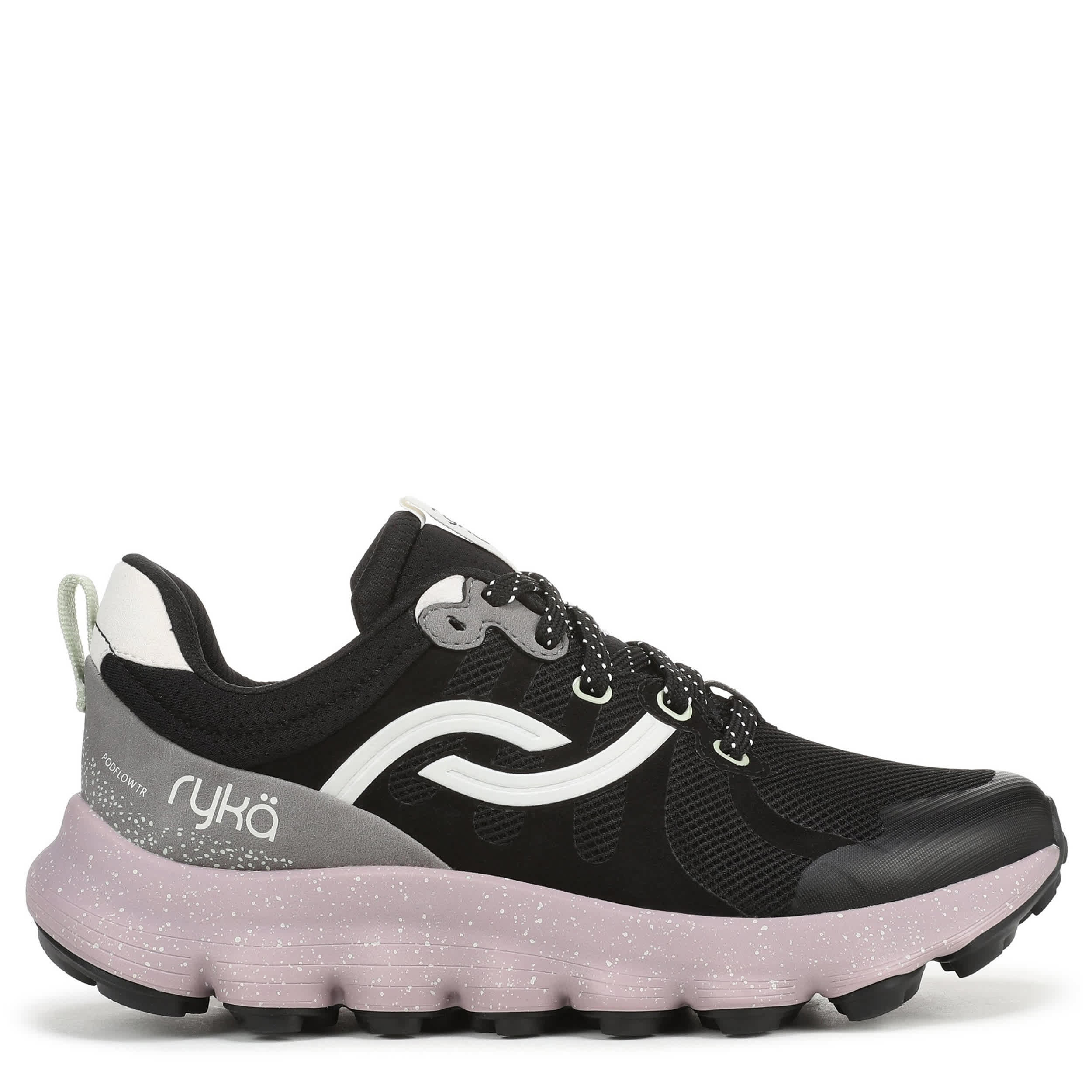 Smooth strides on all terrain in the Ryka Podflow TR trail shoe. Made with an easy-clean mesh upper featuring no sew overlays including a toe cap, this sneaker has a padded collar and anatomical insole with extra arch and heel support. The ACTIVenergyâ„¢ EVA foam midsole cushions your foot with targeted pod support for natural motion, while the compression-molded outsole keeps you steady.