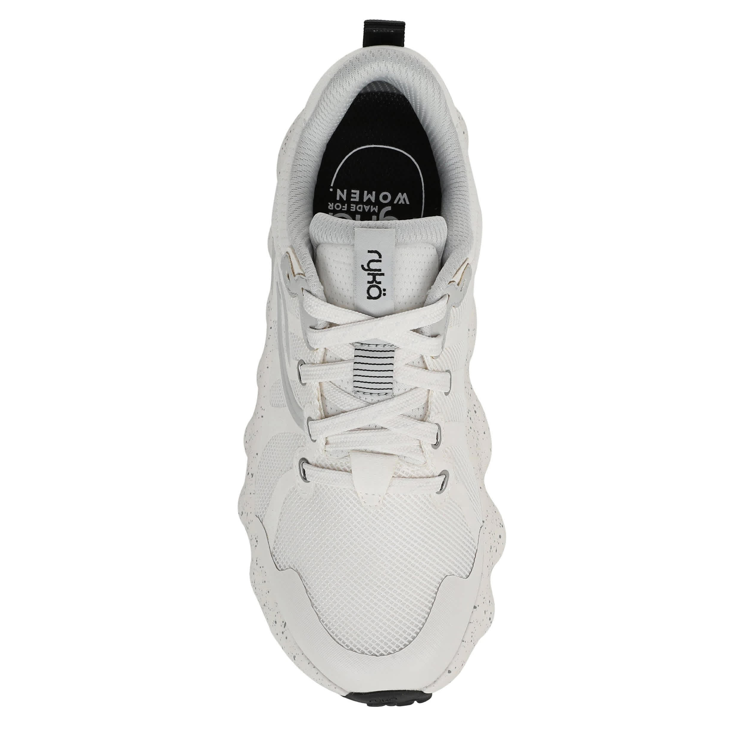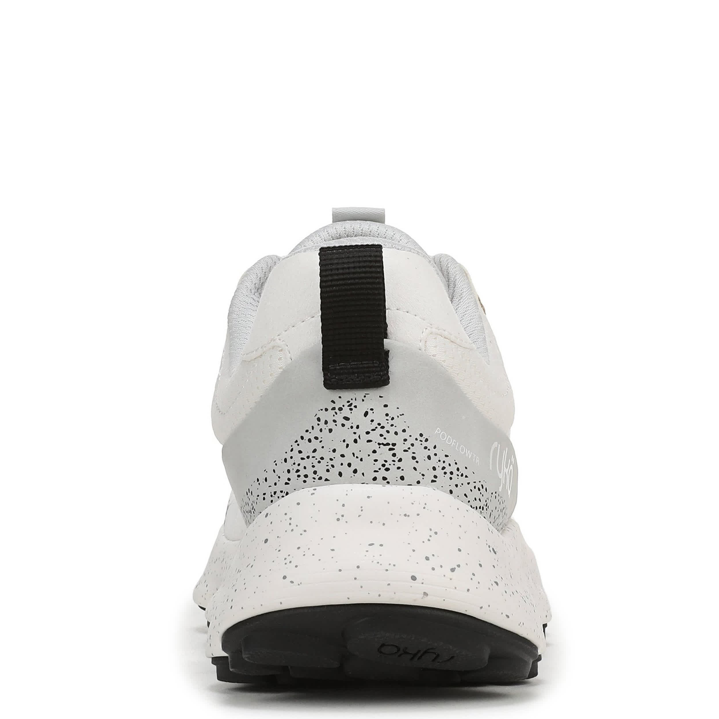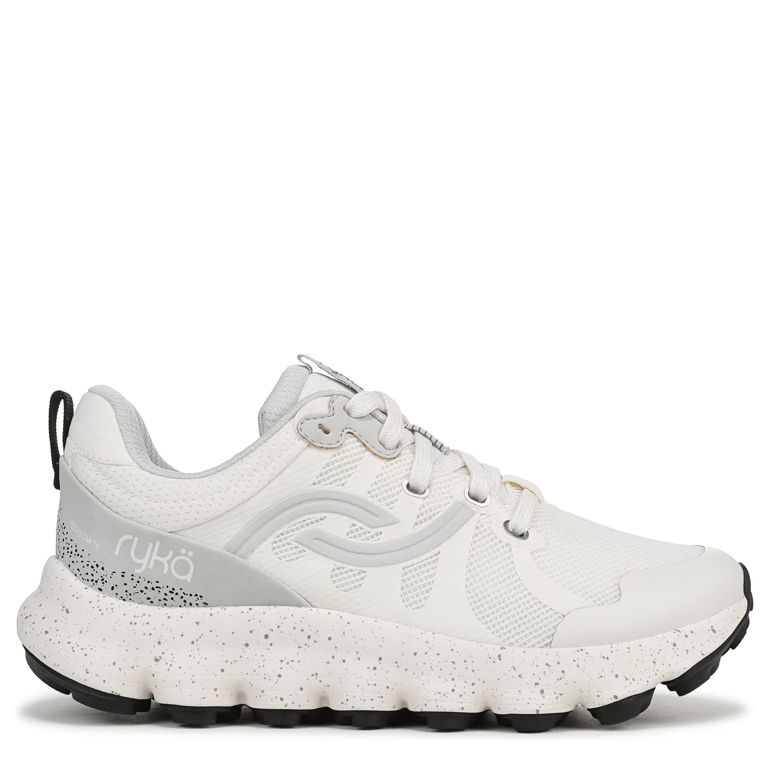 Smooth strides on all terrain in the Ryka Podflow TR trail shoe. Made with an easy-clean mesh upper featuring no sew overlays including a toe cap, this sneaker has a padded collar and anatomical insole with extra arch and heel support. The ACTIVenergyâ„¢ EVA foam midsole cushions your foot with targeted pod support for natural motion, while the compression-molded outsole keeps you steady.