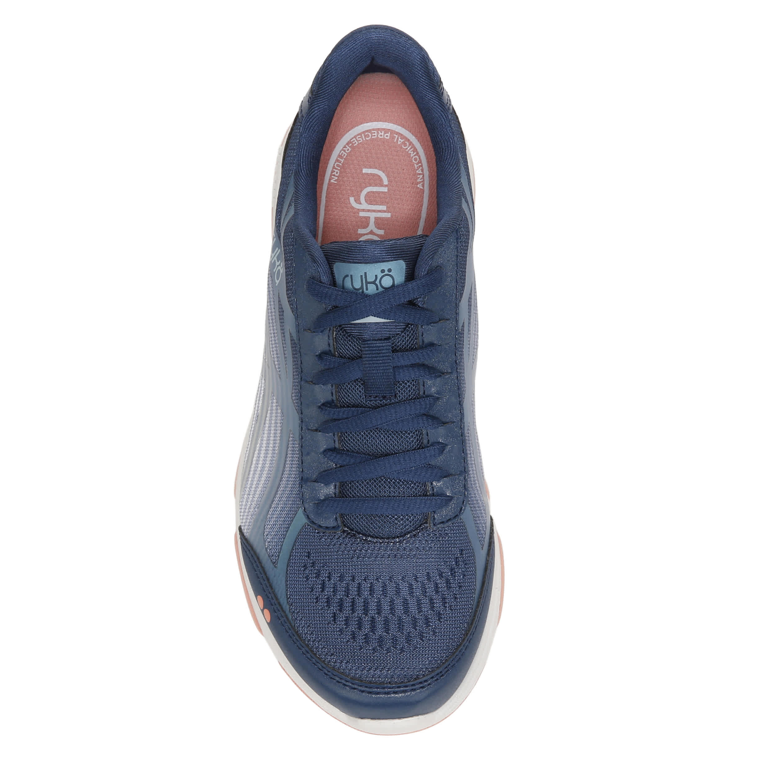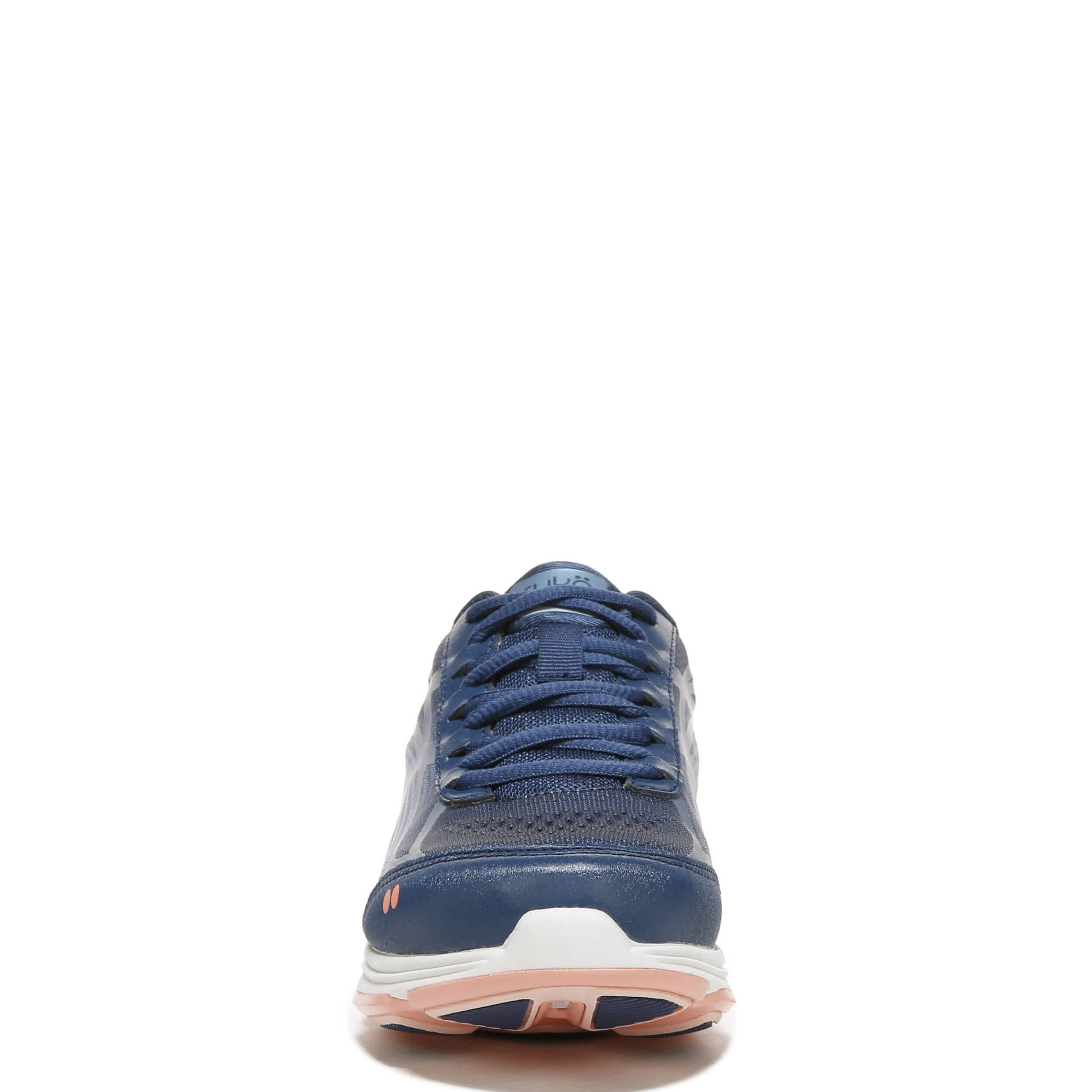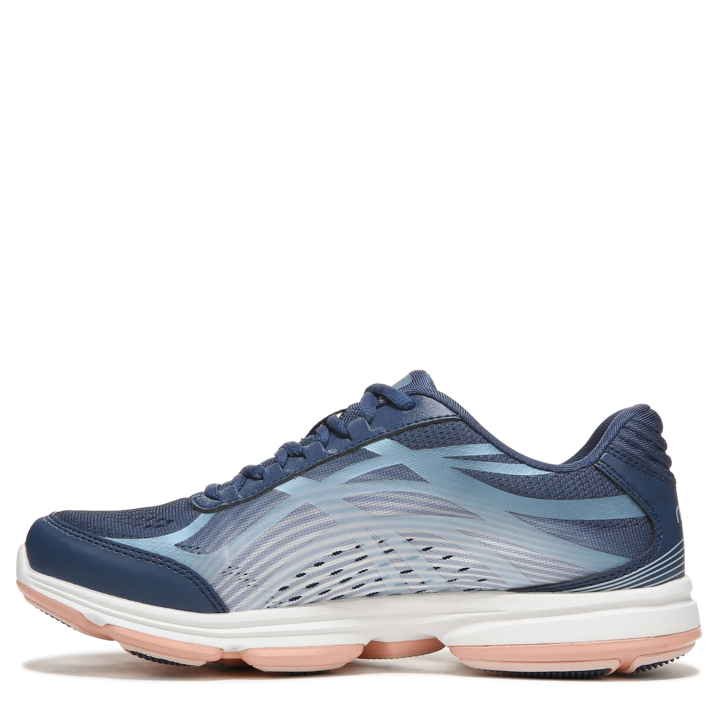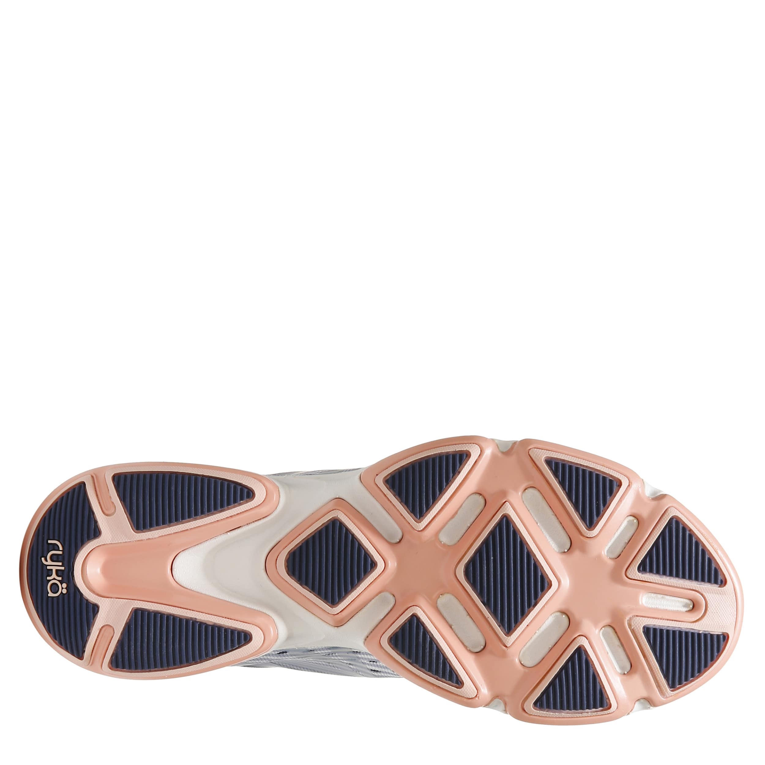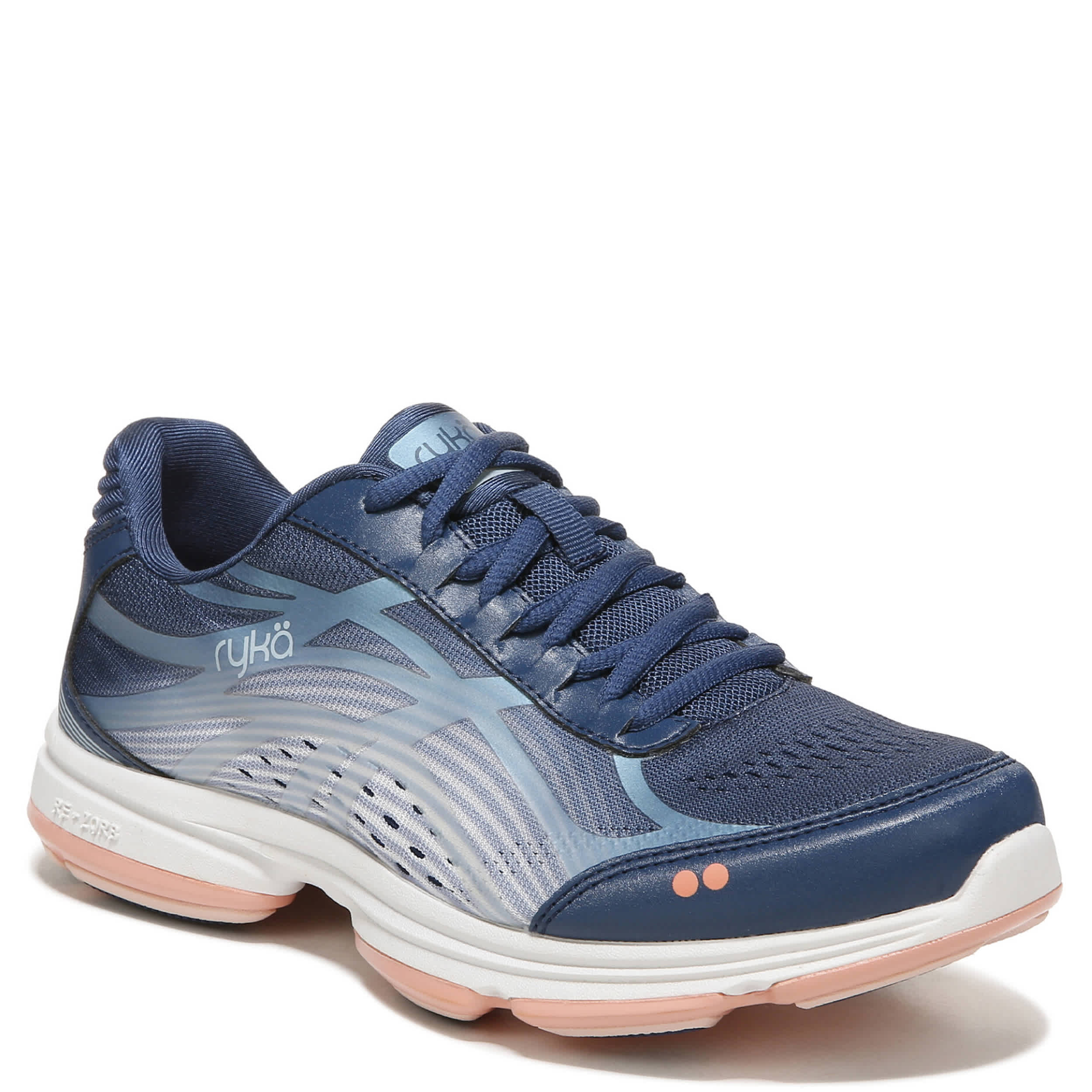 Walk for fitness in the Ryka Devotion Plus 3 women's walking shoe. Featuring a breathable mesh upper with iridescent overlays, this lace-up sneaker also has a Lycra-lined tongue & collar with built-in cushion. The RE-ZORB cushioning & EVA midsole offer arch support and more, making your stride as smooth as possible on the durable eight-piece rubber outsole.