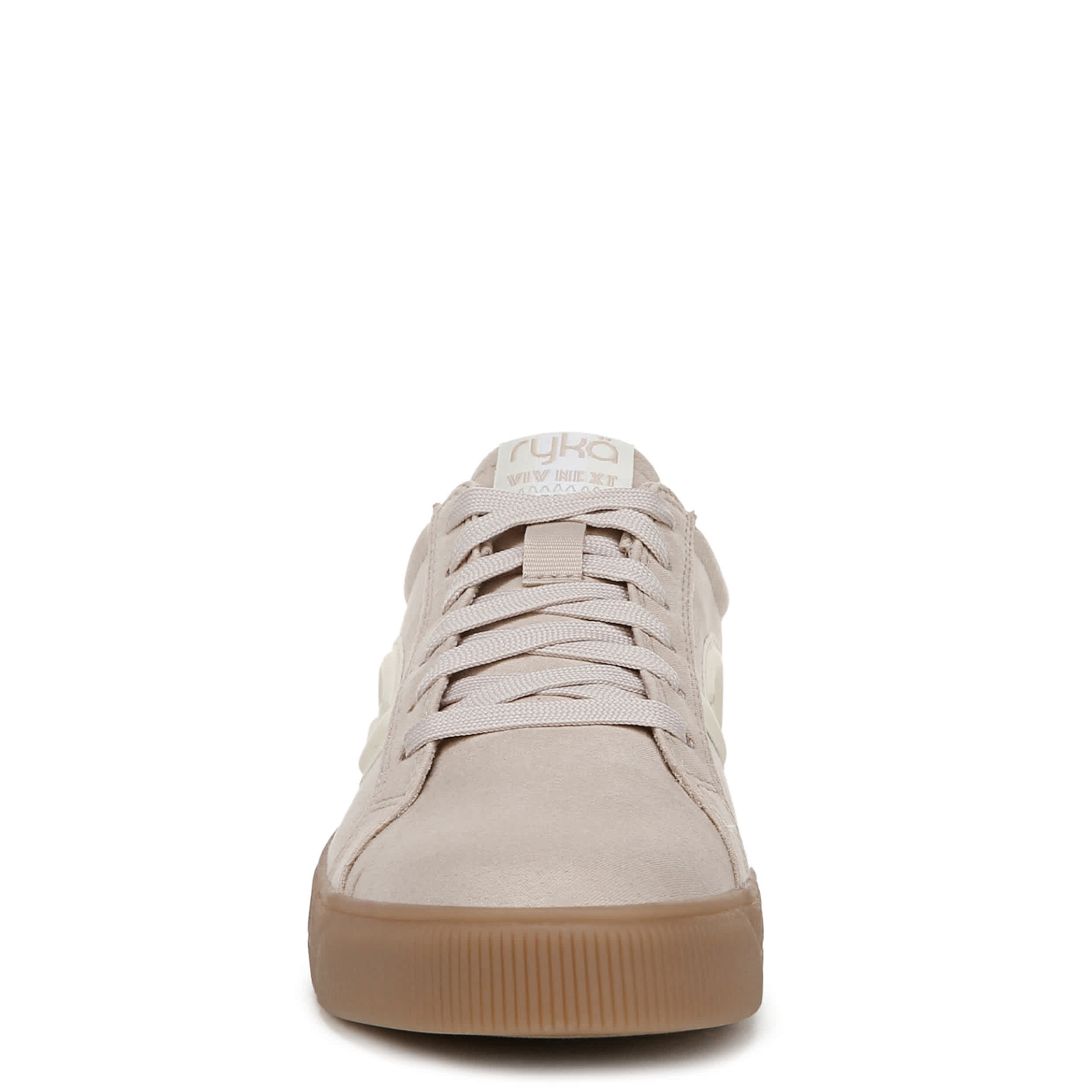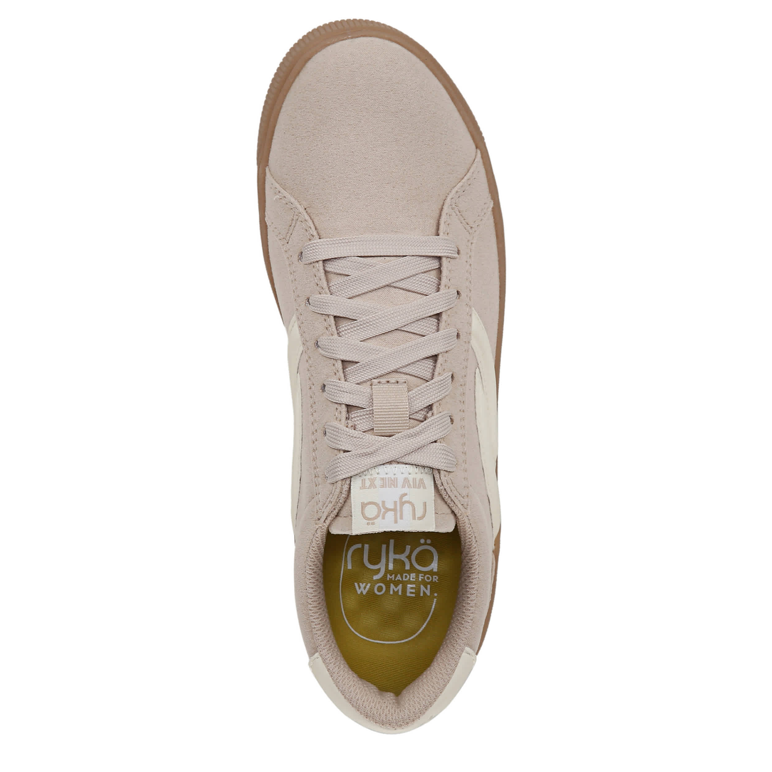 Upcoming fashion hit, the Viv Next sneaker from Ryka. With a retro-inspired fabric or faux leather upper featuring coordinating laces, this shoe is made to fit your everyday styling. QMassage bumps work with the arch & heel support for extra comfort, while the molded cupsole provides desired durability.