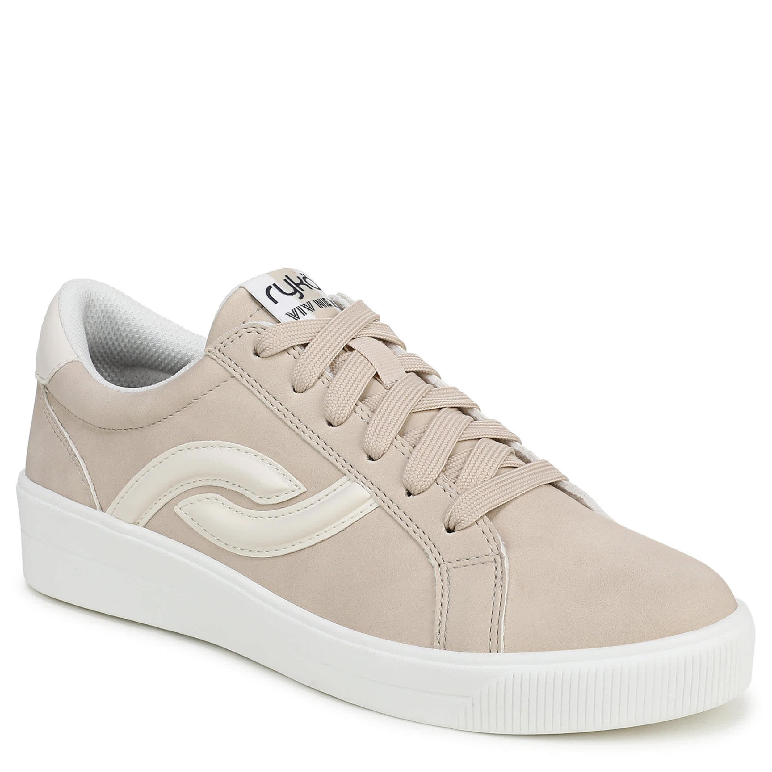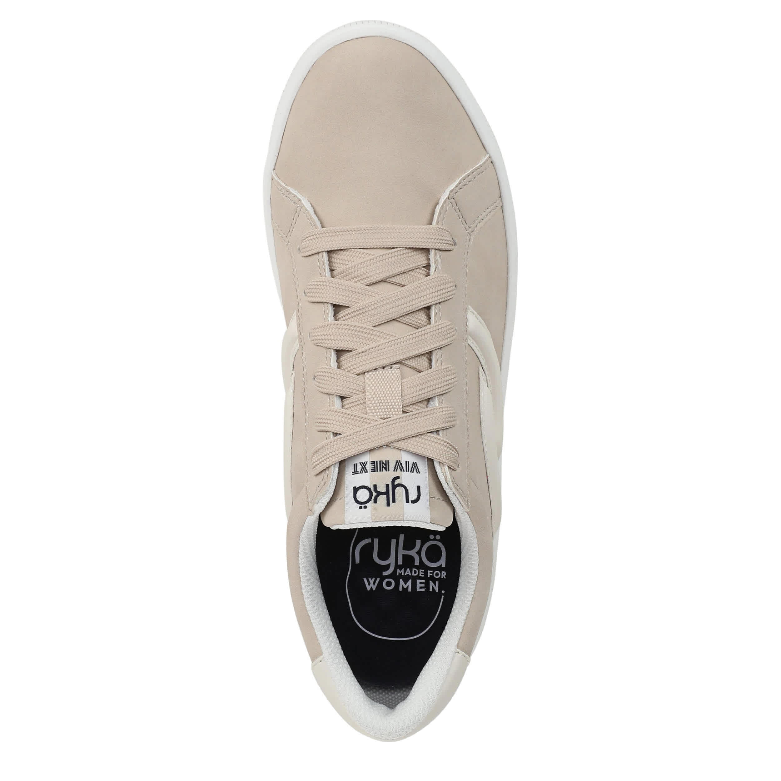 Upcoming fashion hit, the Viv Next sneaker from Ryka. With a retro-inspired fabric or faux leather upper featuring coordinating laces, this shoe is made to fit your everyday styling. QMassage bumps work with the arch & heel support for extra comfort, while the molded cupsole provides desired durability.