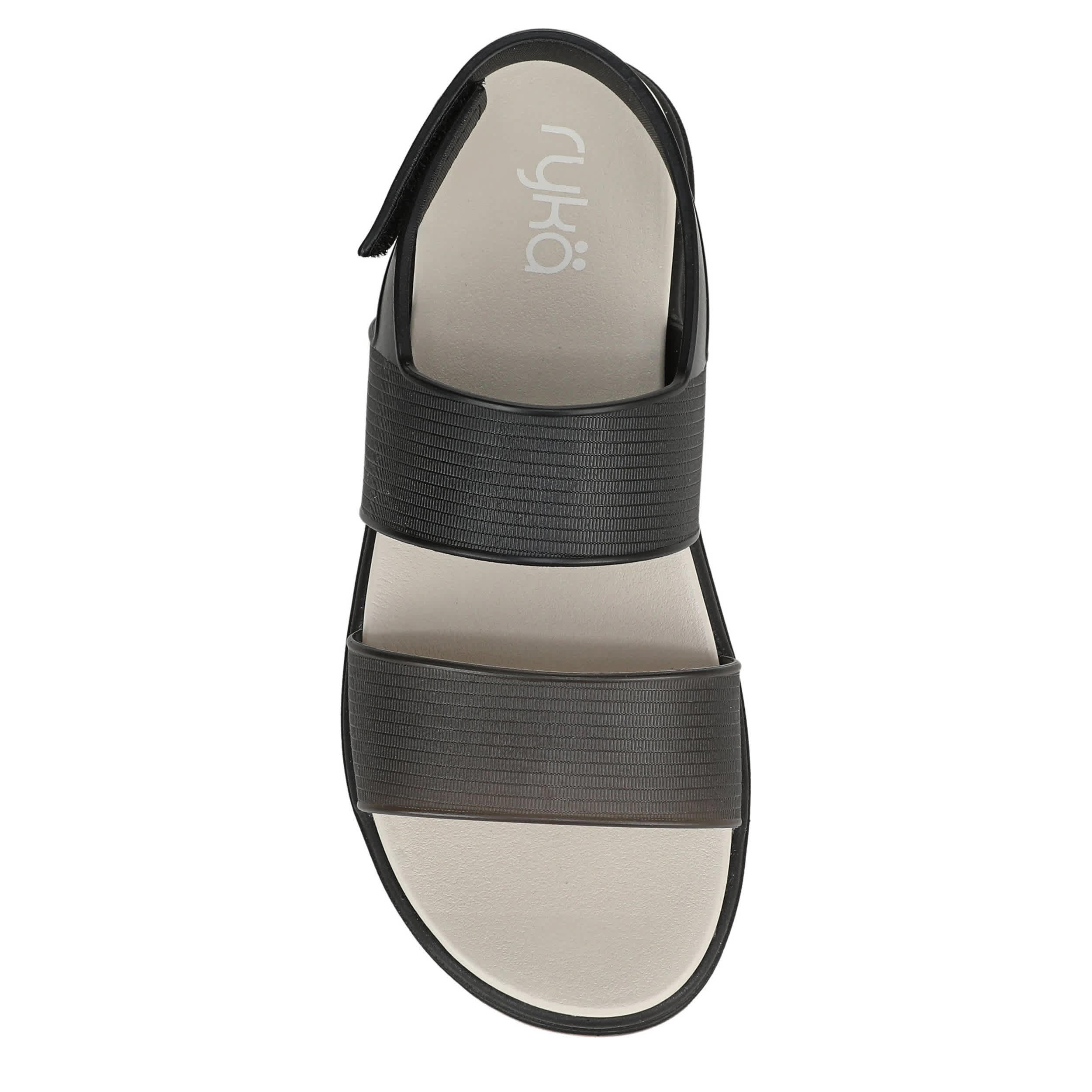 Make a splash in the Viv sandal from Ryka. With a sea and chlorinated, textured PVC upper featuring an adjustable hook-and-loop strap, this slingback sandal is water friendly and ready for summer. The molded footbed & dual density outsole cushion your steps, while there's less pressure on the balls of your feet and heel.