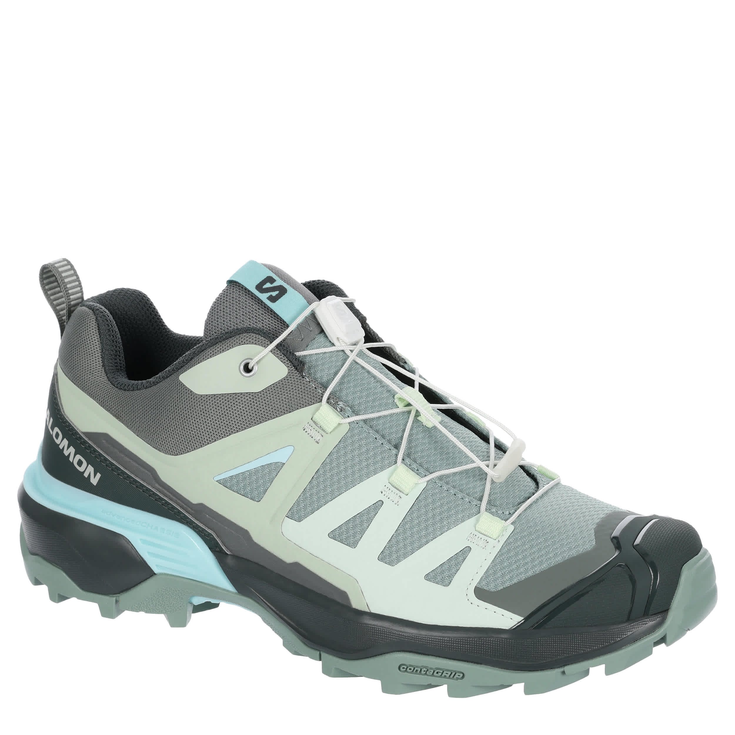 Legacy stability and more to take on the great outdoors in the Salomon X Ultra 360 hiking shoe. With a faux leather upper featuring 50% recycled materials and a protective mudguard, this Quicklace® hiker toggles close to secure your fit. The Advanced Chassis™ brings lateral stability while the All Terrain Contagrip® outsole covers easy, mixed and wet terrains.