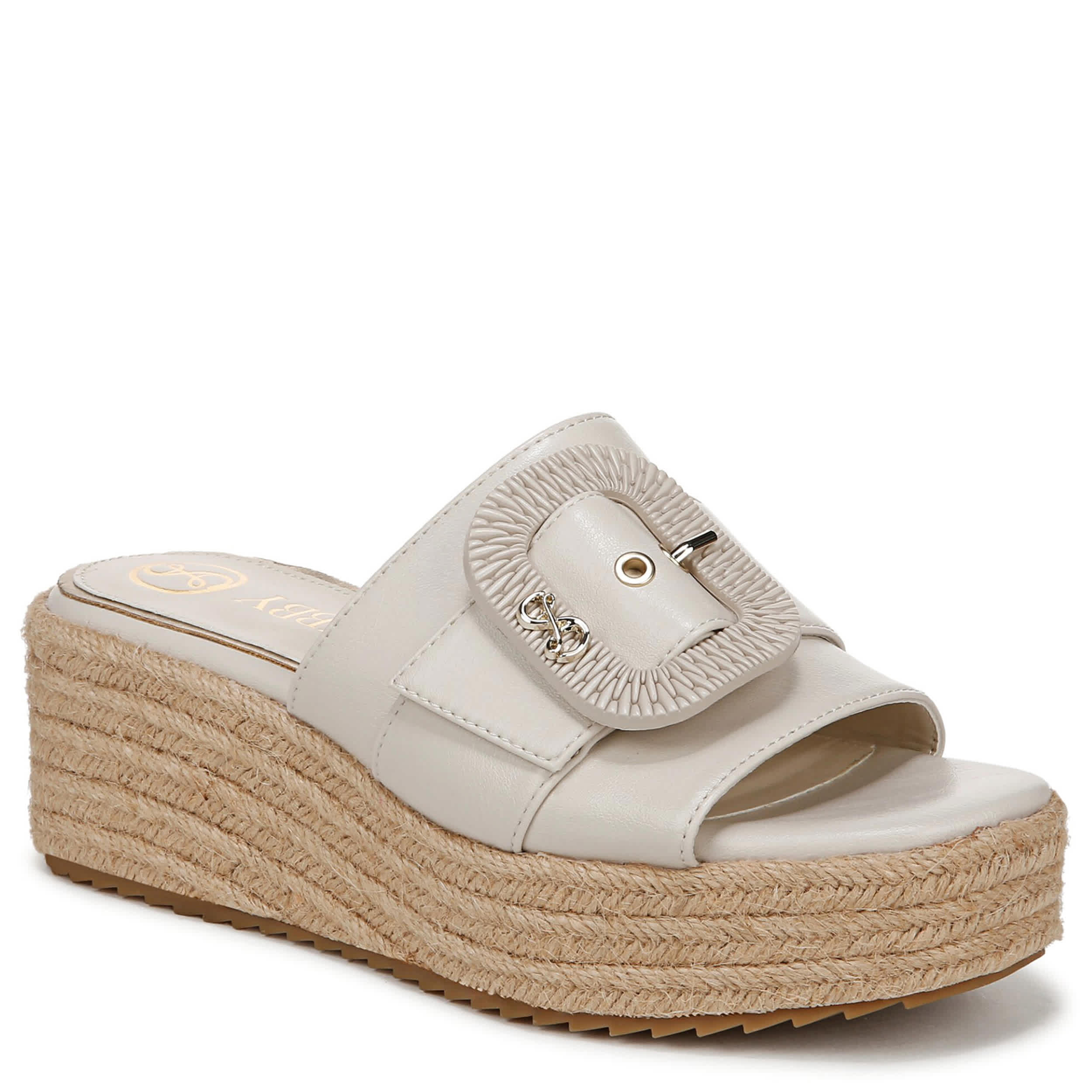 Show off your amazing look with the Crysta women's wedge sandal from Sam & Libby. Featuring a breezy raffia upper with a large buckled strap for chic style, this shoe arrives at just the right time. The cork-inspired footbed cushions, while the wedge heel and traction outsole make sure you're stably lifted.