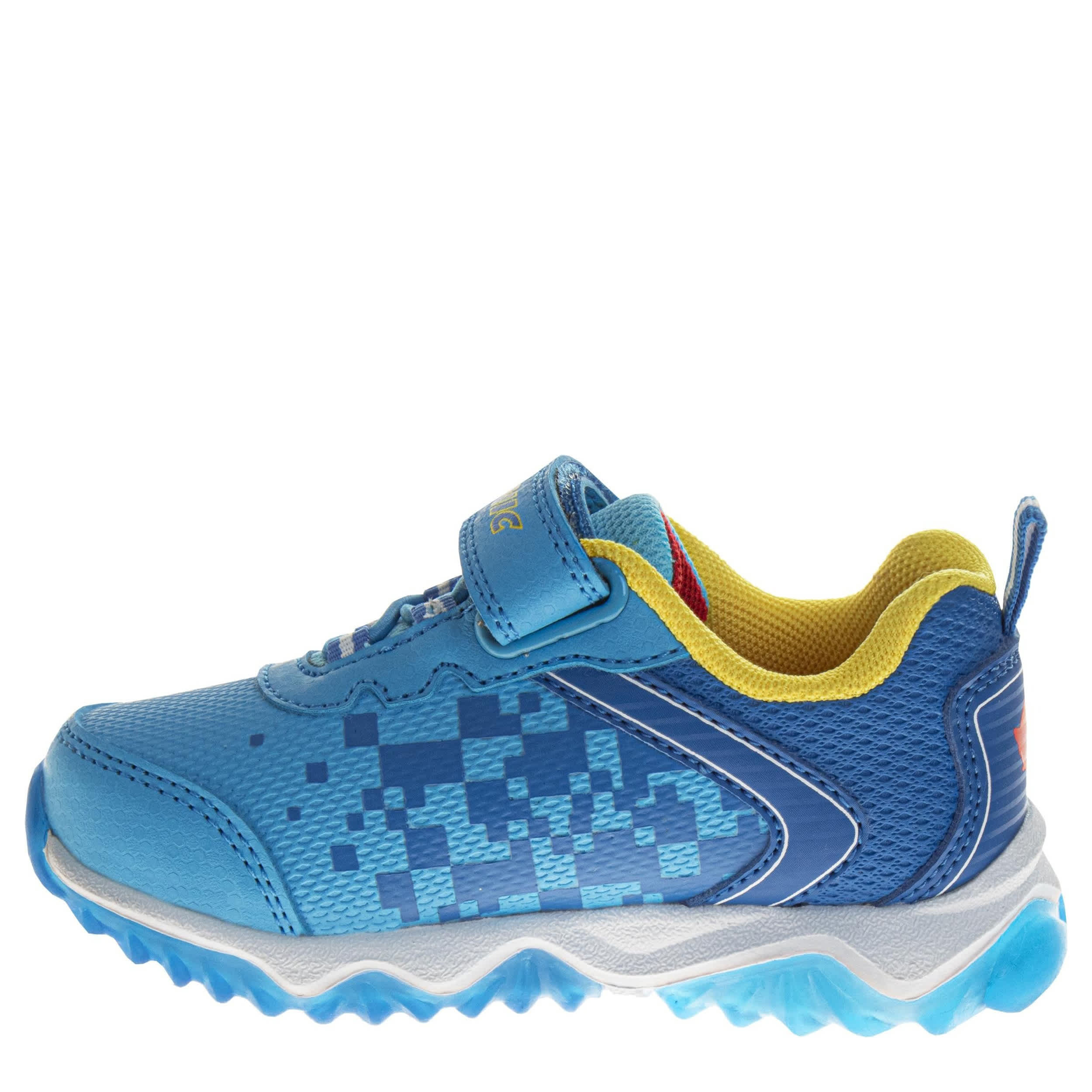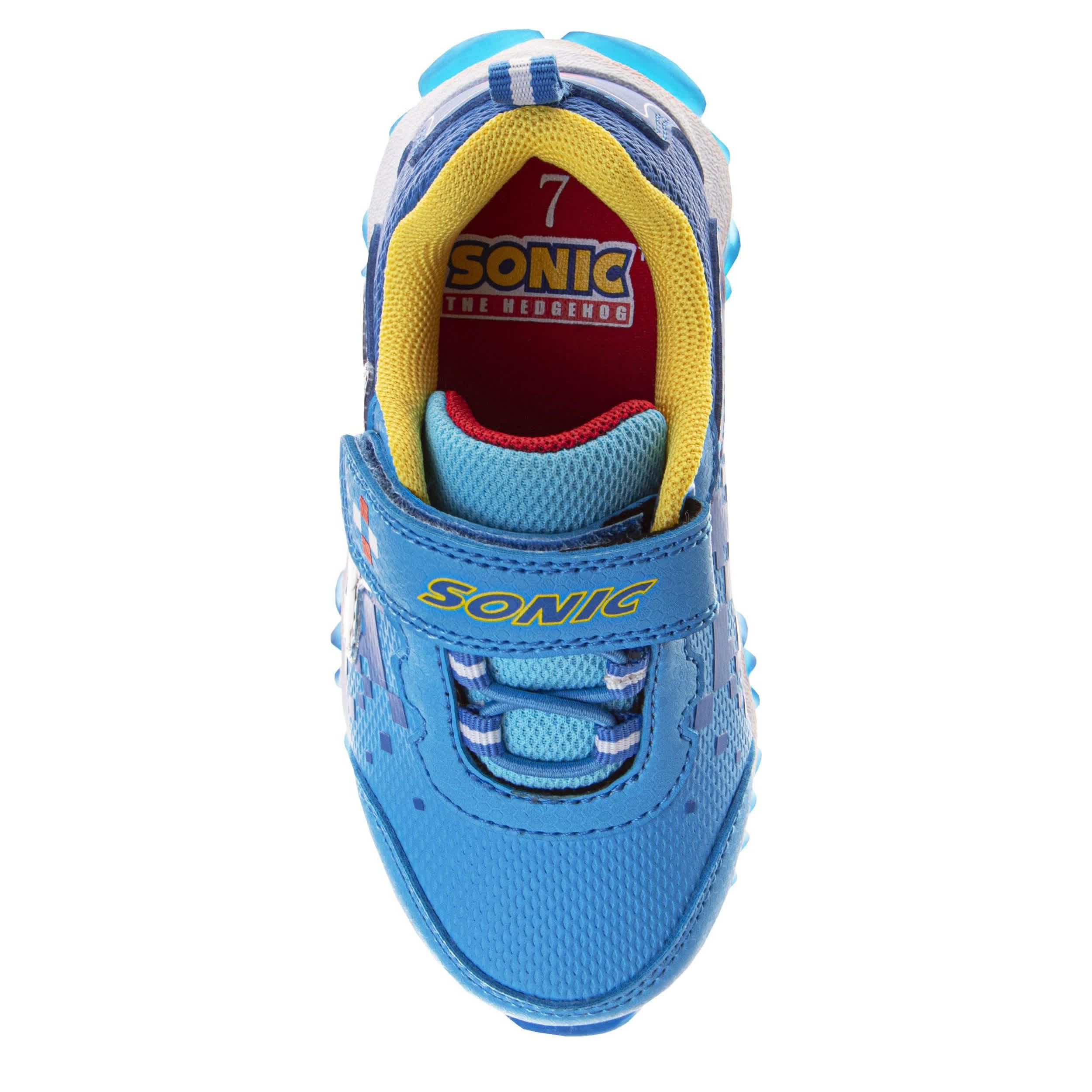 Join Sonic the Hedgehog in fast pursuit with the Sega infant boys' sneaker. Featuring elastic laces with a secure ankle strap, this sneaker also has a large graphic and an easy-on heel pull tab. The insole cushions his foot, while the traction outsole provides a durable grip.