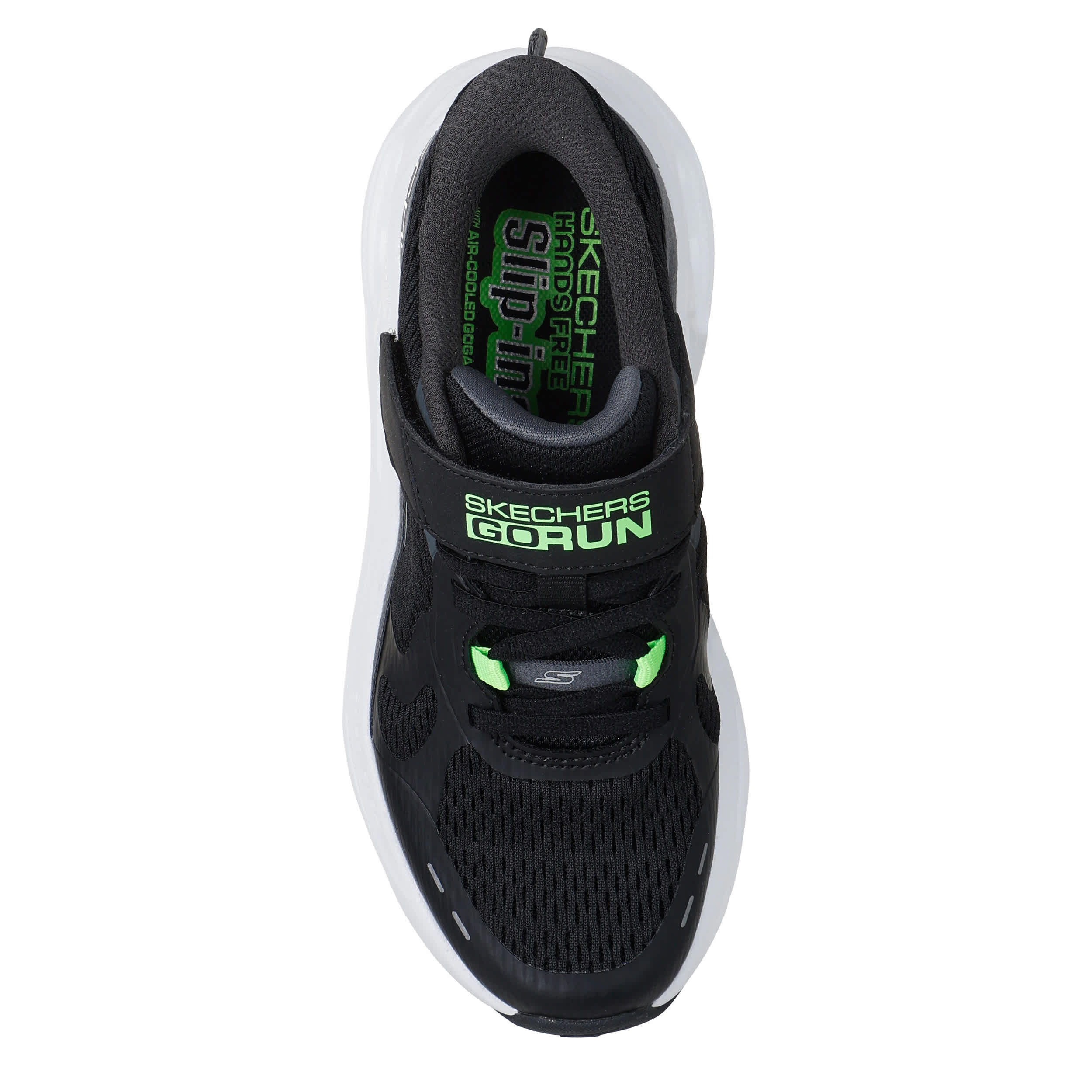 He can safely play all day in the Skechers Slip-ins: Max Cushioning Glide-Step boys' sneaker from Skechers. Featuring an engineered mesh & synthetic upper with a secure exclusive Heel Pillow™ for a secure fit, this Skechers Hands Free Slip-in® provides natural momentum courtesy of the Glide-Step® geometric midsole. The Skechers Air-Cooled Goga Mat™ supports with Max Cushioning® technology, while outsole offers durability.