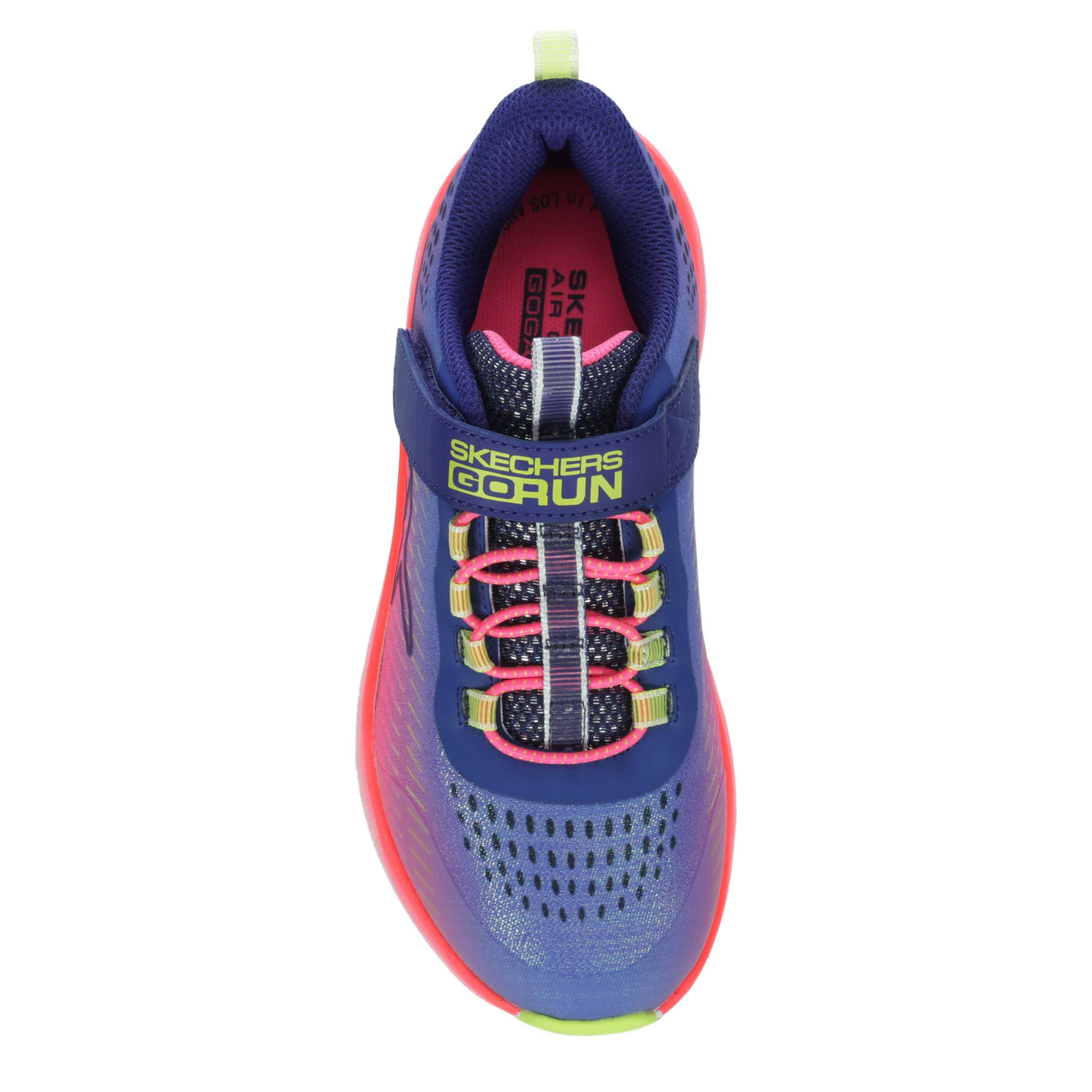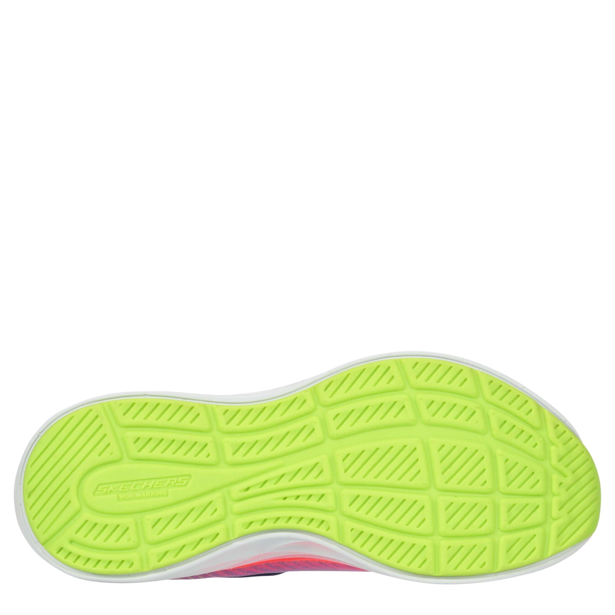 She'll hop, skip and play in the Skechers Go-Run Accelerate sneaker. With a mesh upper and dual pull tabs for easy entry, this sneaker has stretch laces to perfectly fit her little foot. The footbed comfort every step while the durable outsole keeps her grounded.