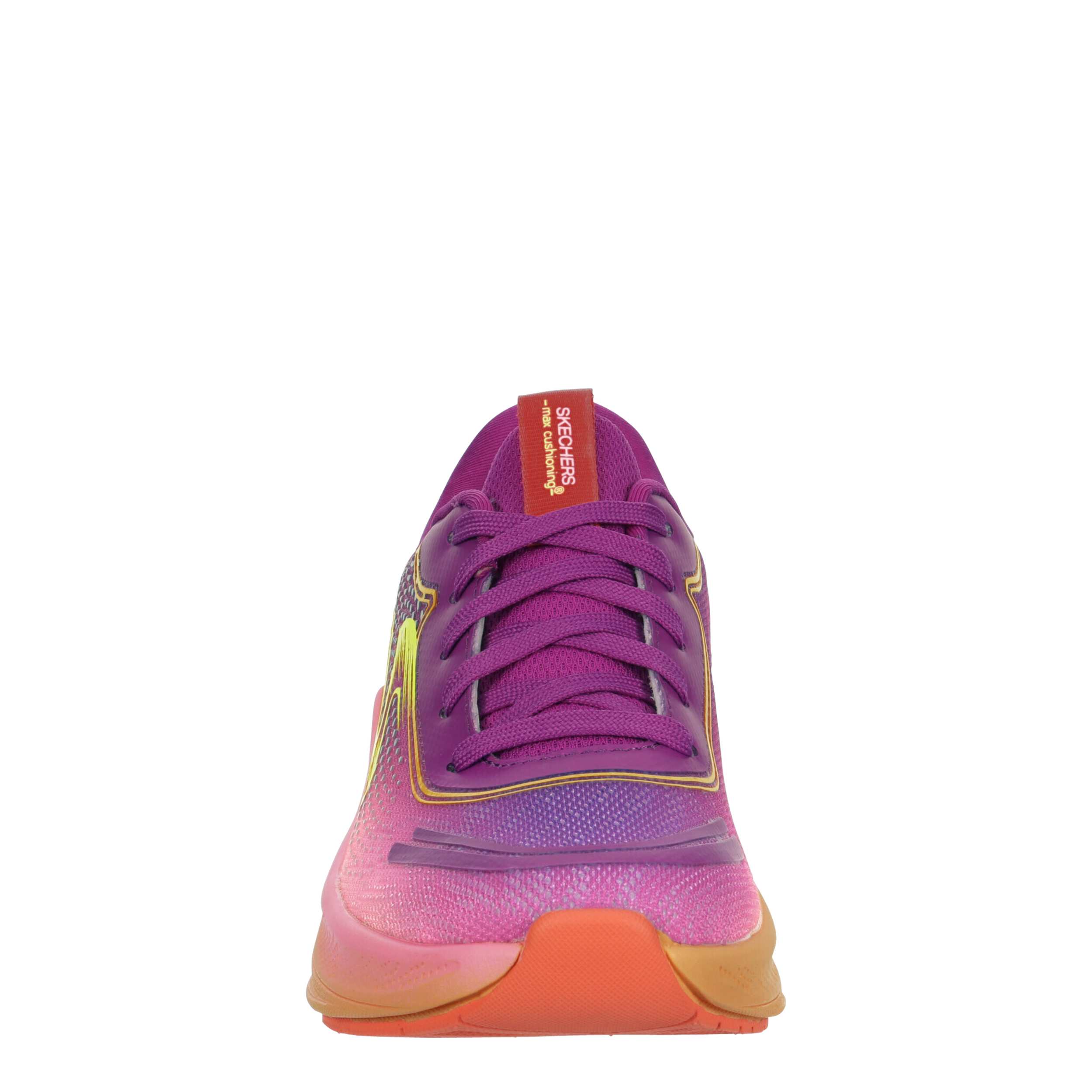 Don't let her fade in the Skechers Max Cushioning Ascendâ„¢ - Aura Speed sneaker from Skechers. Featuring an engineered mesh & synthetic upper, this machine washable shoe is sleek and comfy. The breathableSkechers Air-Cooled Goga Matâ„¢ provides high-rebound cushioning, while the outsole offers flexible traction.