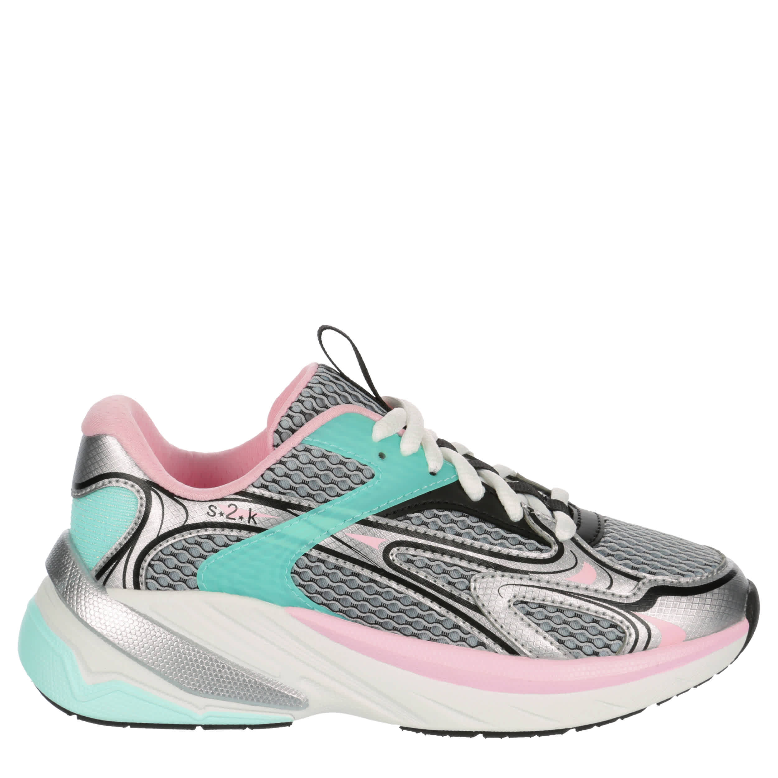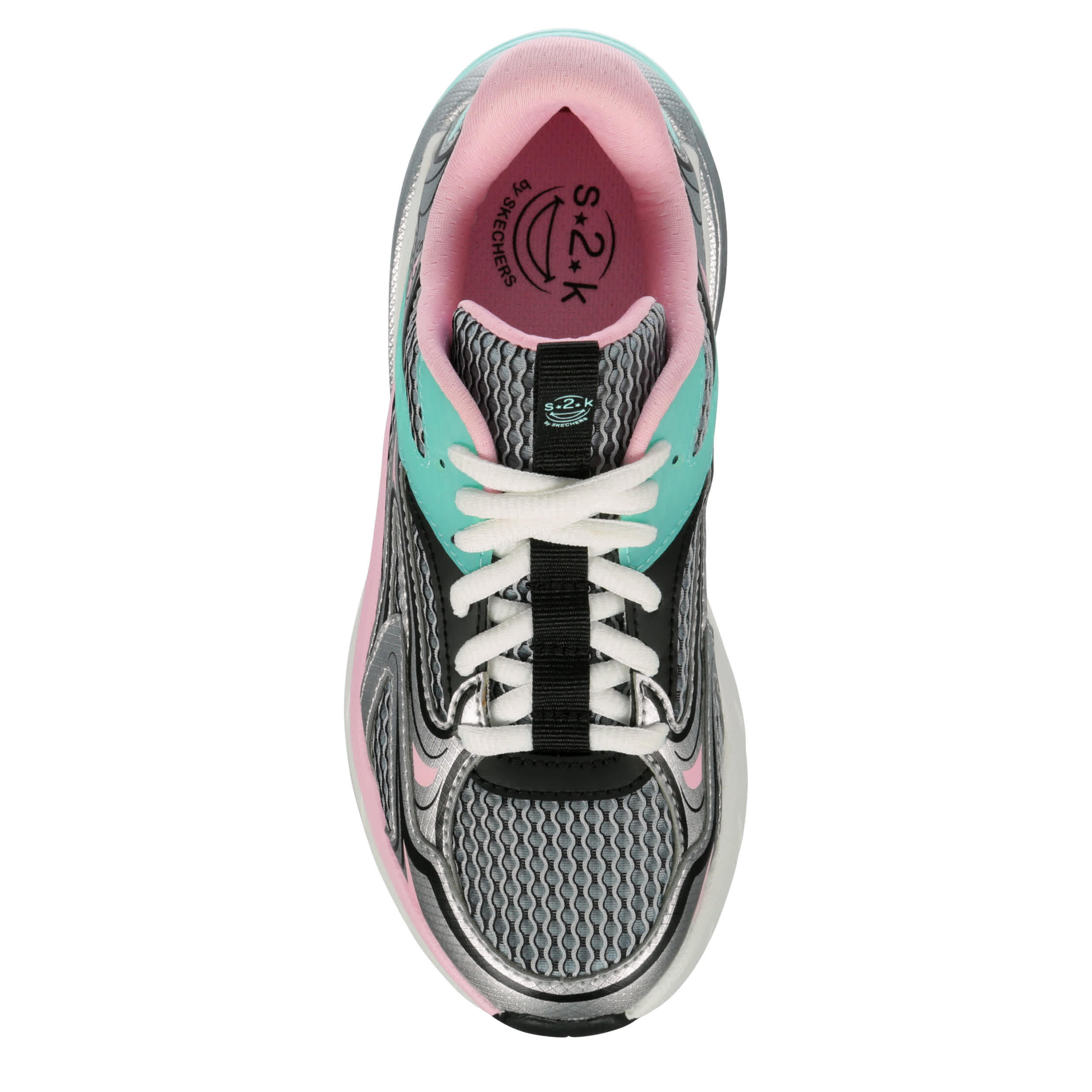 Put a retro spin on her sporty style with the Skechers S2K girls' sneaker. Featuring a mesh upper with synthetic overlay, this shoe's painted midsole has a sculpting detail. The cushy insole comforts her steps, while the outsole offers flexible traction.