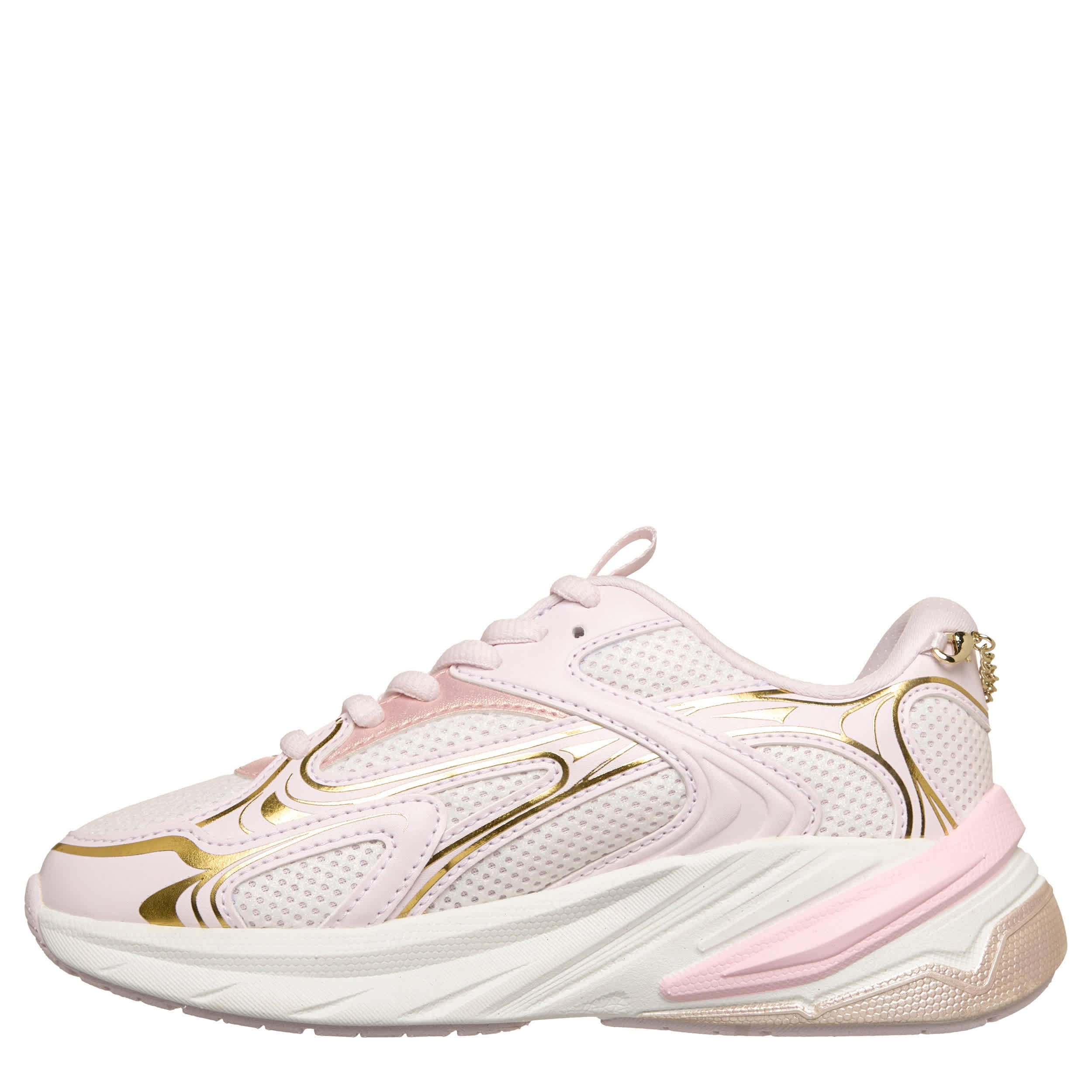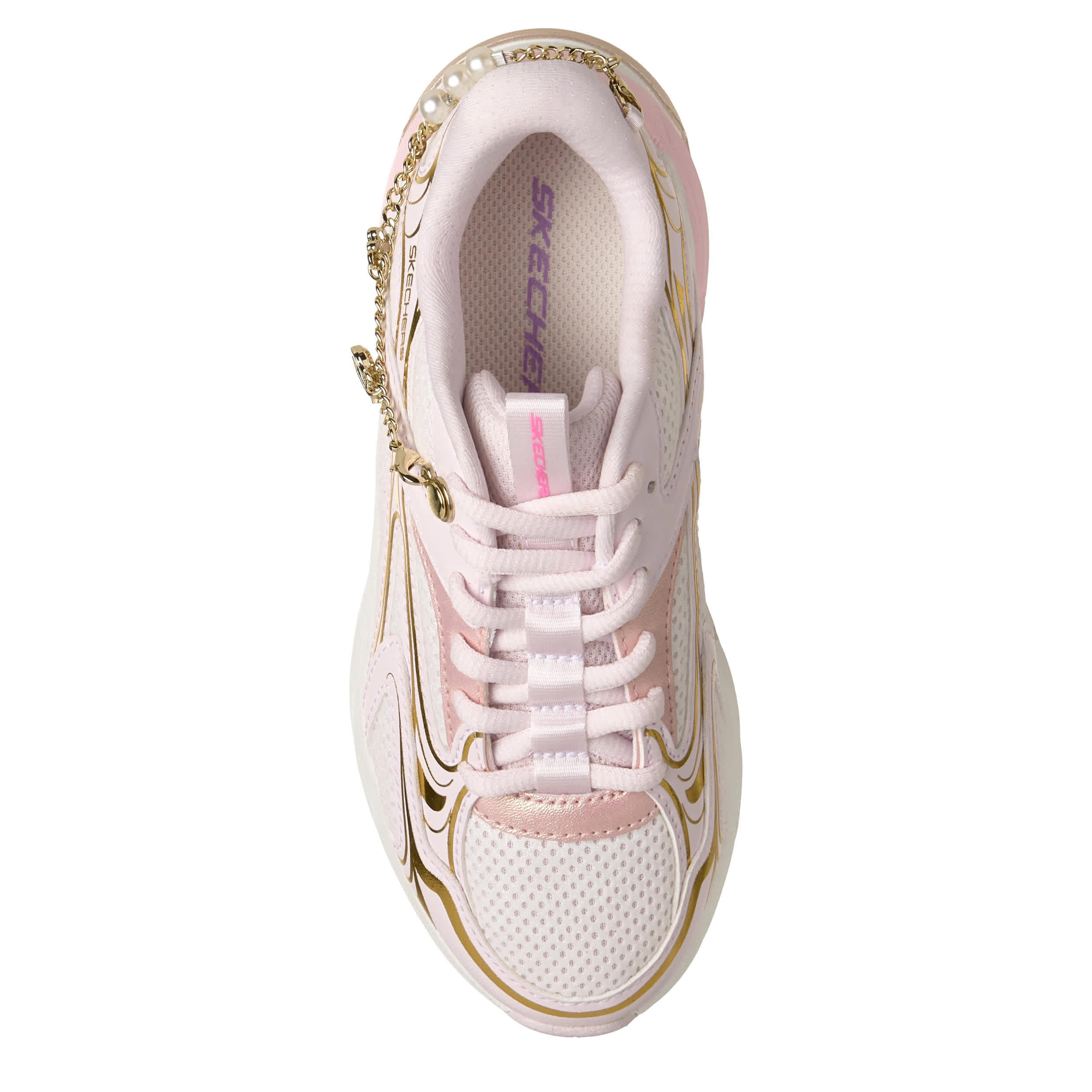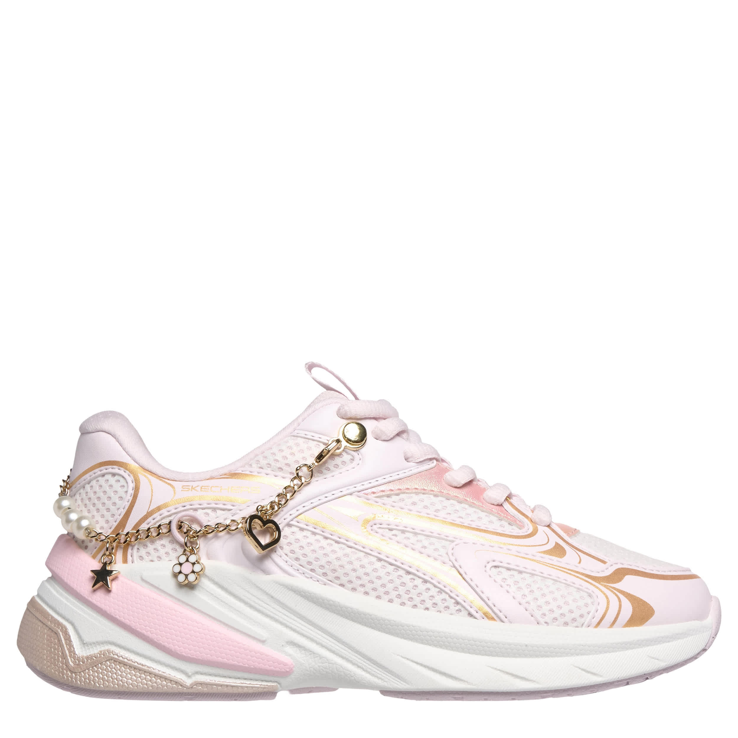 Fashion-forward and detachable charm bracelets aside, the S2K - Street Ready sneaker from Skechers is a cute statement. Featuring a mesh & faux leather upper with metallic accents for extra style, this sneaker has a tongue pull tab and really catches the eye. The cushy insole & midsole keep her moving comfortably with a 1 1/2" heel.