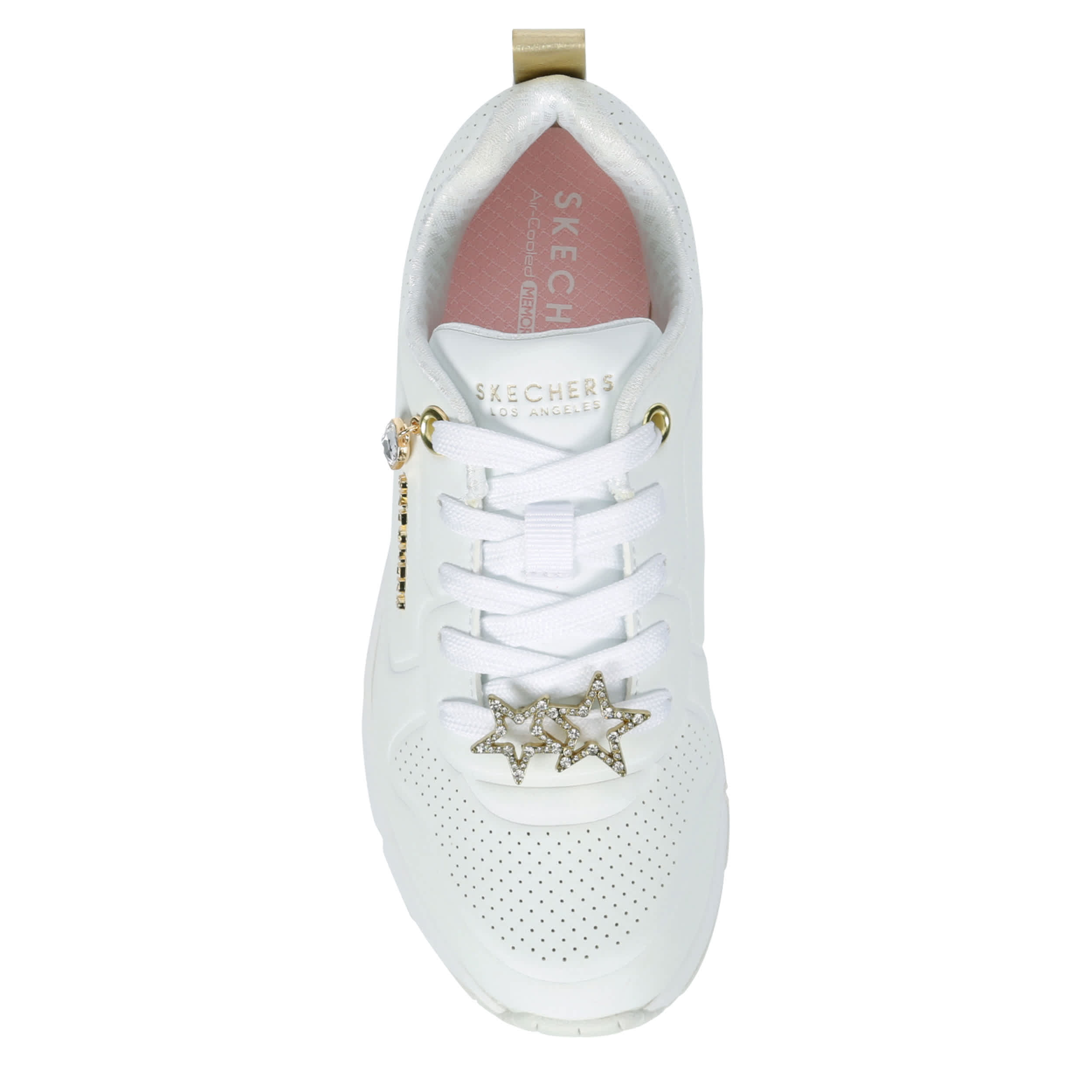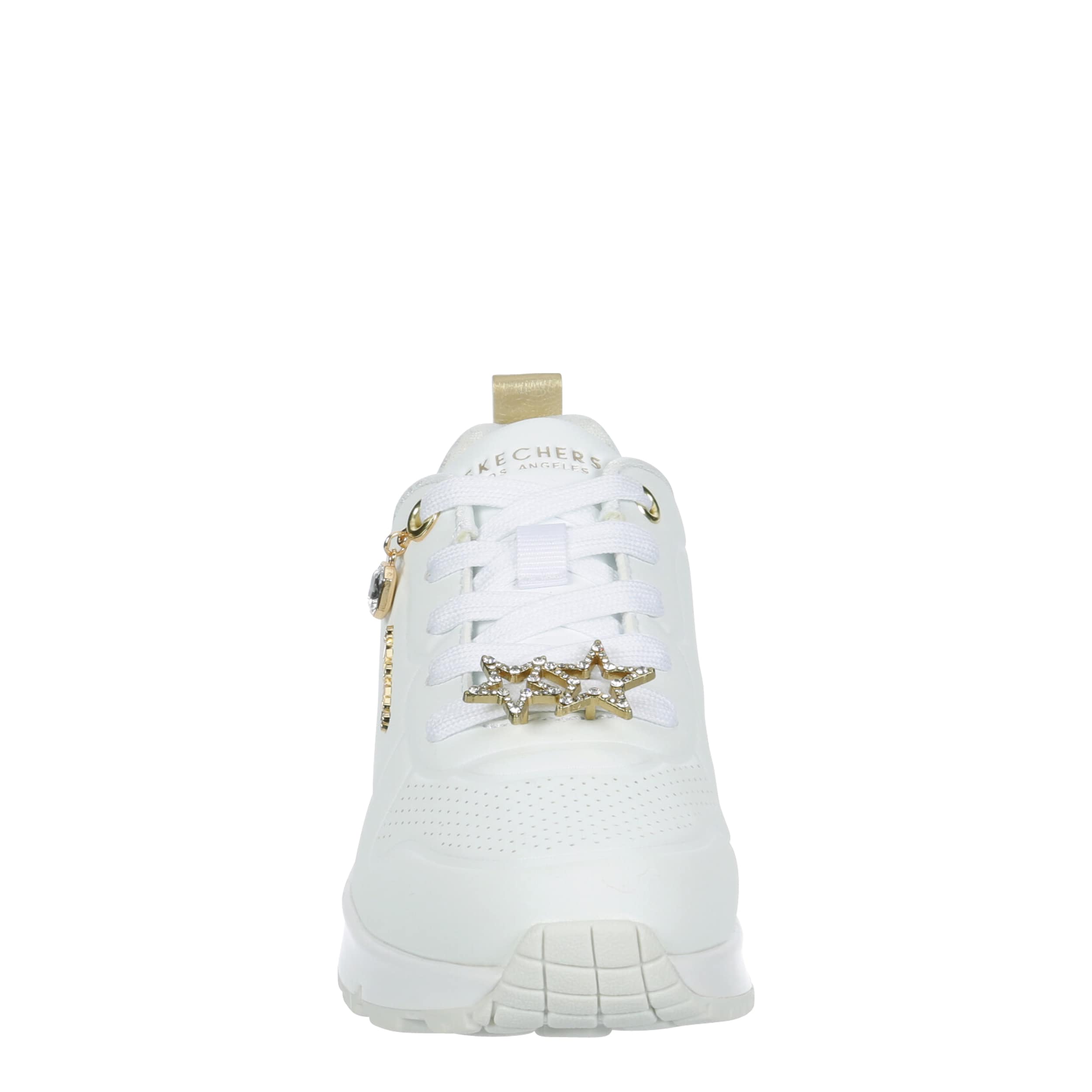 Shoes should come with their own bling like the Skechers Uno Gen1 - Trendy Jewels girls' sneaker. Featuring an embossed durabuck upper with cute charm details for extra style, this lace-up sneaker levels up her sneaker game. The Skechers Air-Cooled Memory Foam® insole & Skech-Air® visible airbag midsole keep her moving comfortably.