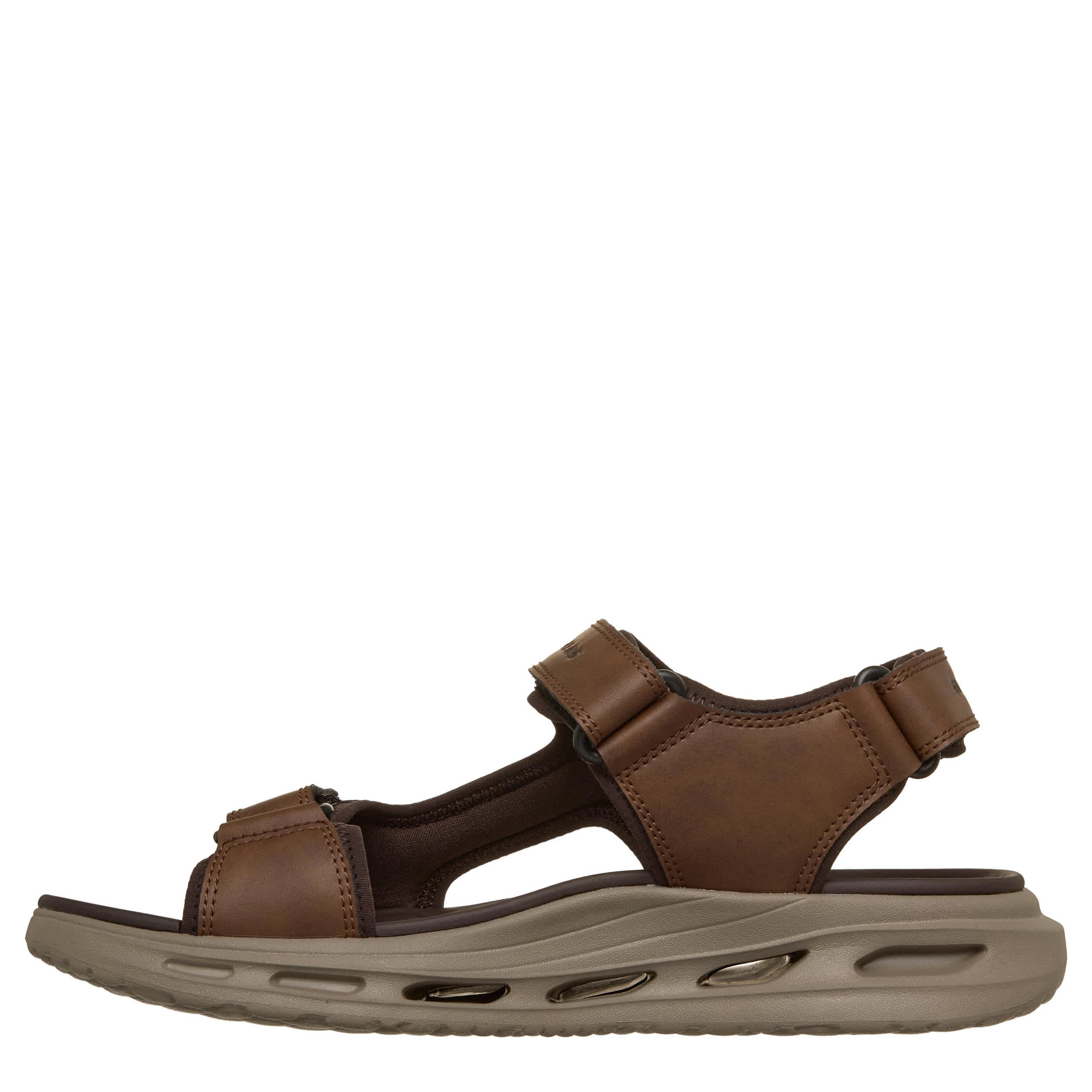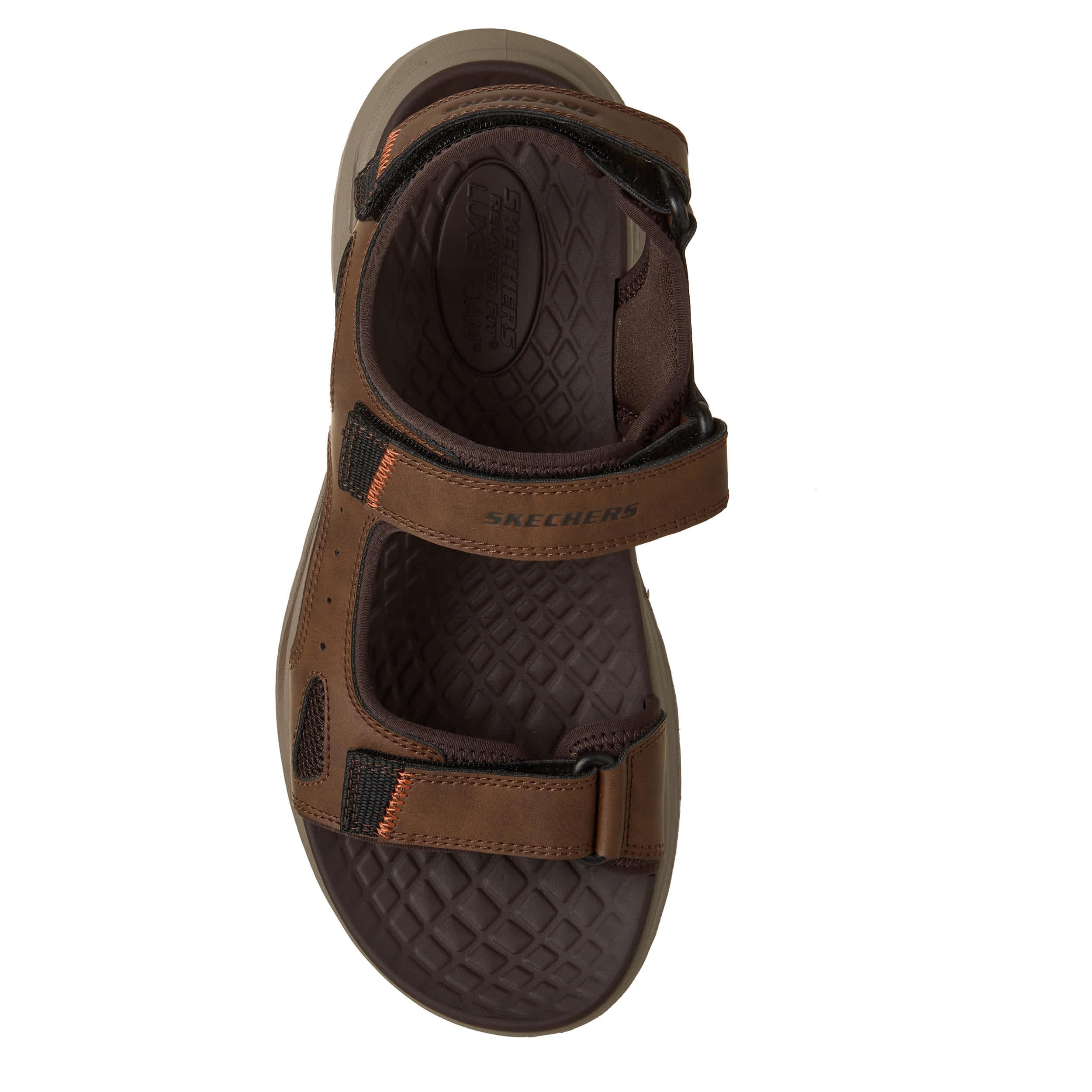 Have a fun journey in the Skechers Relaxed Fit®: Orvan - Gamble outdoor sandal. With a faux leather upper with a roomy fit at the toe and forefoot, this river sandal can't wait for the weather to turn sunny. The Luxe Foam® footbed & Glide-Step® midsole provide natural momentum with contouring to cradle your foot.
