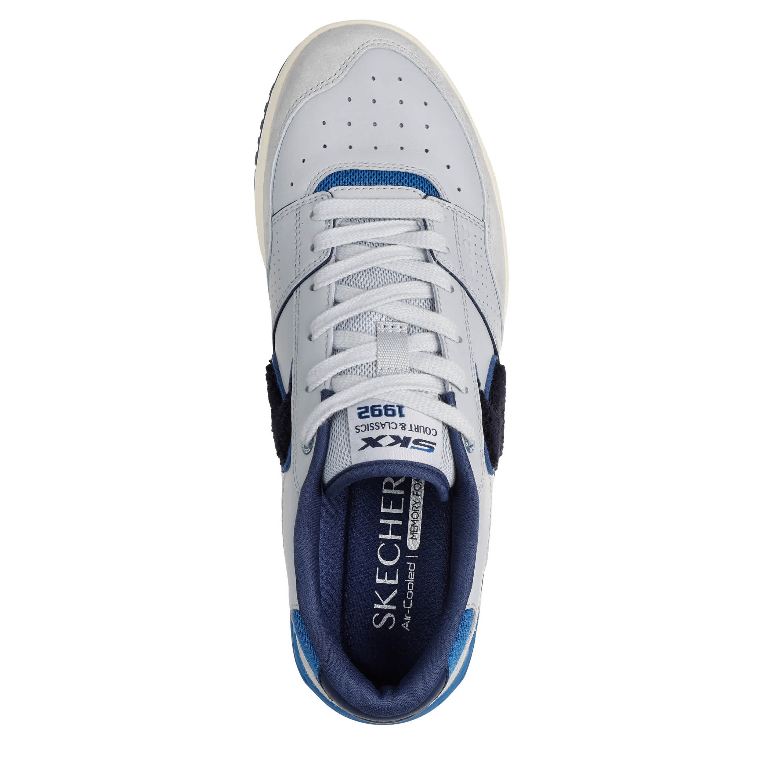Walk it back with great fanfare in the Skechers S-1992 men's court shoe. With a leather, suede & mesh upper featuring retro-inspired style like the chenille logo, this sneaker is a throwback with classic comfort. The Skechers Air-Cooled Memory Foam® insole cushions your foot, while the outsole provides flexible traction.