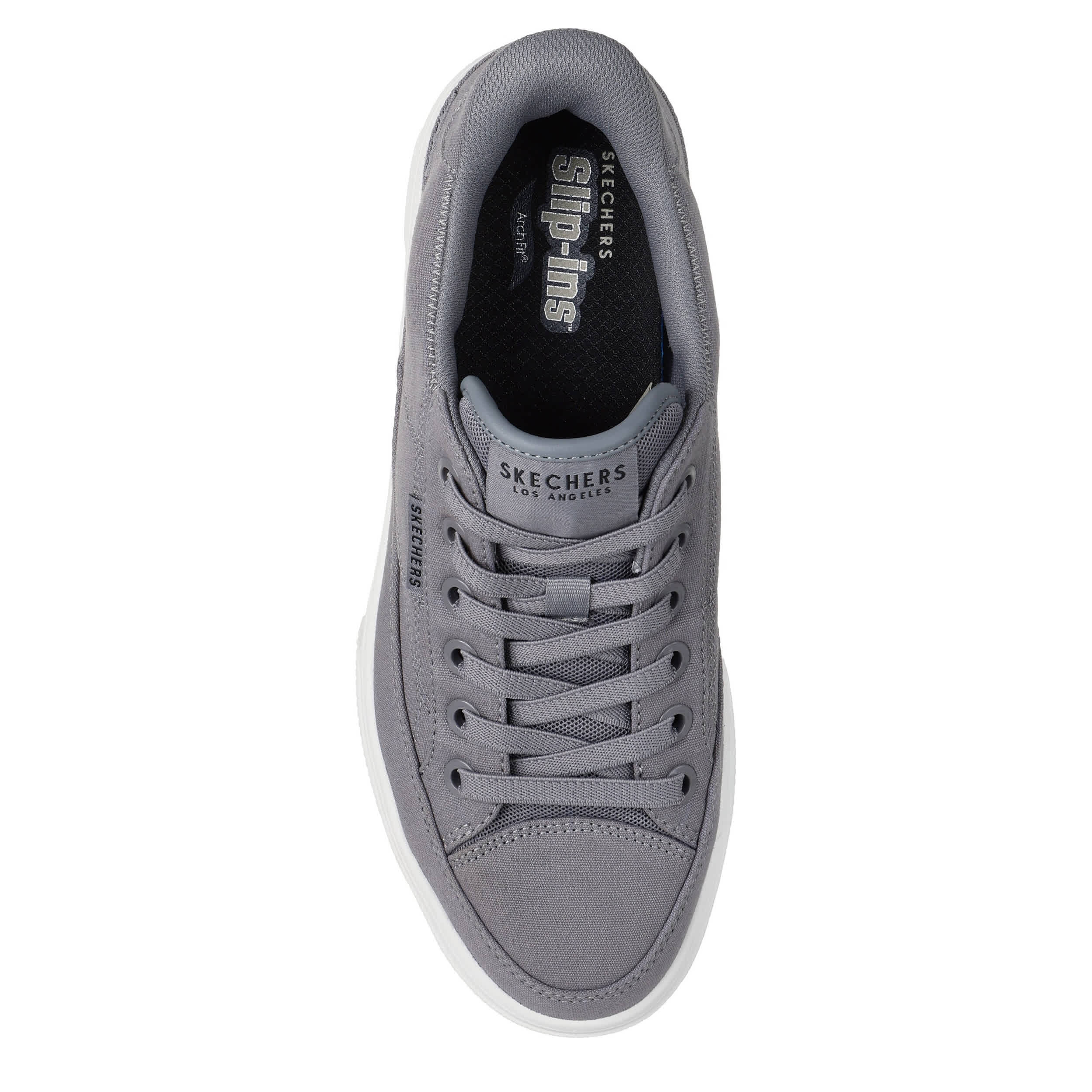 Stroll in style with the Skechers Slip-ins®: Arch Fit® Arcade - See Ya There sneaker. Featuring a canvas upper with the Heel Pillow® and No Tie Fit®, this Skechers Hands Free Slip-in® has a lightweight, cushioned midsole. The removable Skechers Arch Fit® insole system offers podiatrist-certified arch support.
