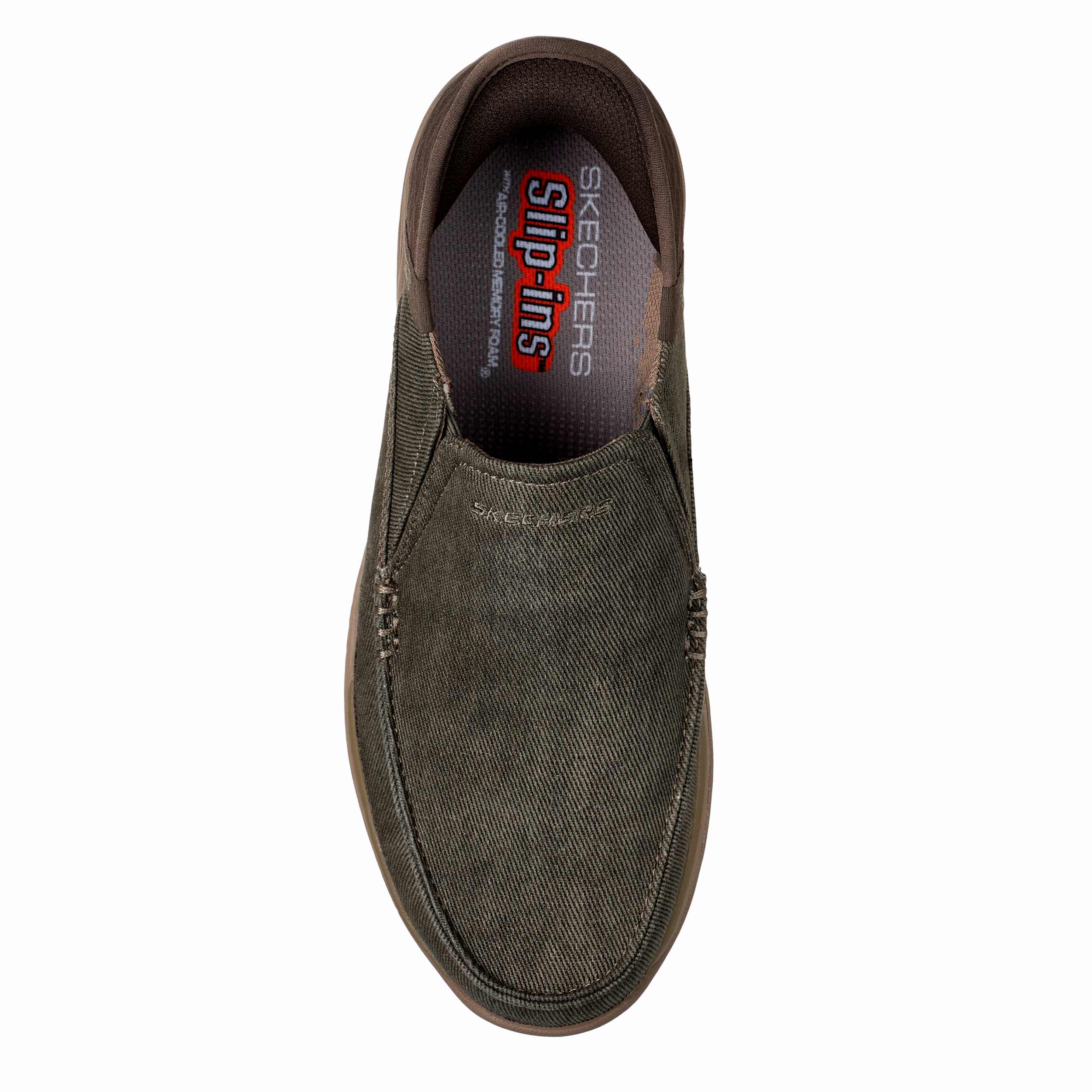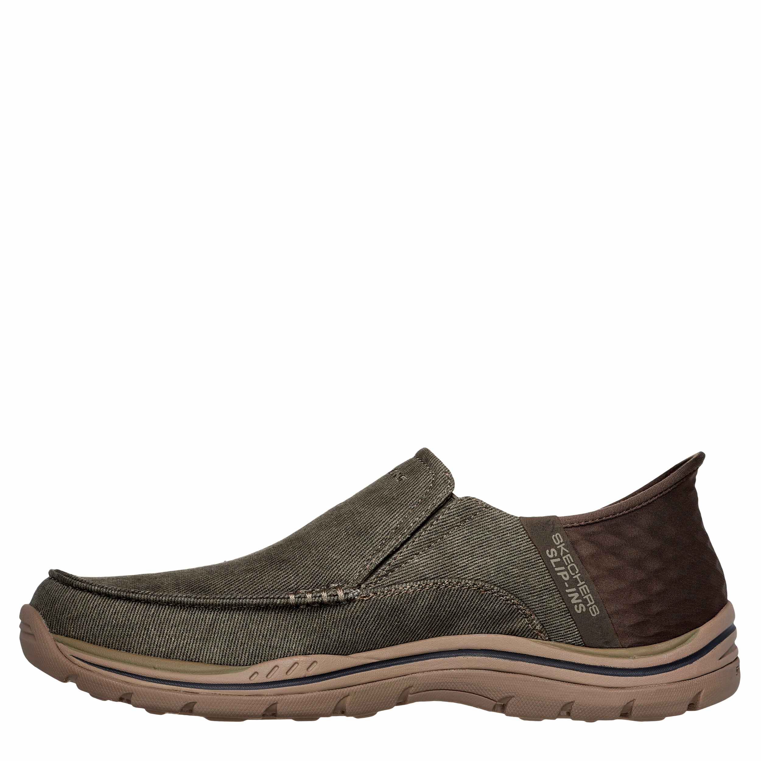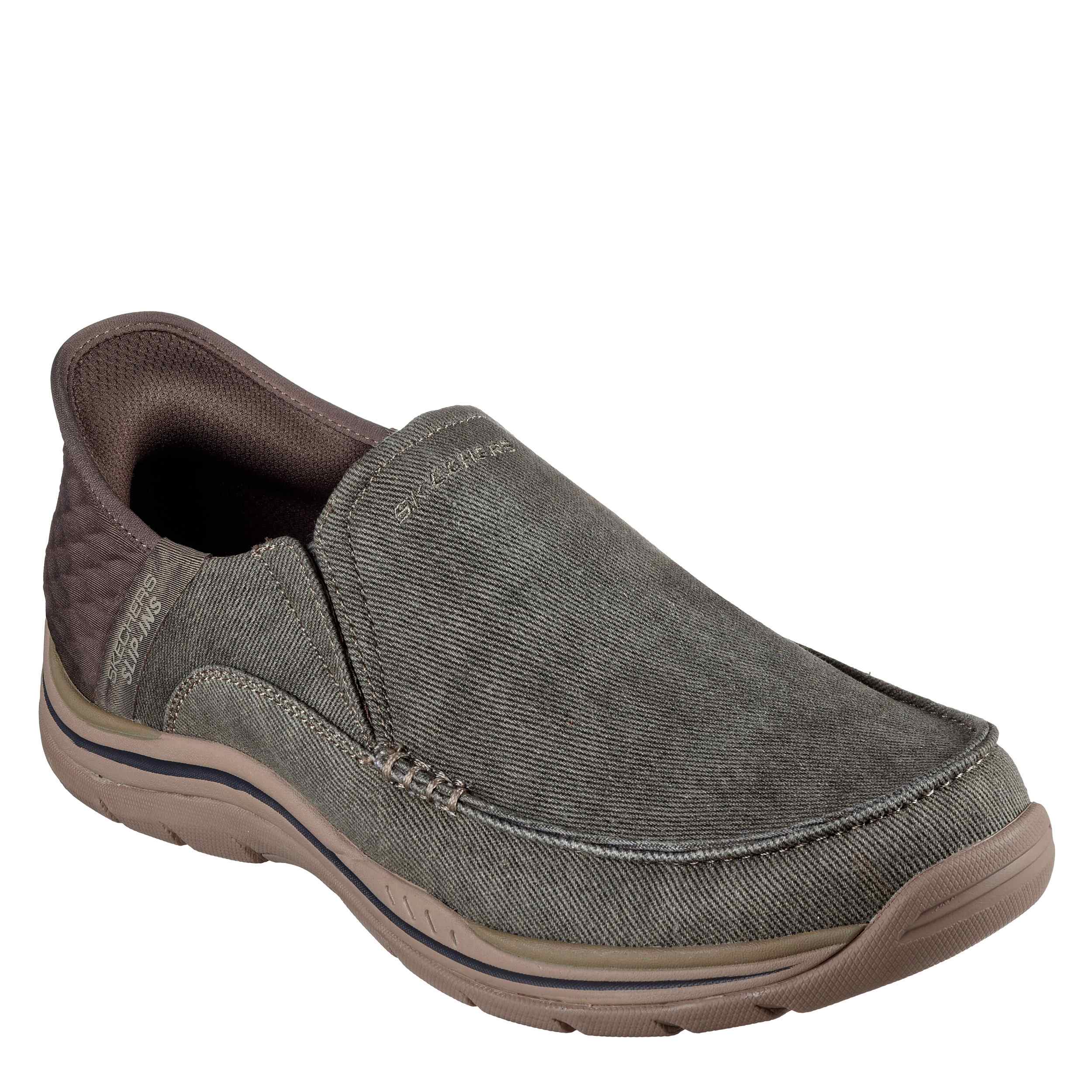 Travel to the tropics with the Skechers Slip-ins RF: Expected - Cayson sneaker. Featuring a canvas & synthetic upper with an exclusive Heel Pillow™ for a secure fit, this vegan Skechers Hands Free Slip-in® is Relaxed Fit® with twin gore panels. The Skechers Air-Cooled Memory Foam® insole comfortably supports every step, while the outsole offers flexible traction.