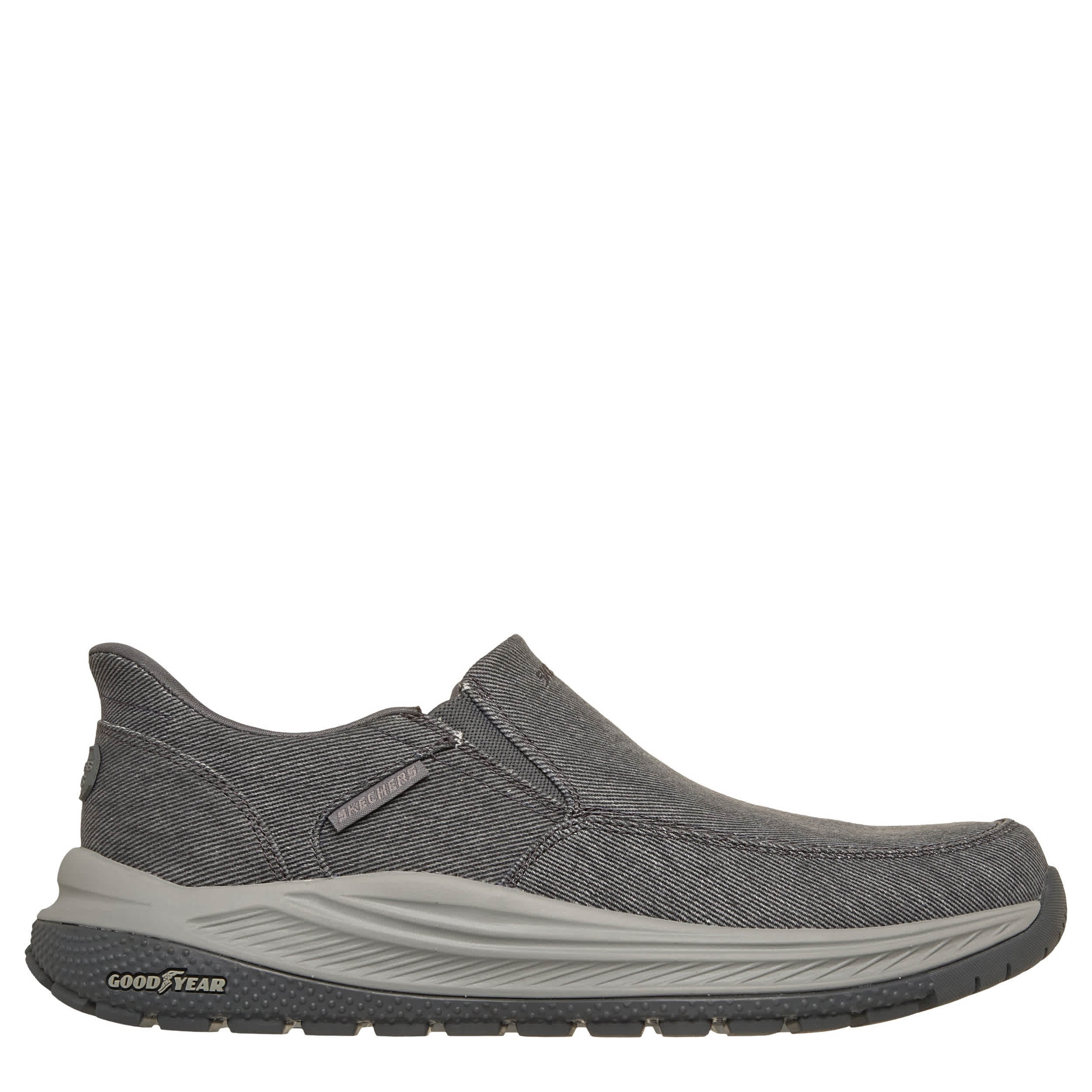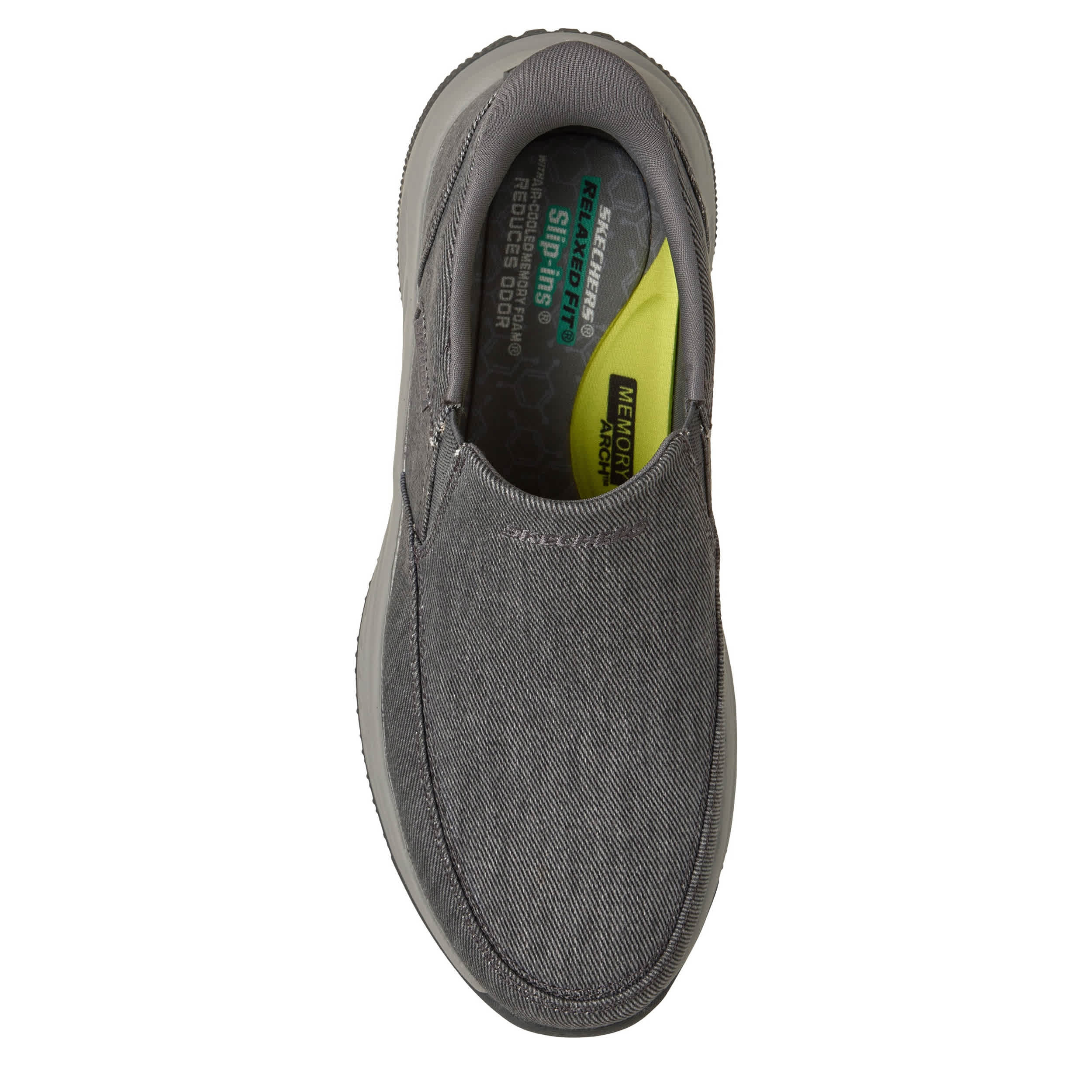 Be practical about your comfort in the Skechers Hands Free Slip-ins® Relaxed Fit: Meroe - Dayton sneaker. With a moc-toe canvas upper featuring an exclusive Heel Pillow™ and gore panels for a secure fit, this machine washable shoe has a charcoal-infused insole to neutralize odor. The Skechers Air-Cooled Memory Foam® cushions your foot, while the Skechers Memory Arch™ keeps your steps happy.