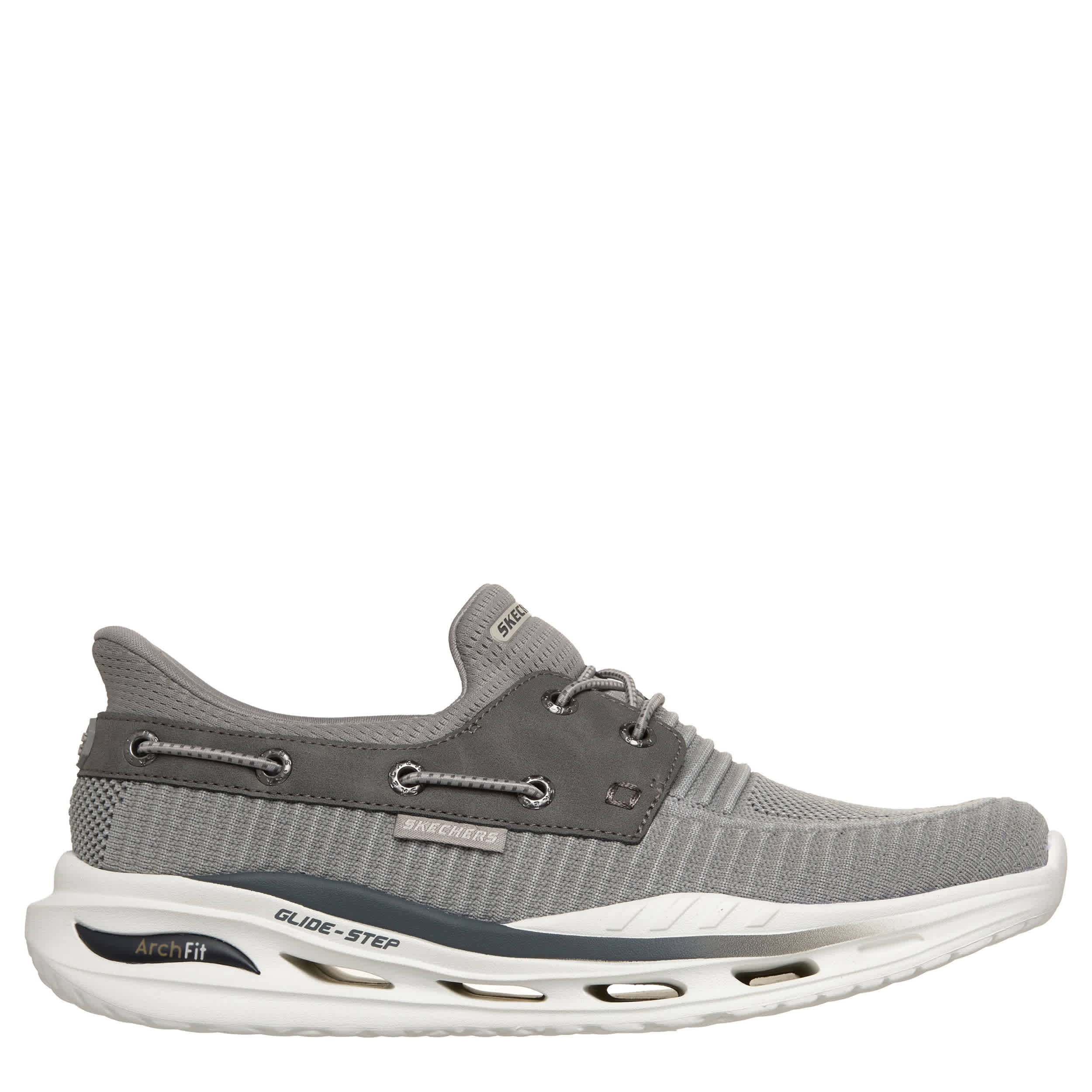 No shock that you get innovative comfort in the Slip-ins® Relaxed Fit®: Arch Fit® Orvan - Shorman sneaker from Skechers. With a knit upper featuring a synthetic overlay and the Heel Pillow™ for a secure fit, this No-Tie Fit® shoe is roomy at the toe and forefoot. The removable Arch Fit® insole & Glide-Step® midsole provide a soft landing with podiatrist-certified arch support.
