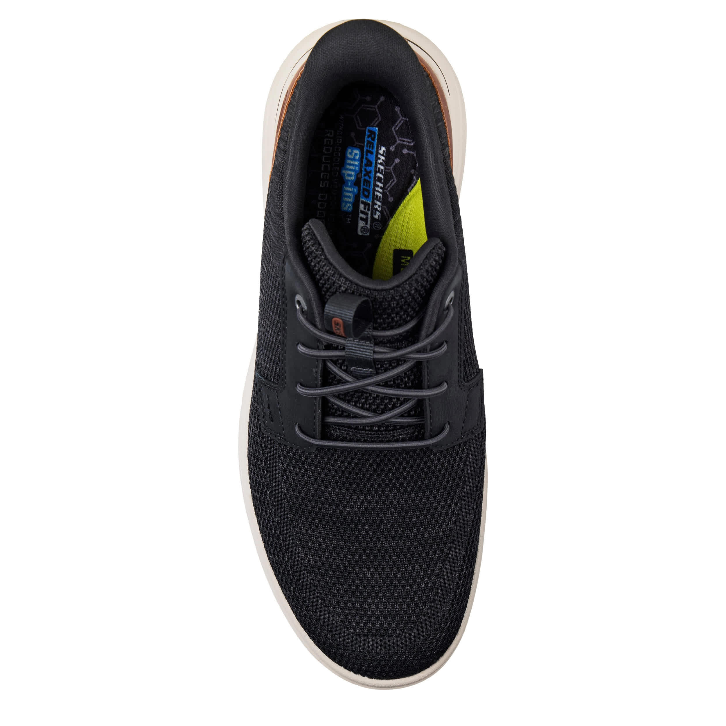 Keep a comfy low-profile in the Skechers Slip-ins Relaxed Fit: Sterling - Ramone men's sneaker. Featuring a roomy Relaxed Fit® upper with the exclusive Heel Pillow™ for security, this vegan Skechers Hands-Free Slip-in® also has a charcoal-infused Skechers Air-Cooled Memory Foam® insole to neutralize odor. The Skechers Memory Arch™ cushioning softens every step, while the outsole provides flexible traction.