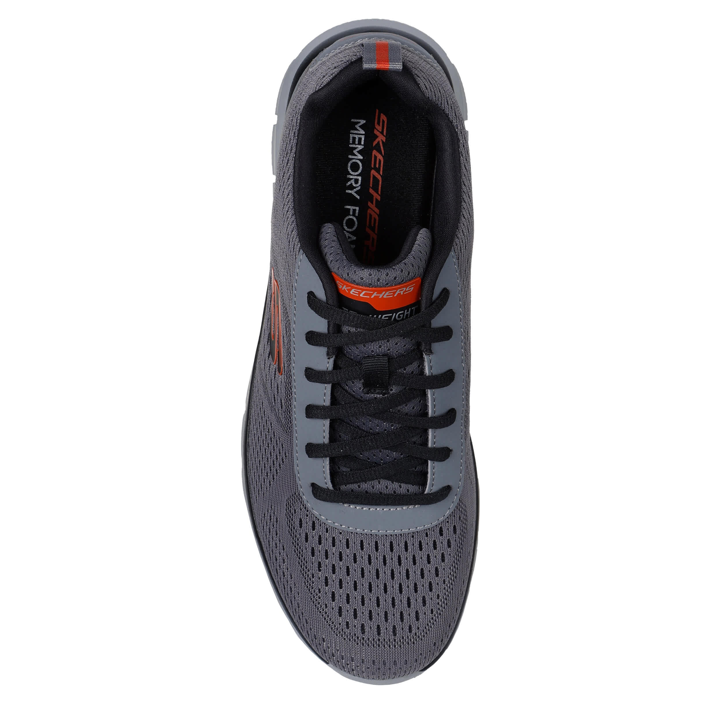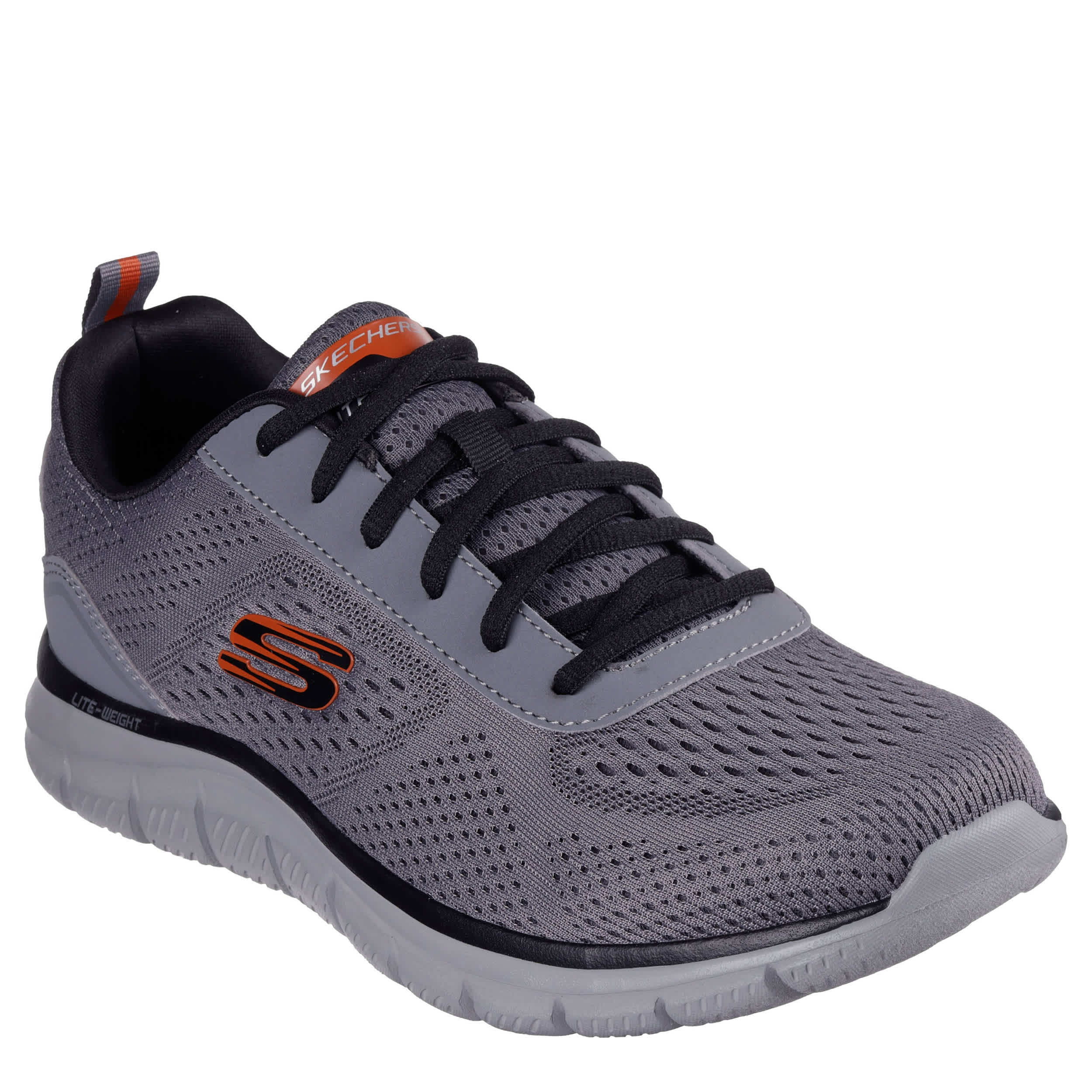 Lightweight training in the sporty Skechers Track - Leshur men's sneaker is comfy. With an engineered mesh & synthetic upper featuring a rear pull tab for easy entry, this vegan shoe is machine washable. The Skechers Memory Foamâ„¢ insole cushions your foot, while the outsole provides flexible traction.