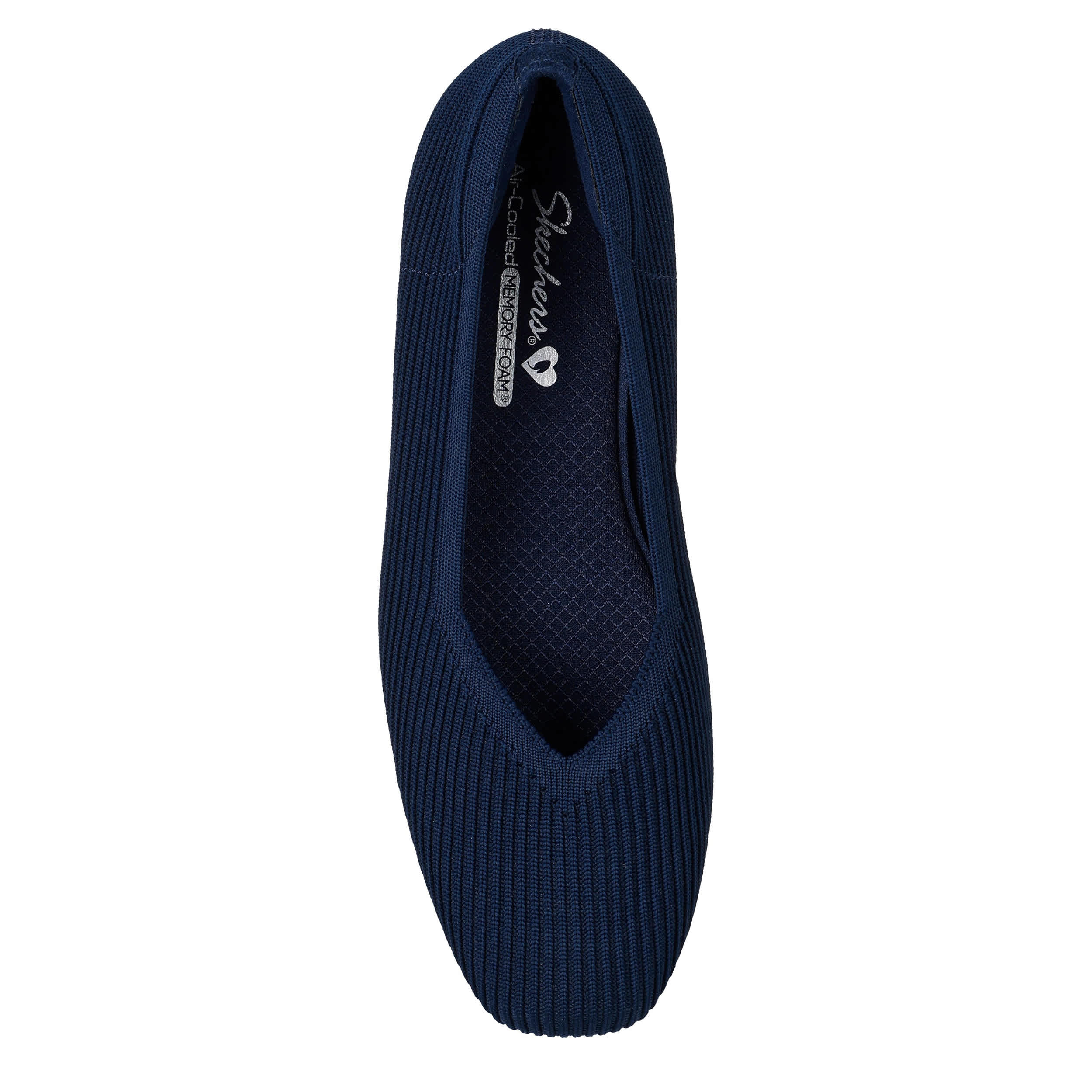 Glam and comfort with the Skechers Cleo® Square - Blissful Soul flat. Featuring a Stretch Fit® ribbed knit upper, these vegan skimmers are a forever fave. The Skechers Air-Cooled Memory Foam® cushions your steps while you navigate fall on the durable outsole.