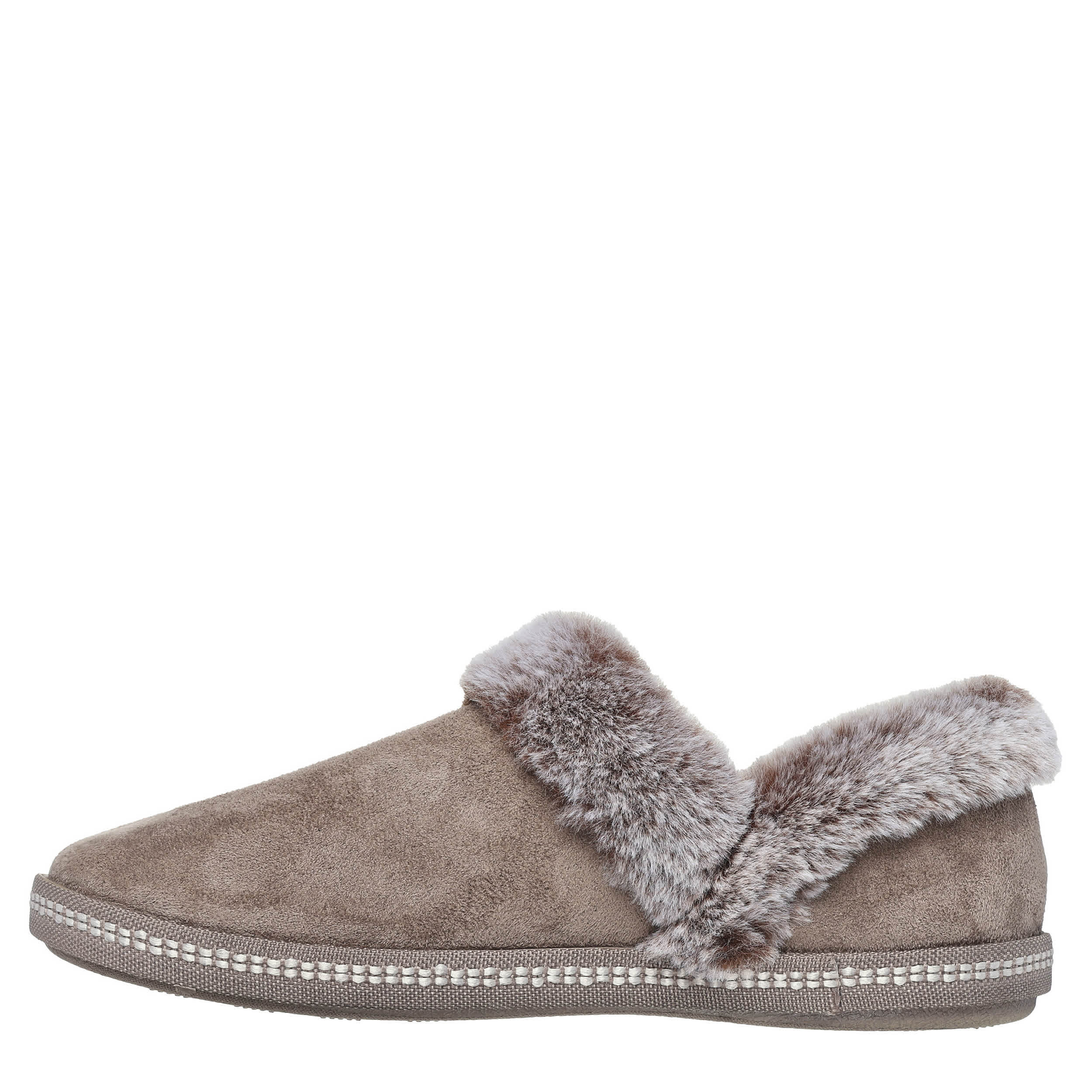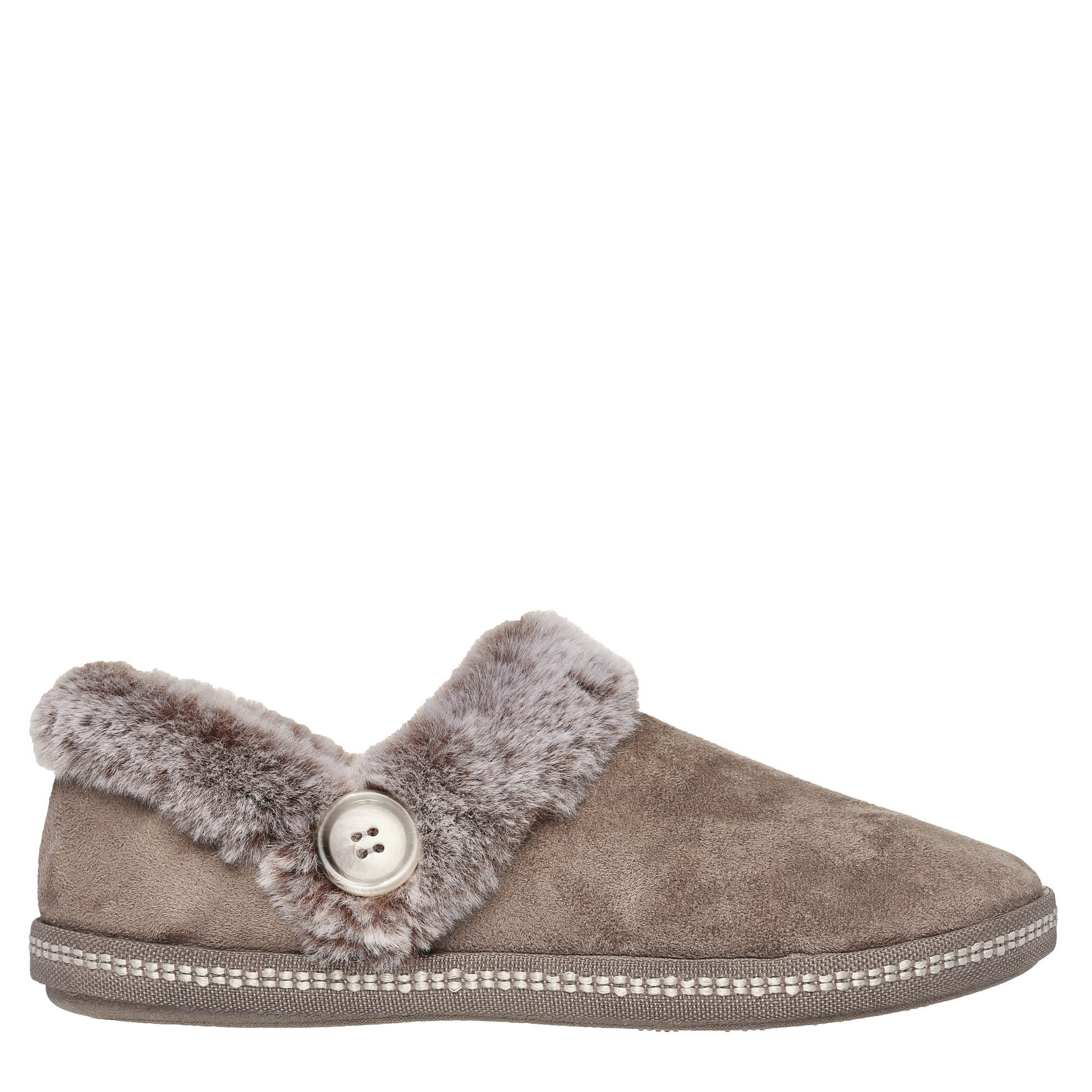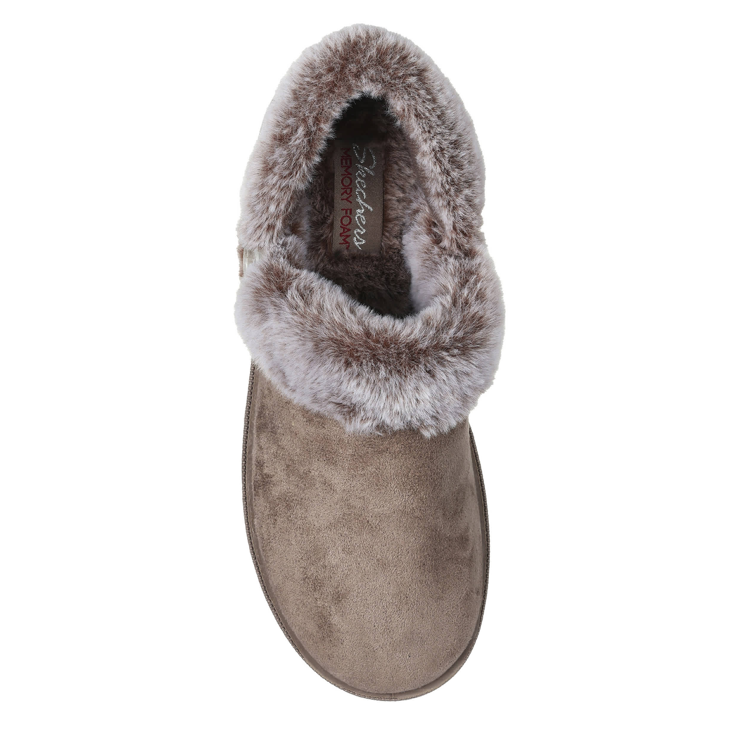 Button up that chill in the Cozy Campfire - Fresh Toast women's slipper from Skechers. With a woven fabric upper featuring a warm faux fur trim and lining, this slipper is crafted with 100% vegan materials. The Memory Foam cushioning is ultra comfortable while the outsole offers flexible traction.